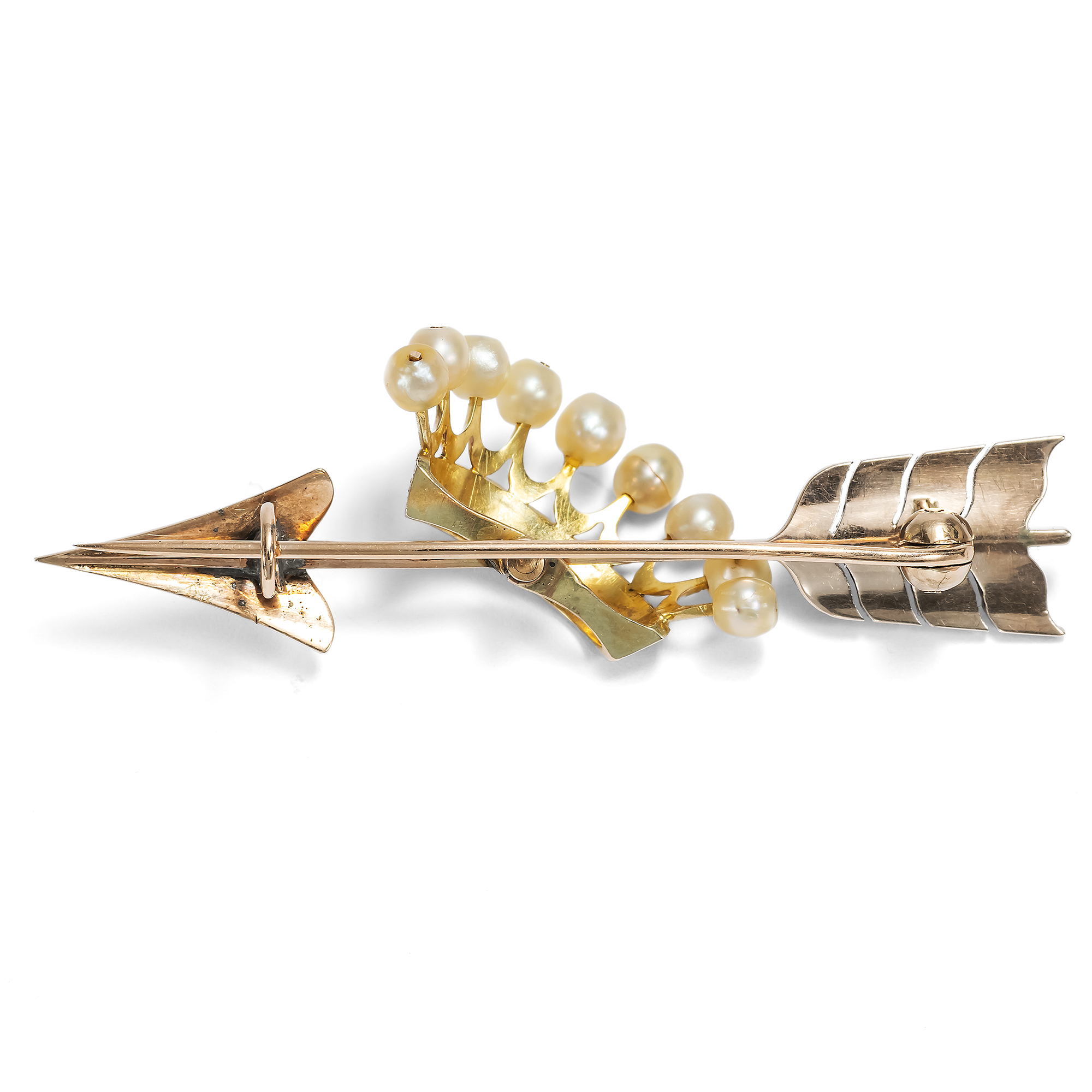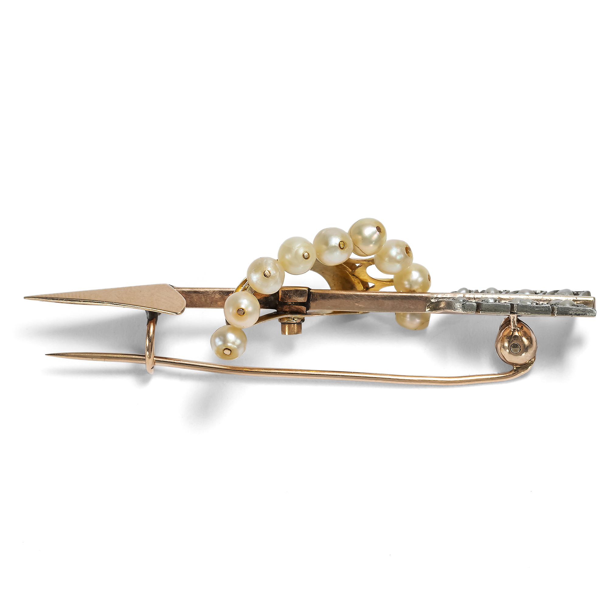 Antique Arrow Brooch with Coronet Made of Natural Pearls & Gemstones, c. 1890