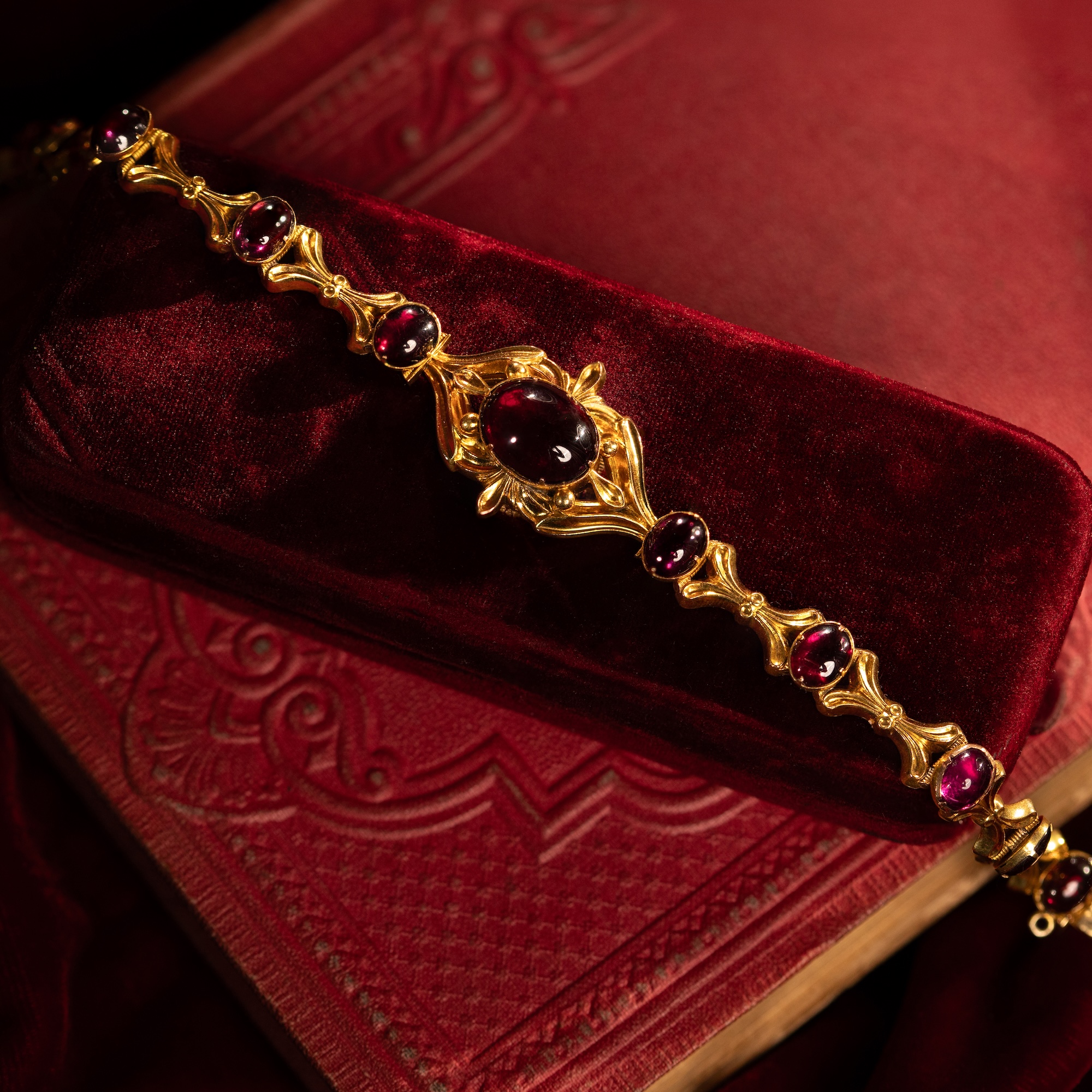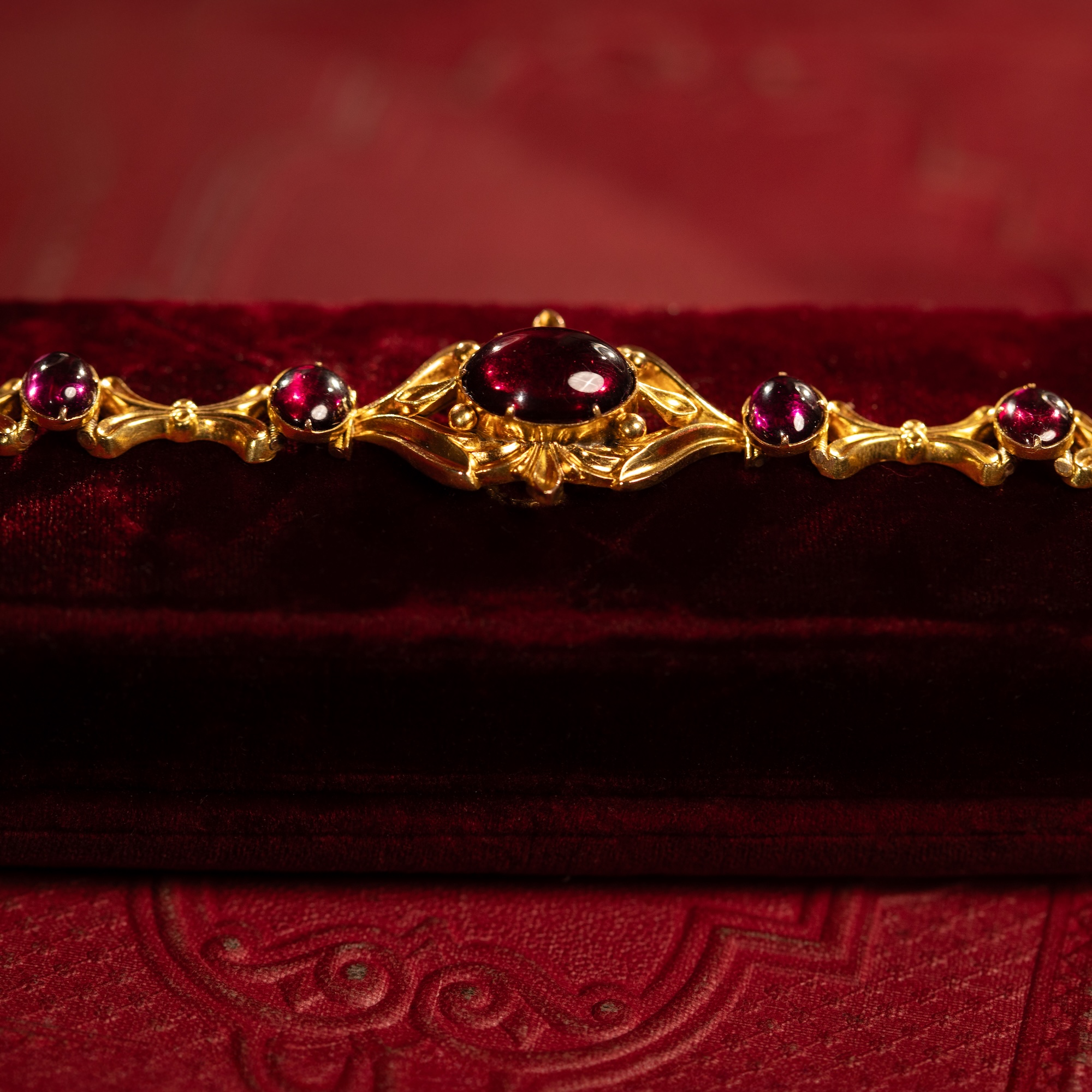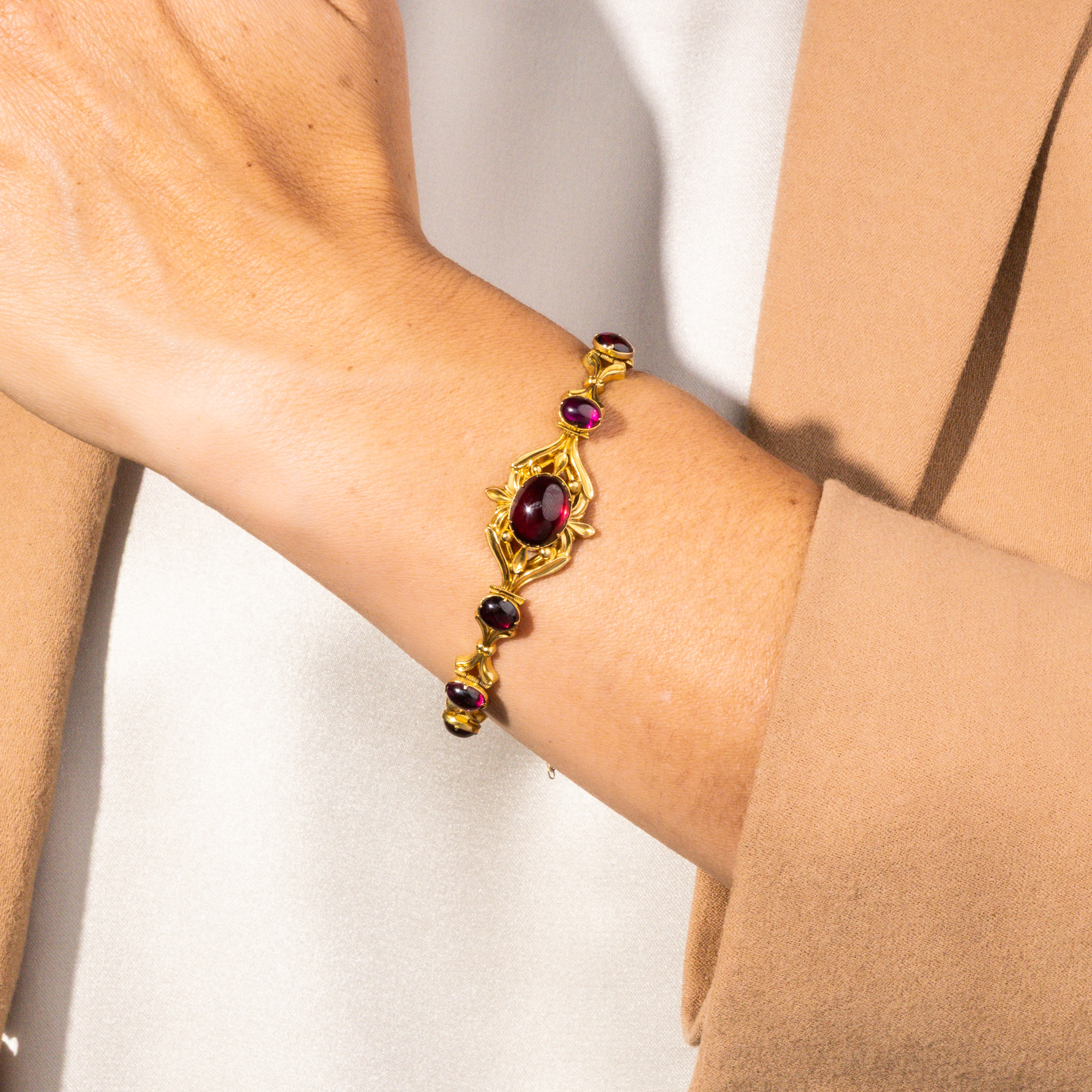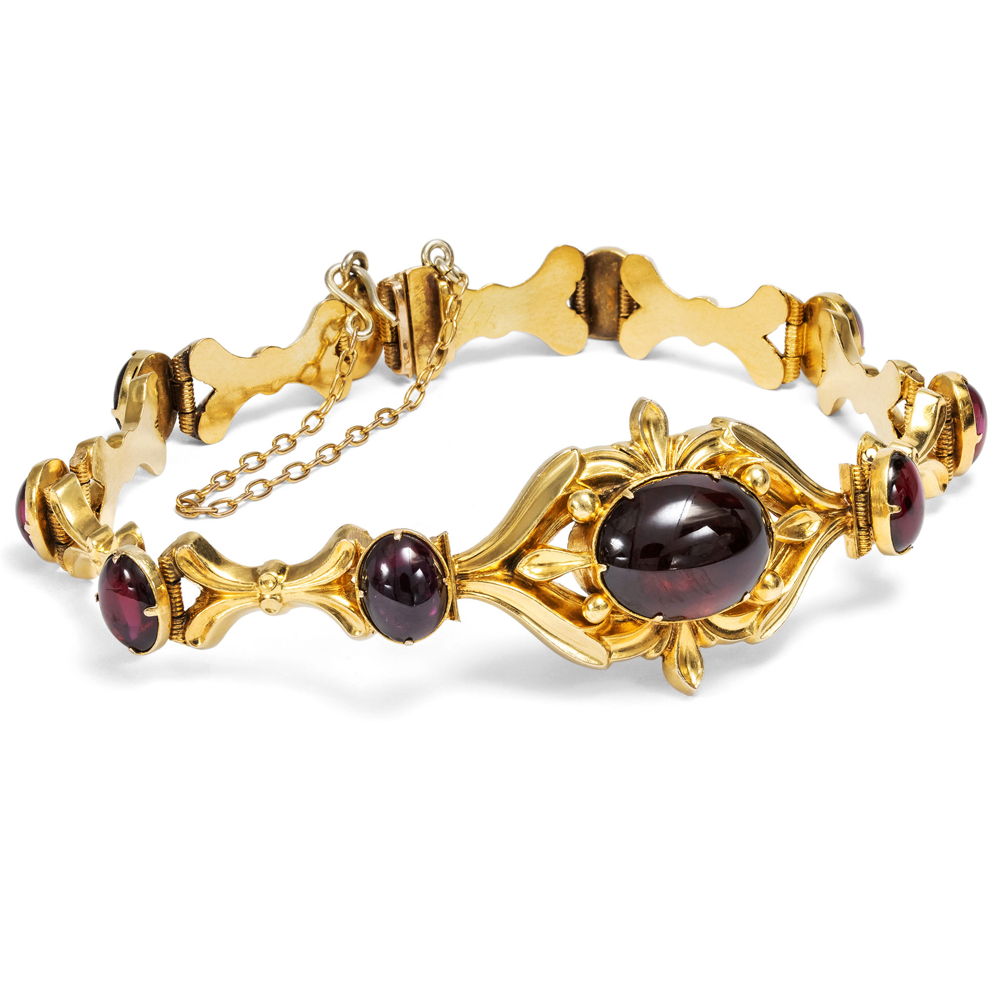 Antique Garnet Cabochon Bracelet in Gold, c. 1835