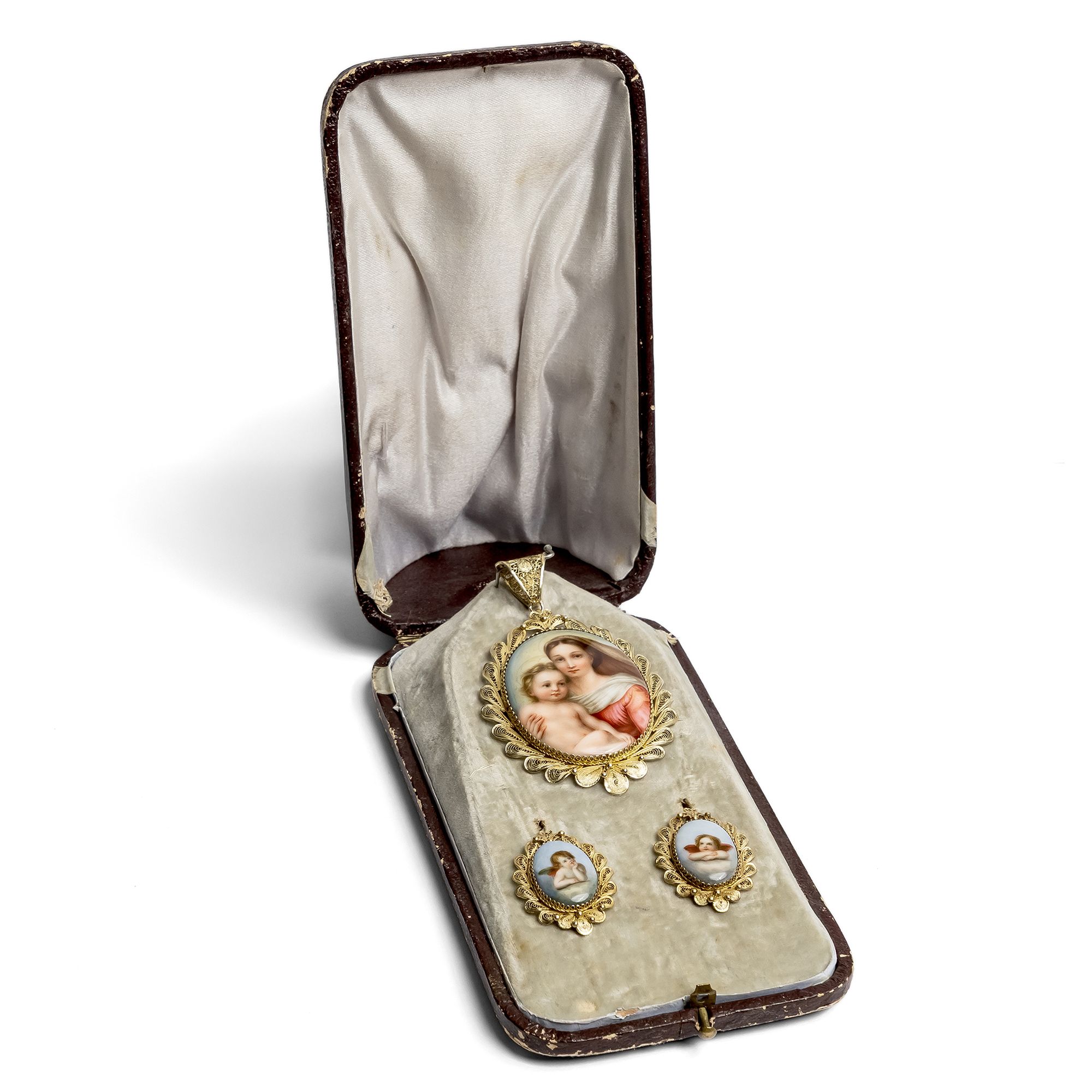Antique Demi-Parure with Enamel Plaques of the Sistine Madonna, c. 1870