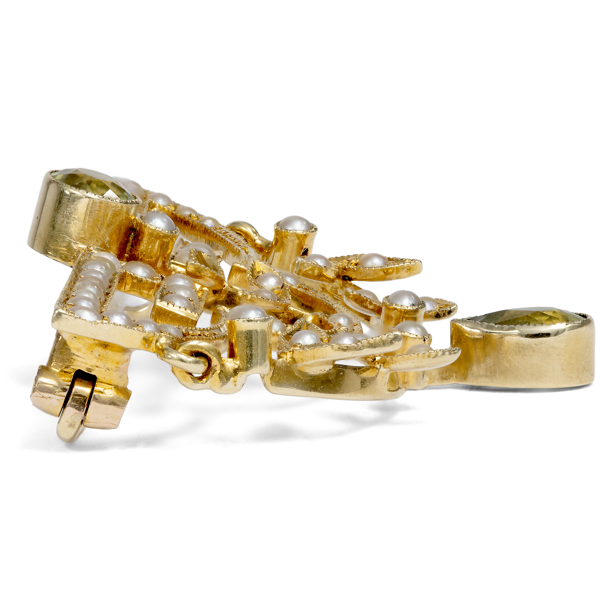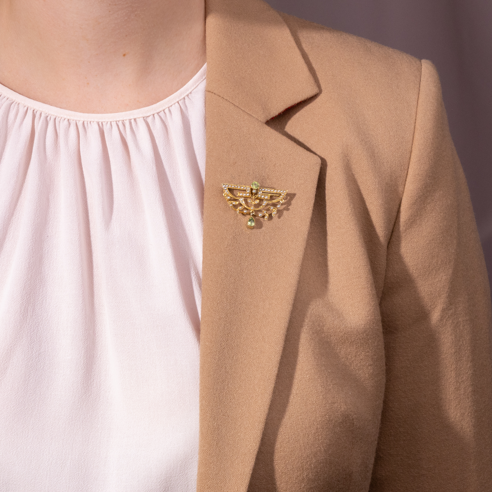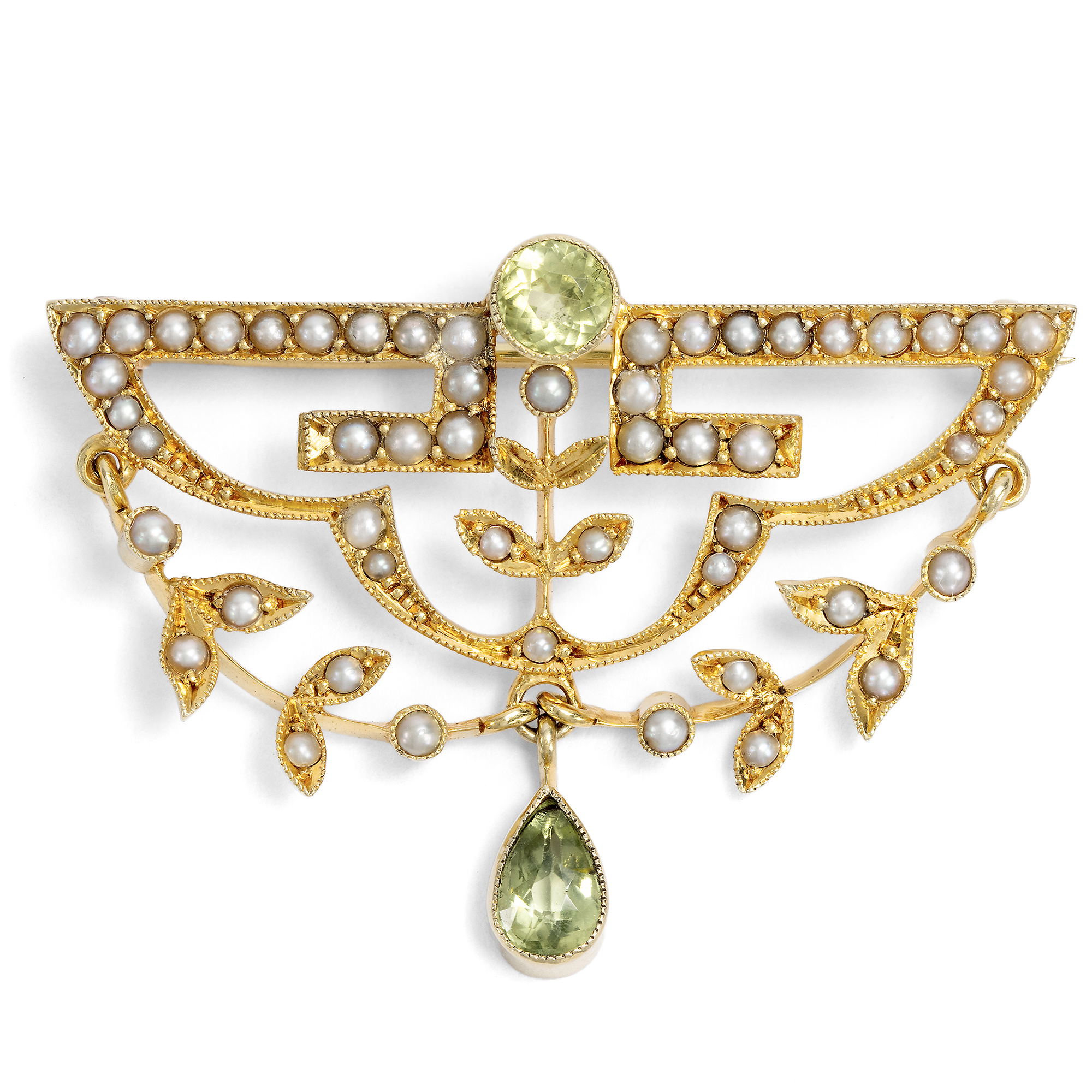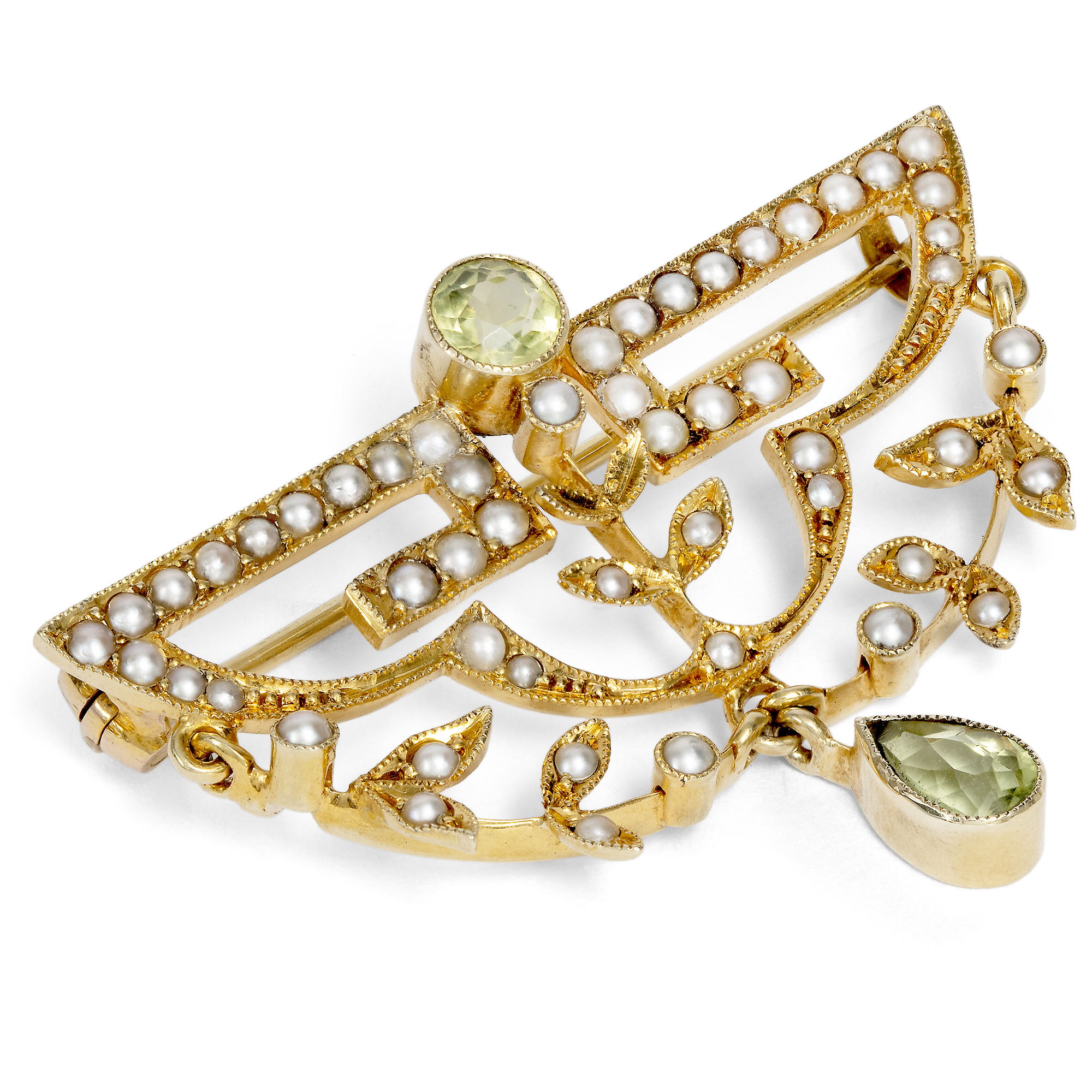 Antique Gold Brooch with Peridot & Pearls, Great Britain c. 1910