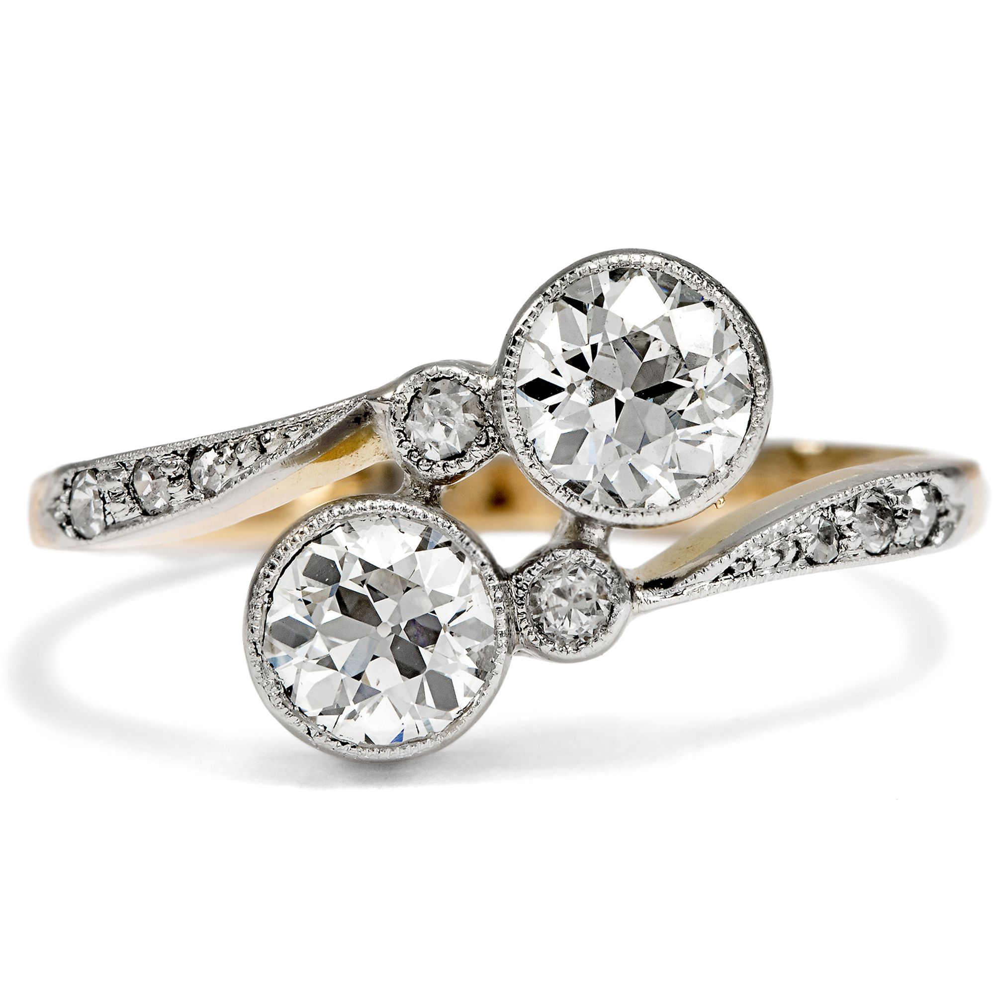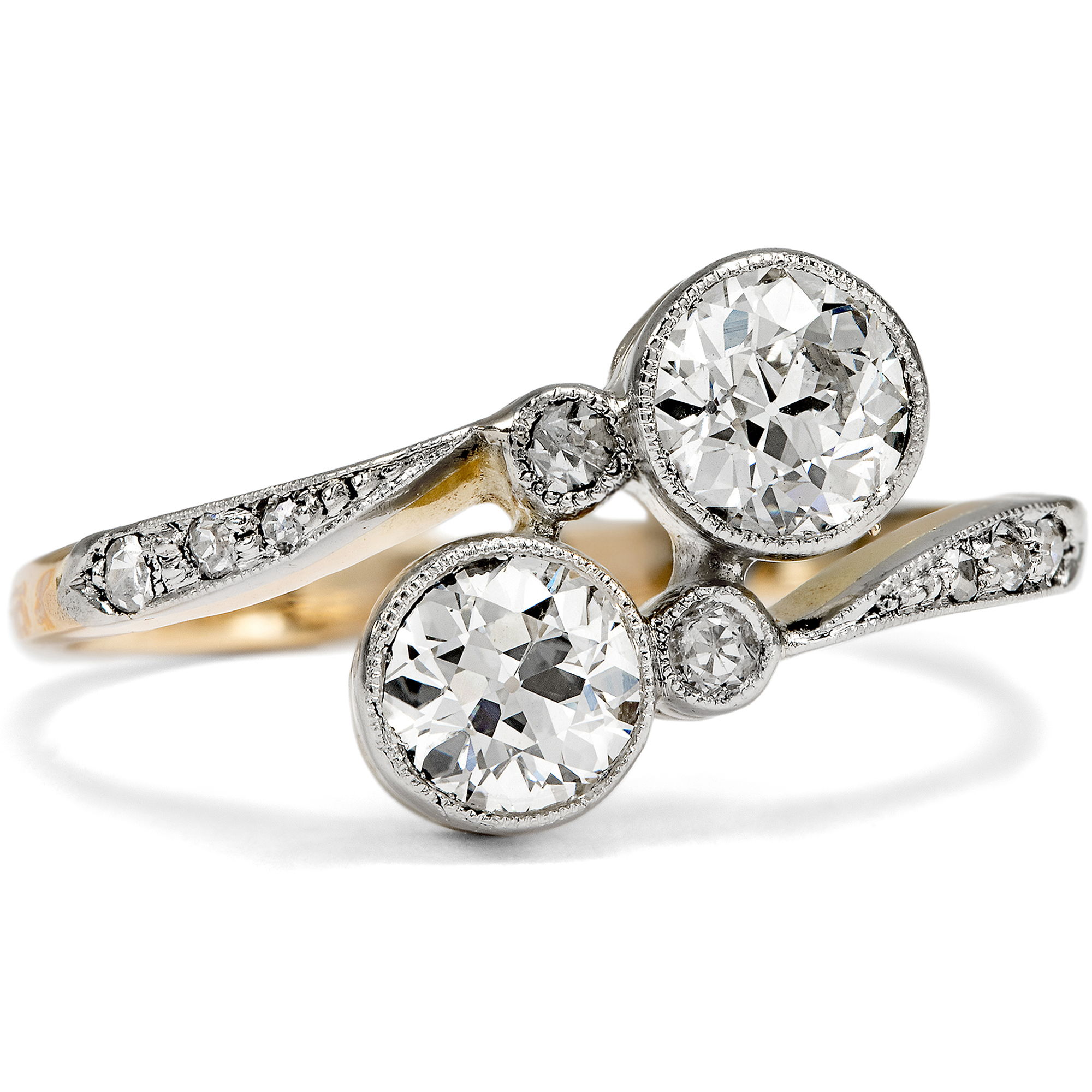Antique "Toi-et-moi" Ring with Diamonds in Platinum on Gold, Wilhelm Müller, c. 1910
