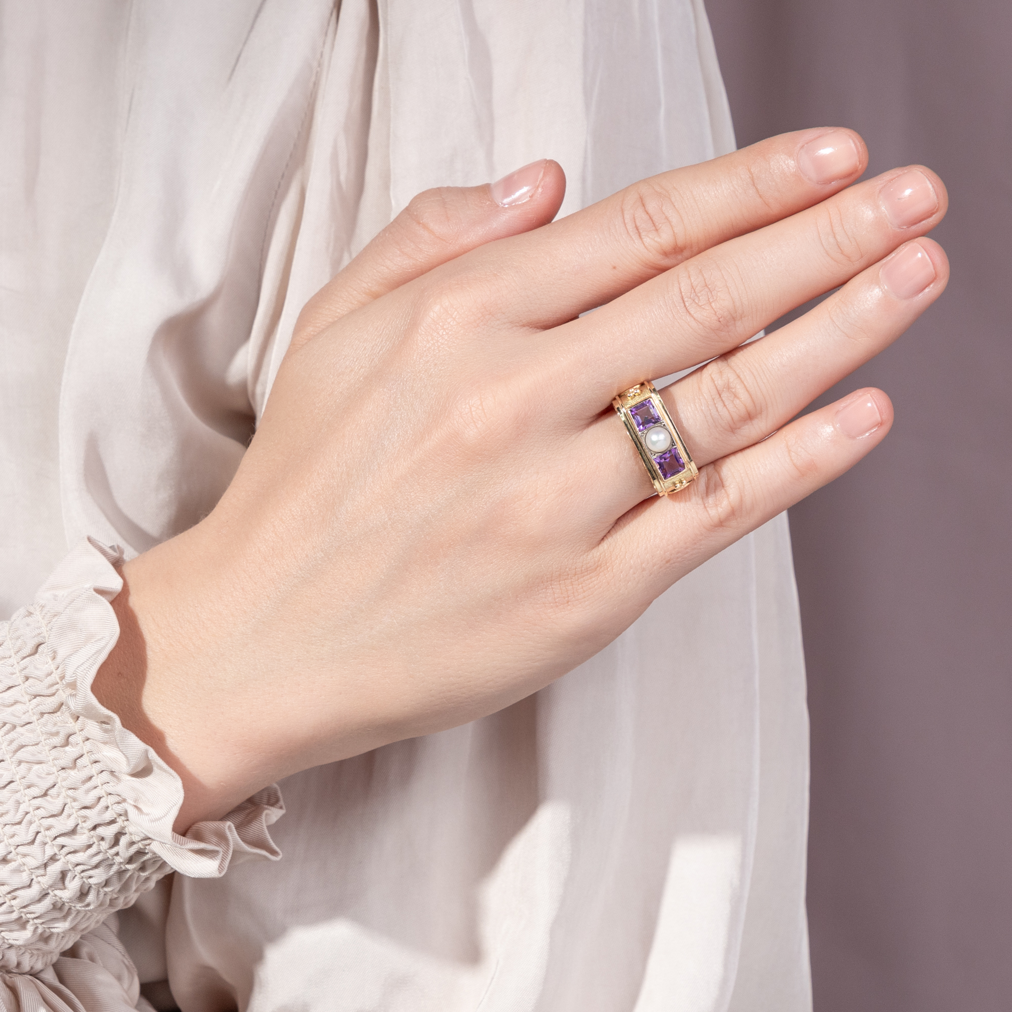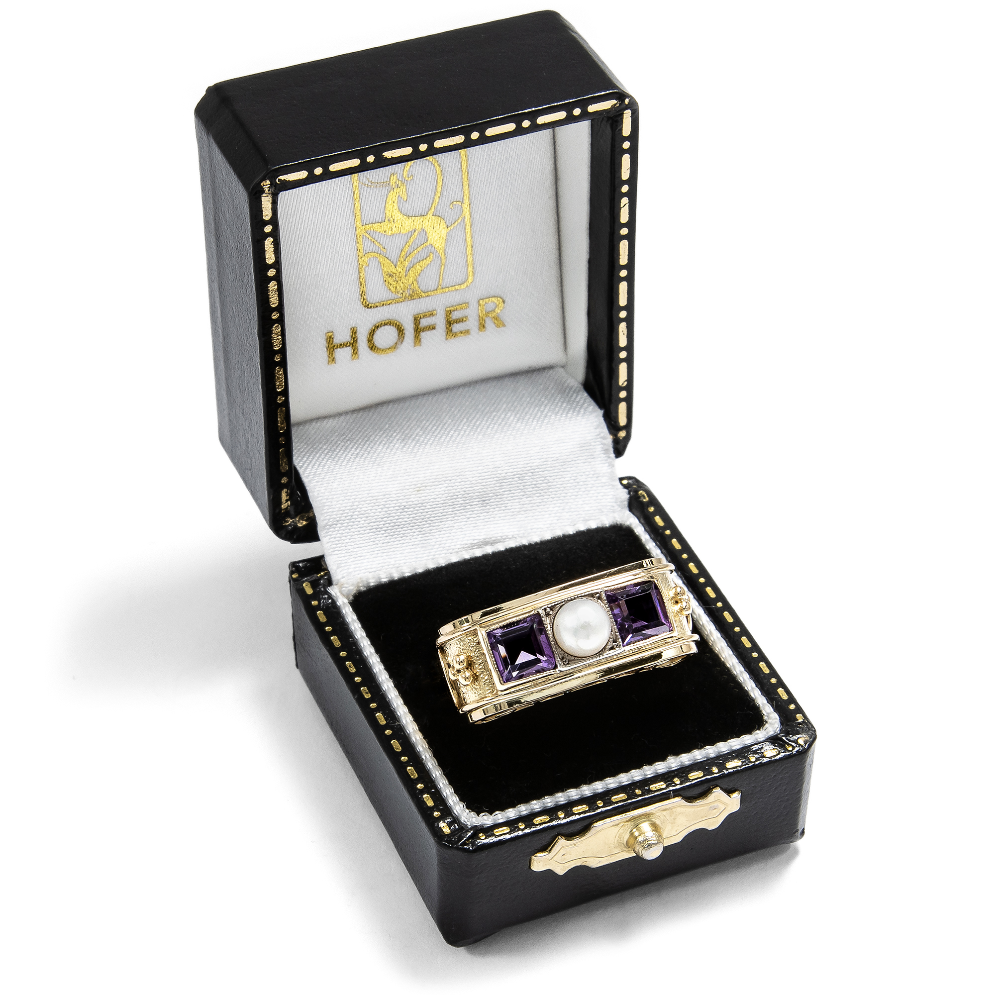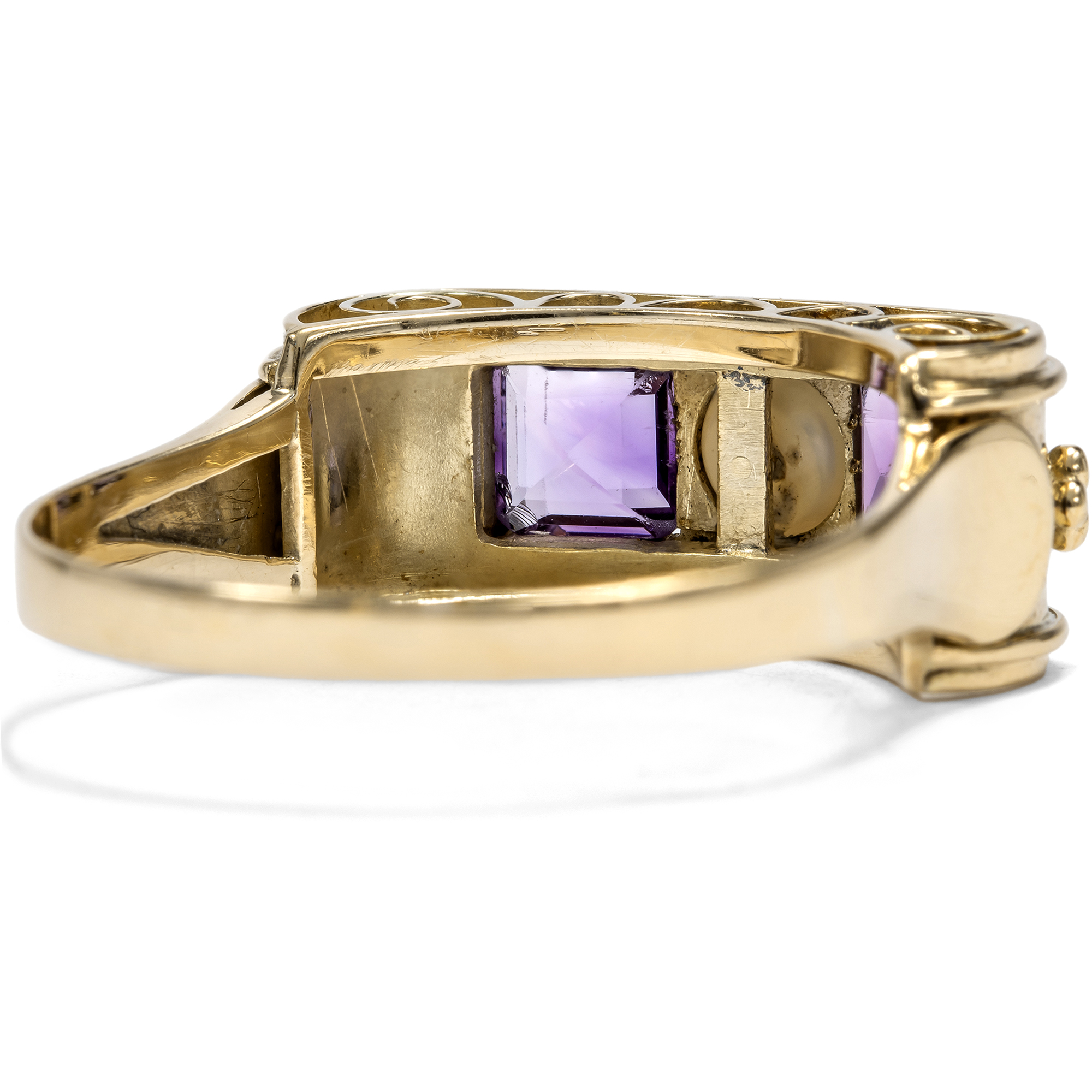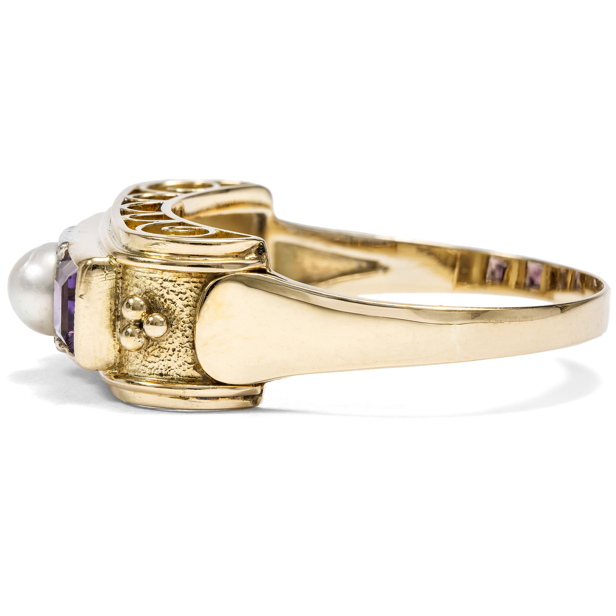 Elegant Art Déco ring with amethysts and cultured pearl, Germany circa 1935