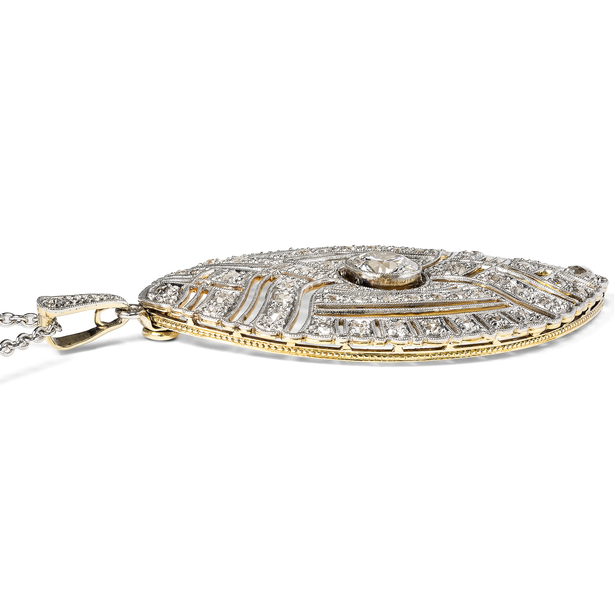Elegant Déco Pendant with Diamonds in Platinum on Gold, c. 1925