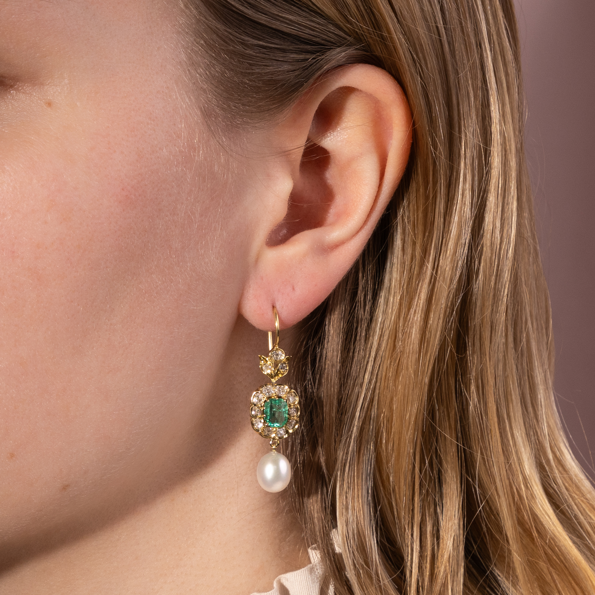 Fine Earrings with Emeralds, Diamonds & Pearls in Gold From Our Workshop
