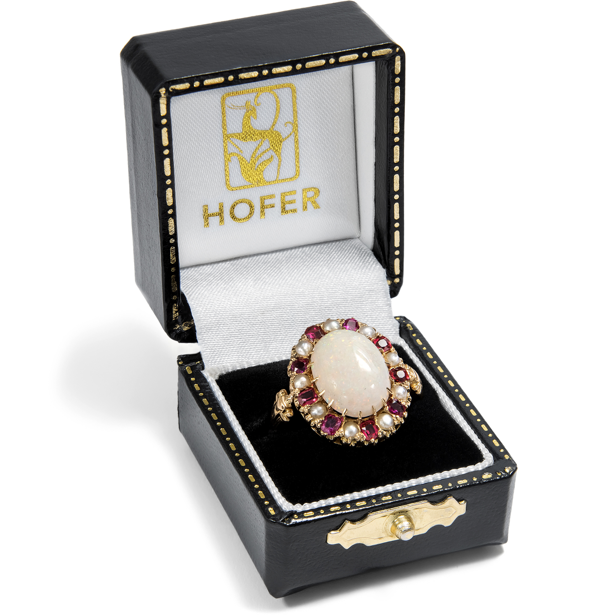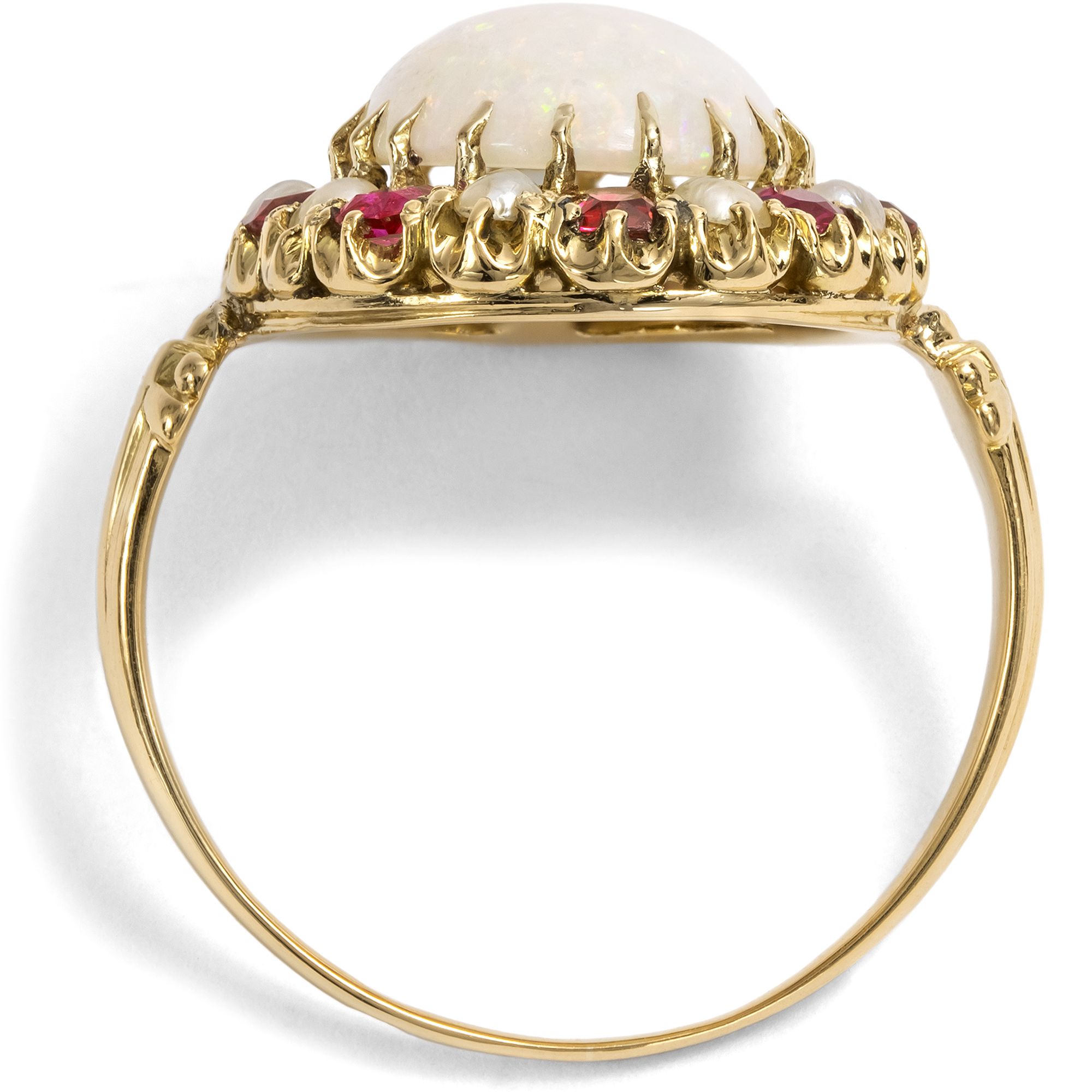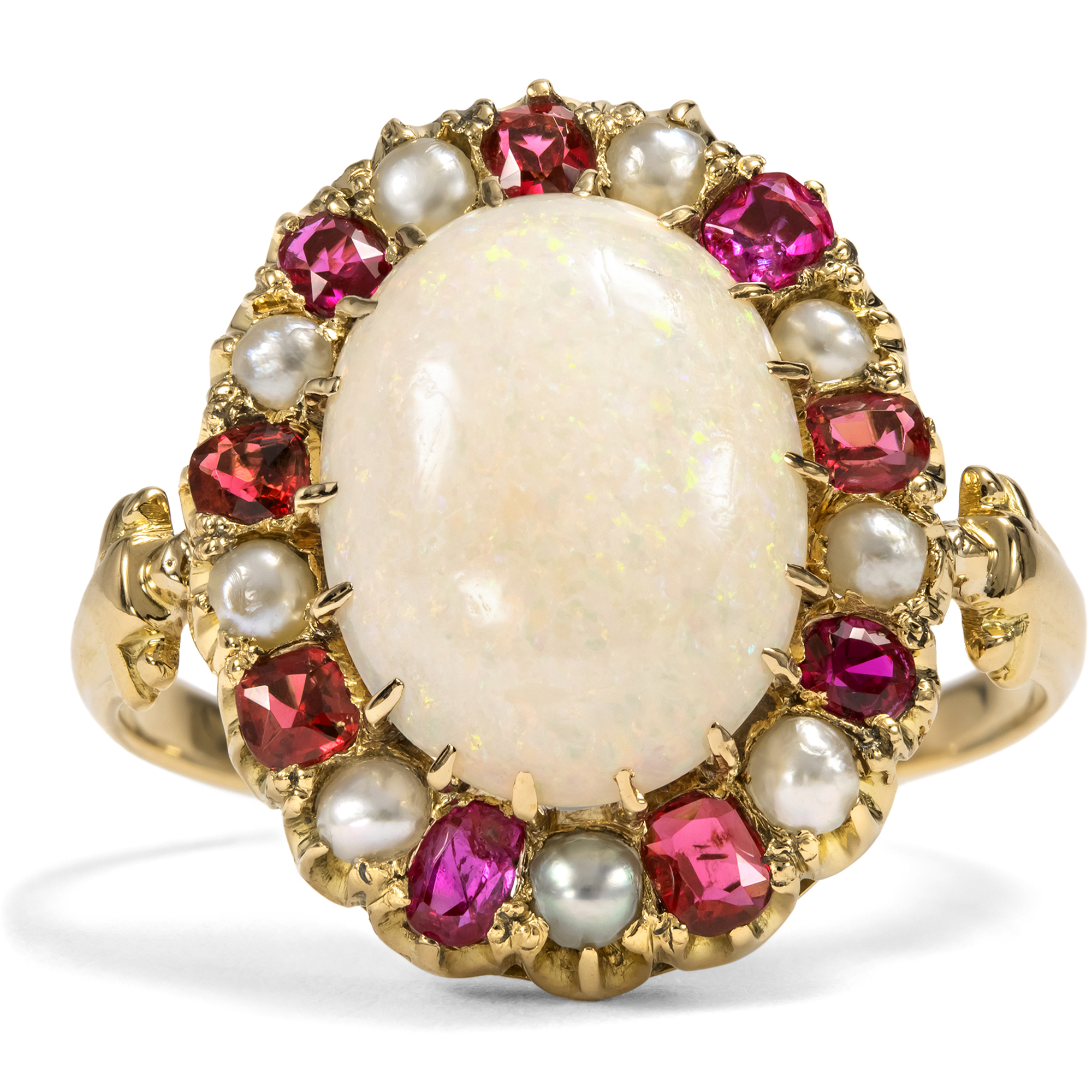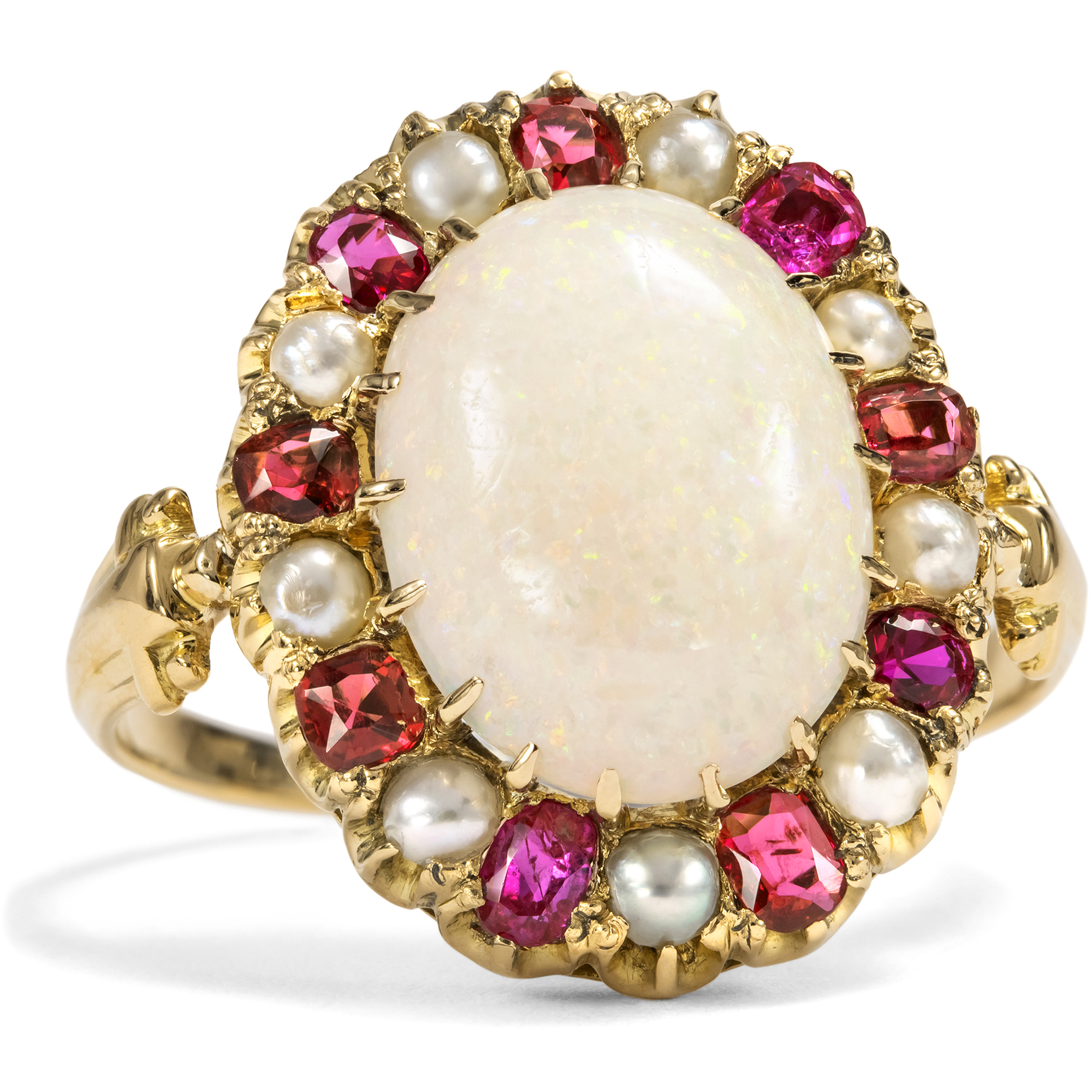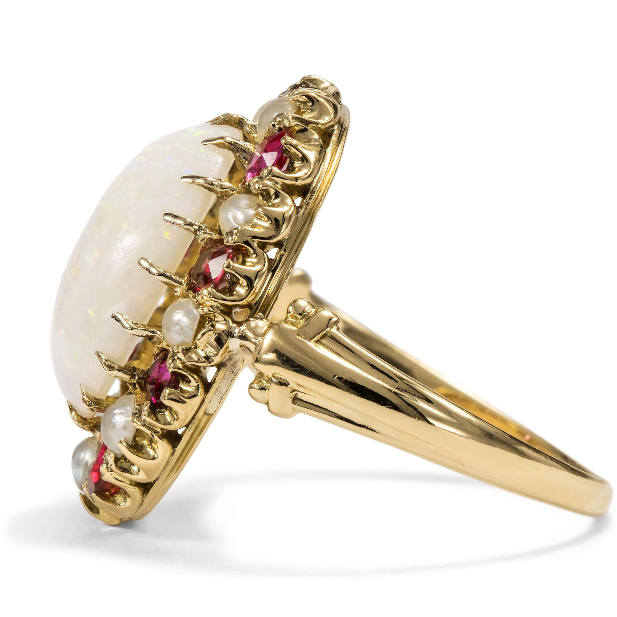 Magnificent Antique Ring with Opal, Rubies & Pearls, c. 1895