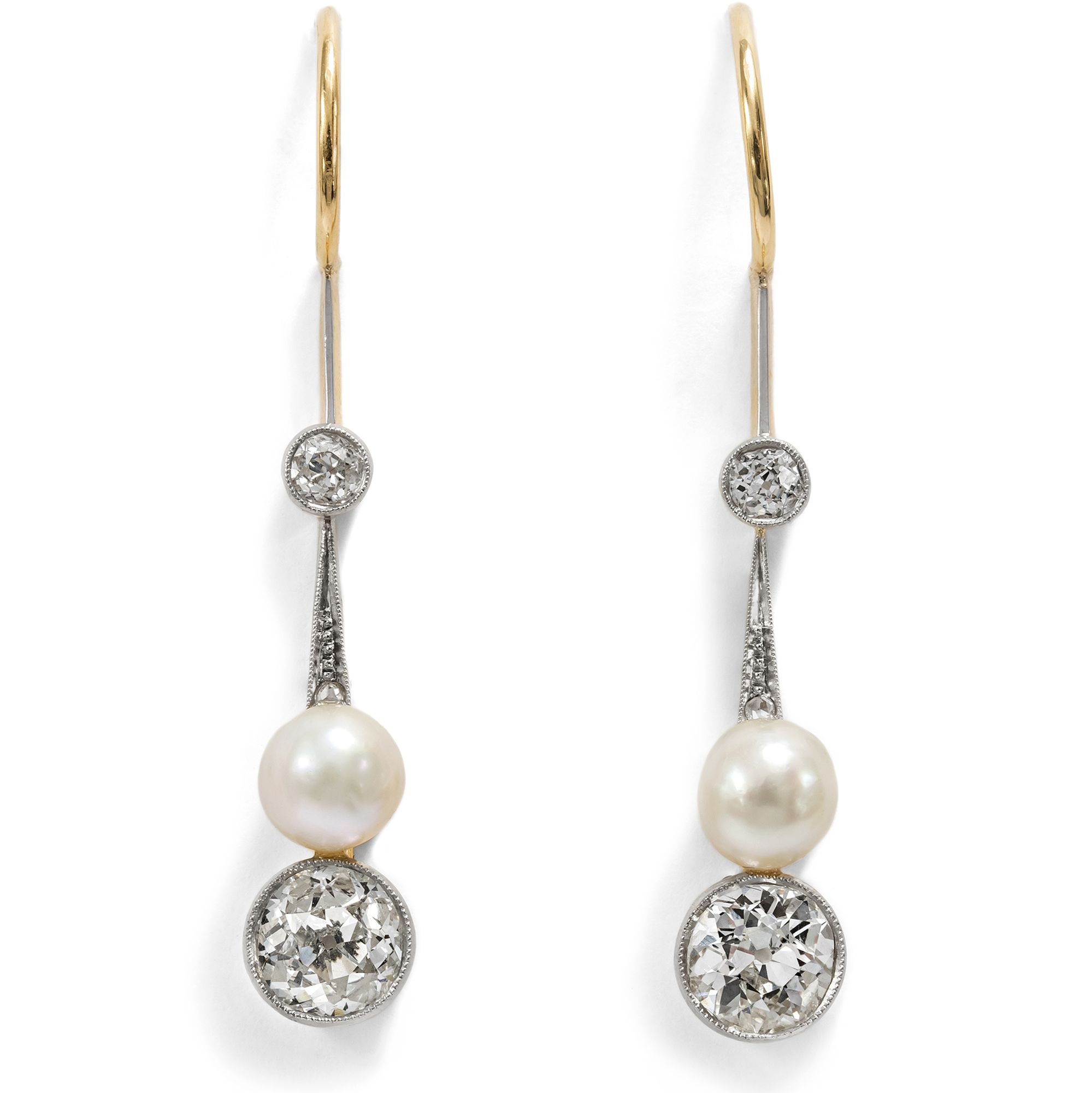 Natural Pearl and Diamond Earrings in Platinum and Gold, Conversion from our Workshop