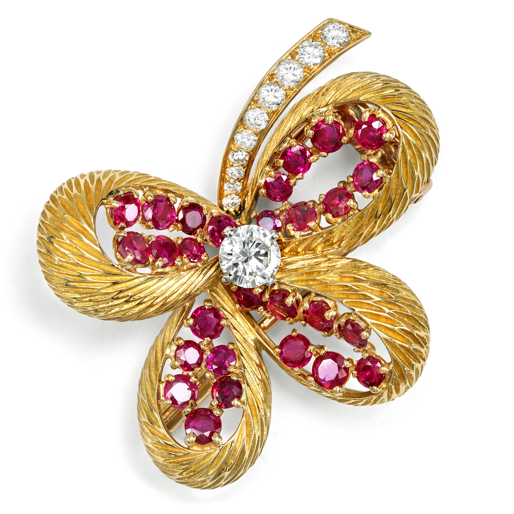Precious Gold Clip with Burma Rubies & Diamonds by Cartier, Paris c. 1960