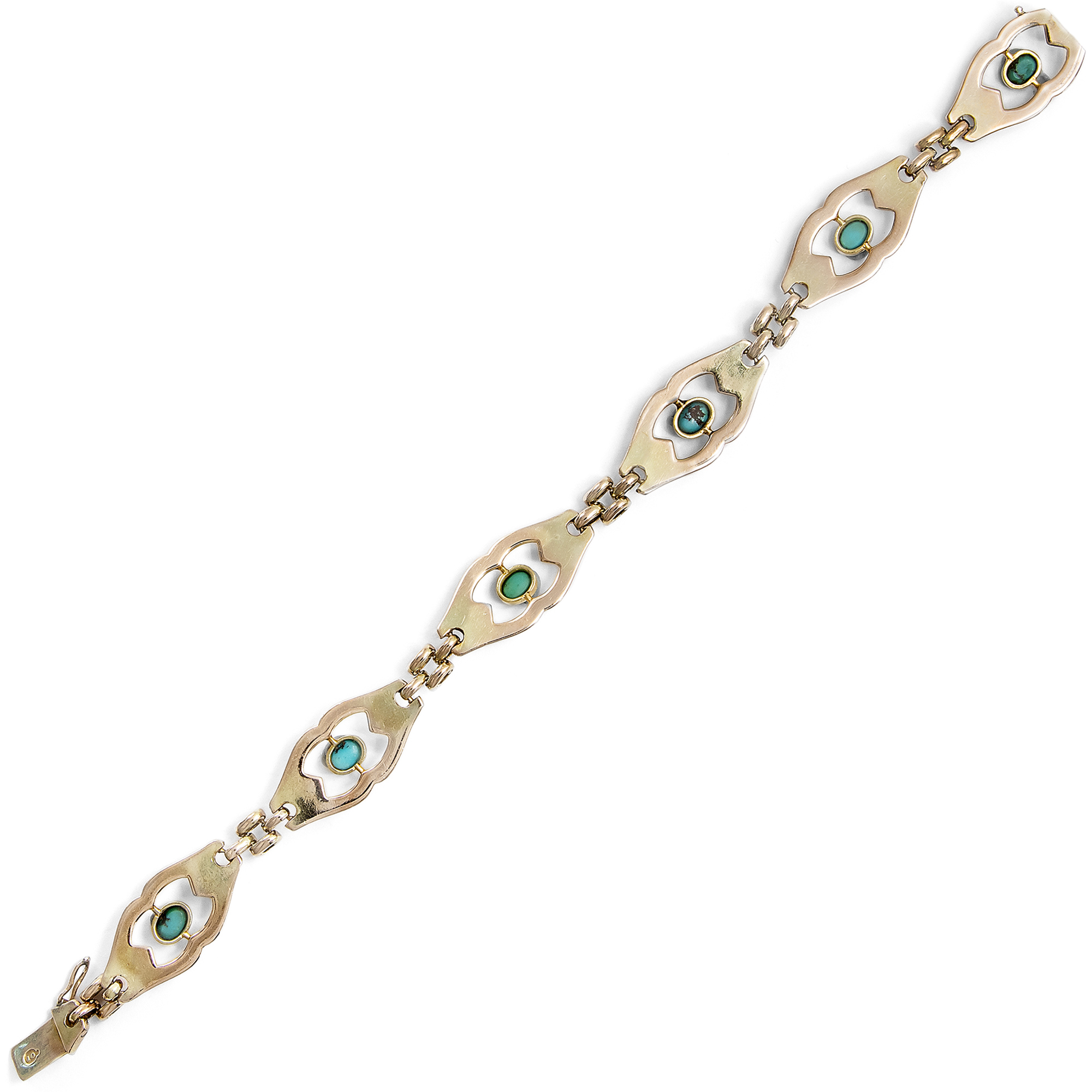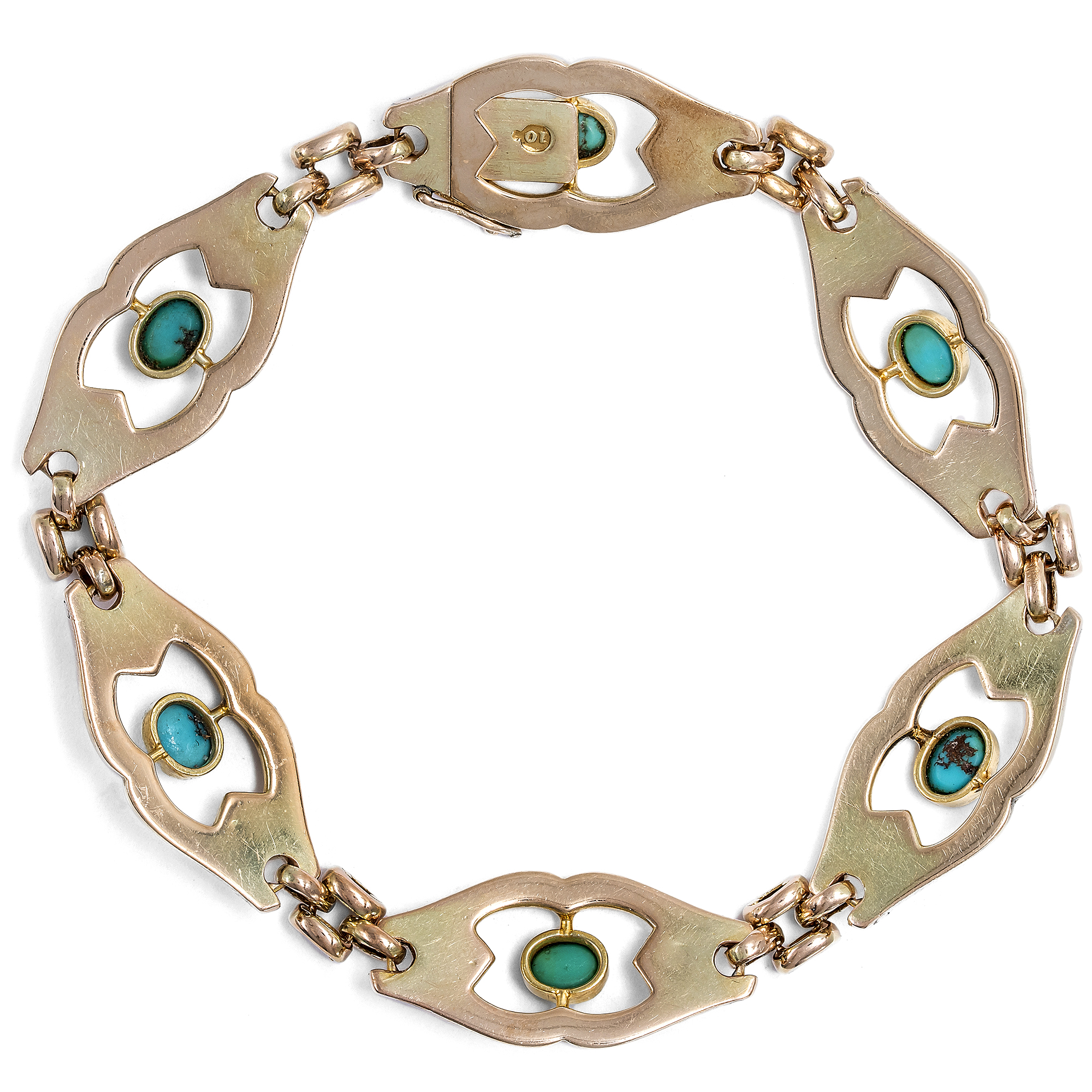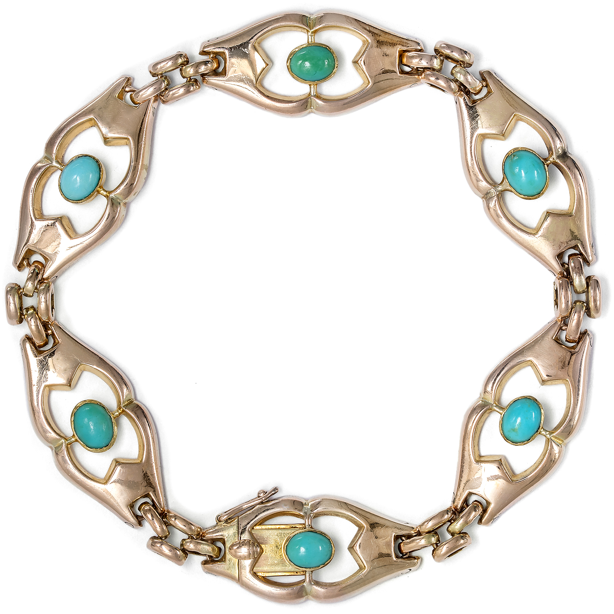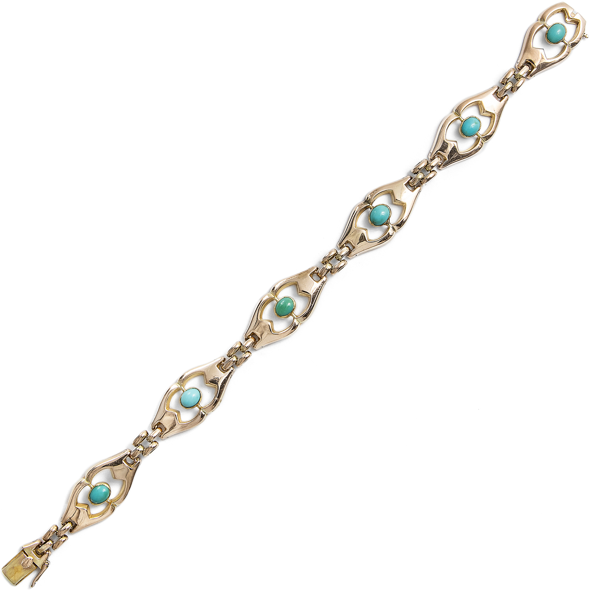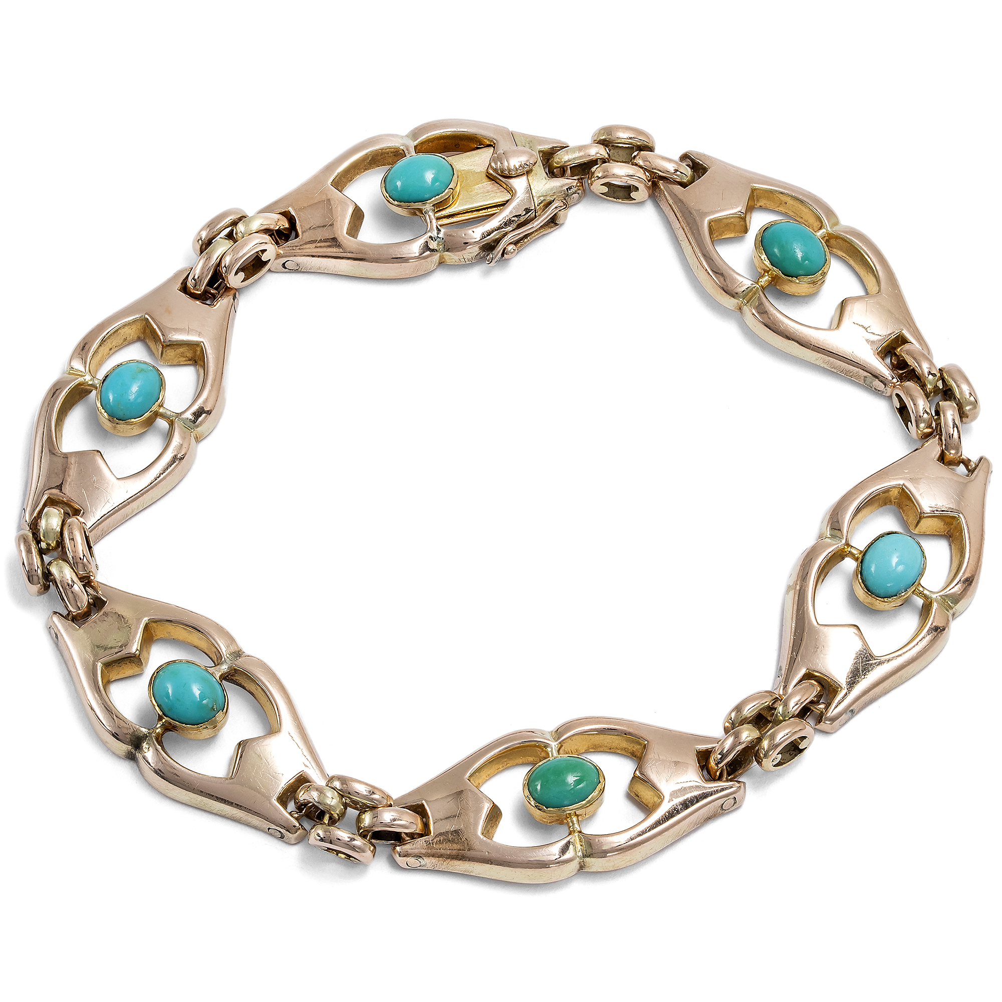 Romantic bracelet with turquoise in gold, probably USA c. 1910