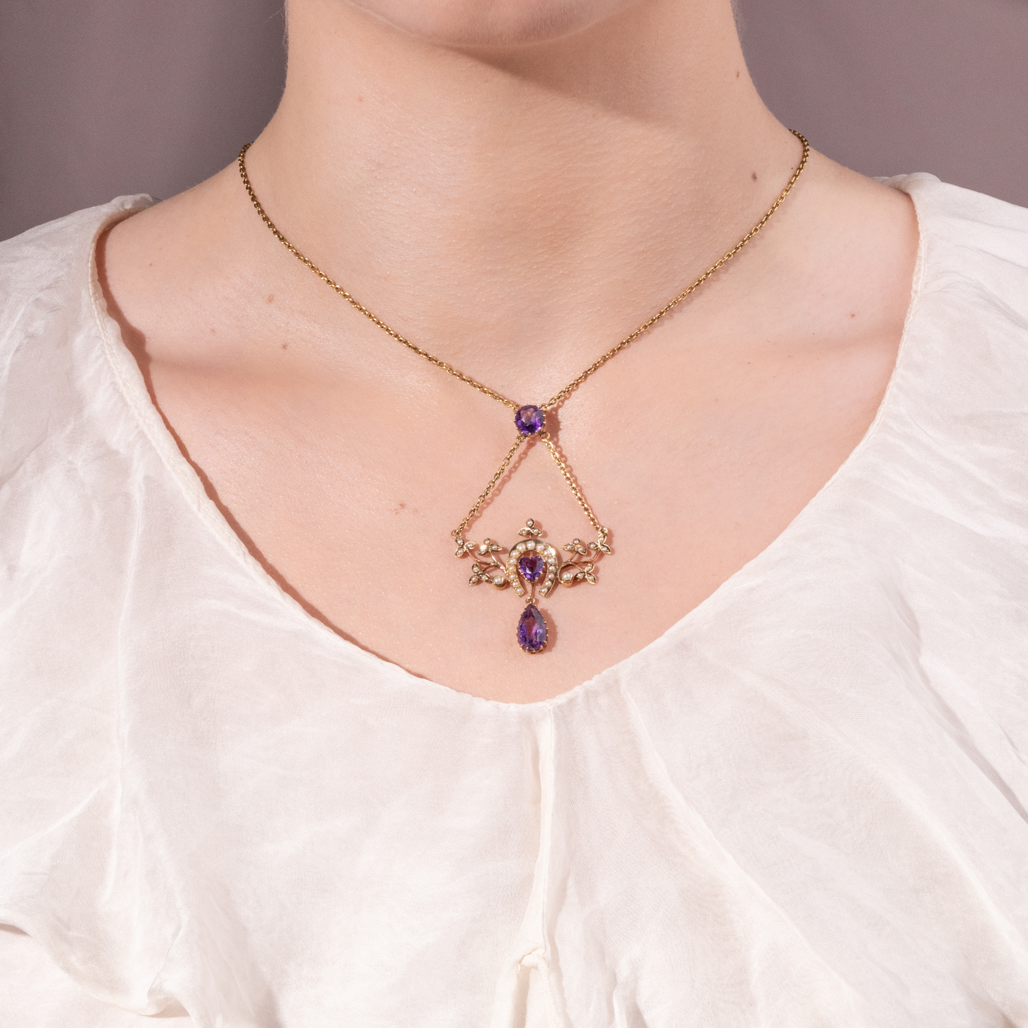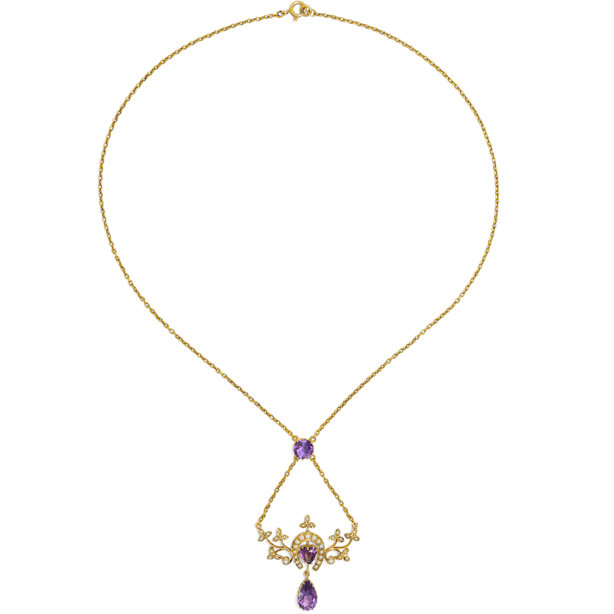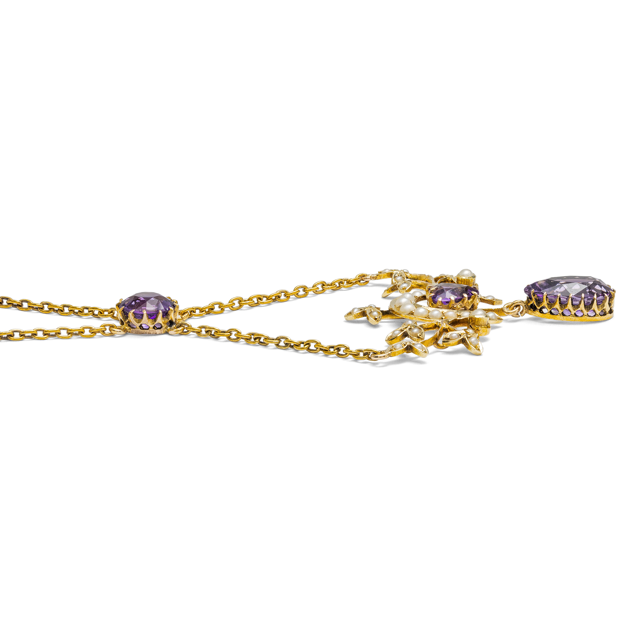 Romantic Gold Necklace with Amethysts & Pearls, Great Britain c. 1900