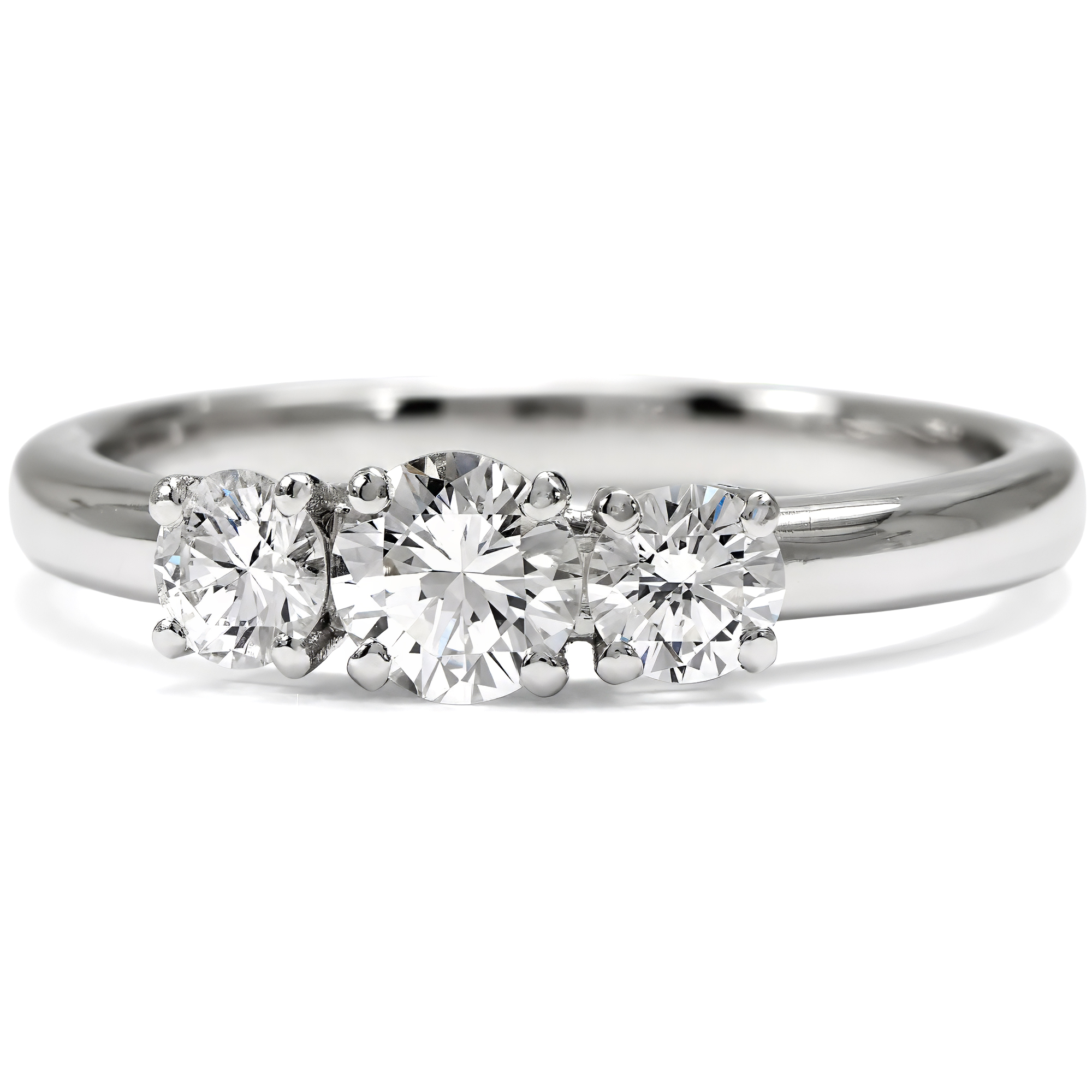 Unworn "Trilogy" Ring with 0.64 ct Vintage Diamonds in Platinum, From Our Workshop