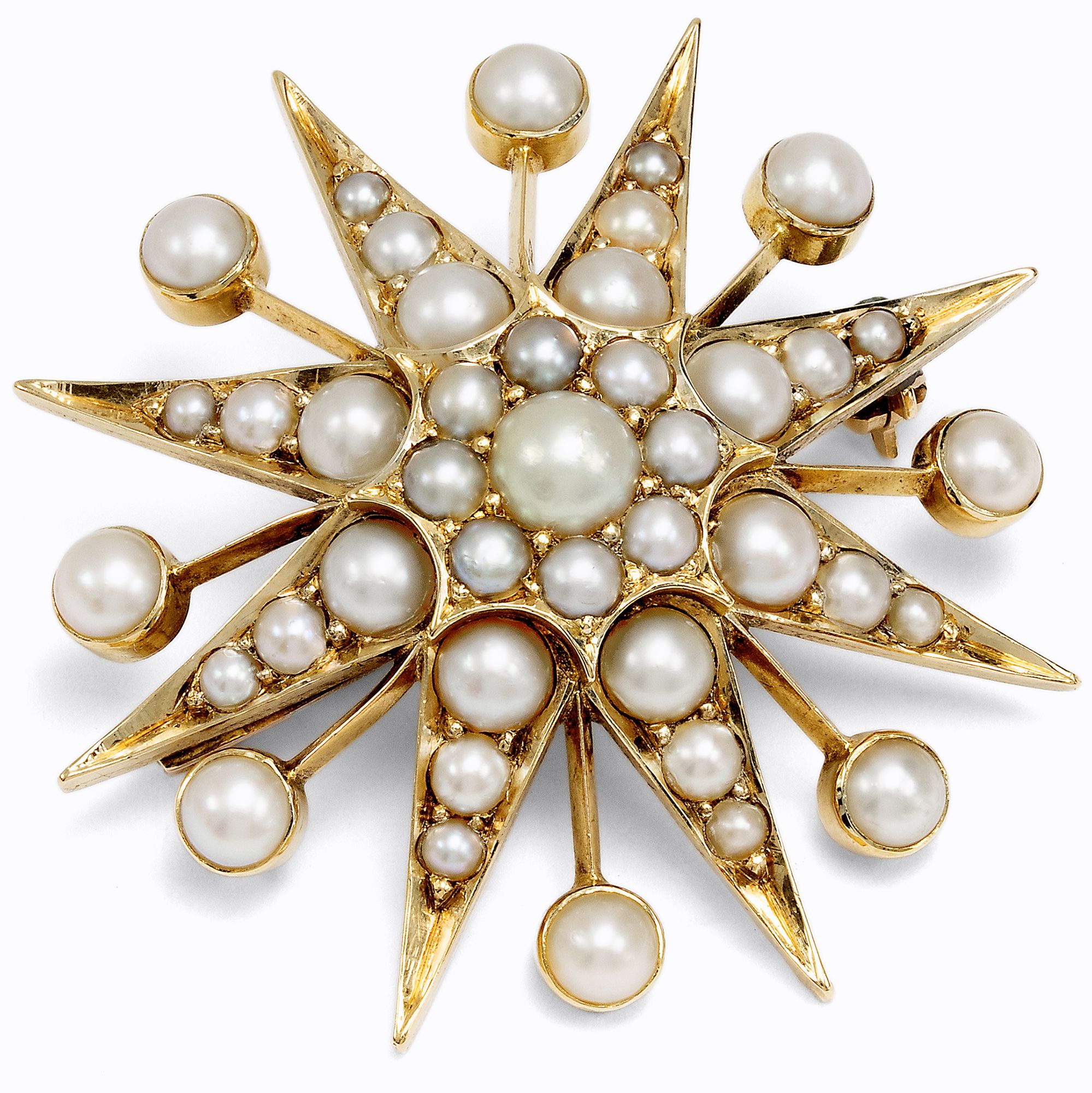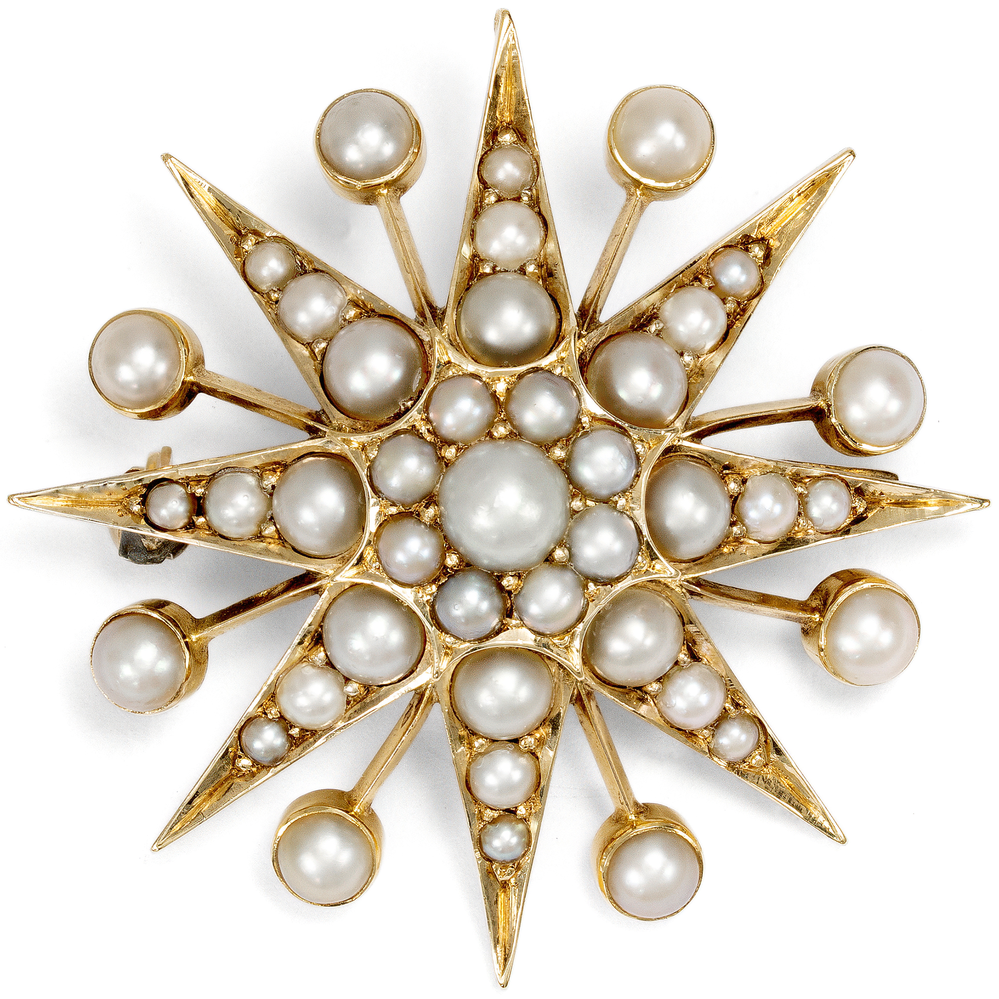 Victorian Star Brooch with Seed Pearls in Gold, British, c. 1890