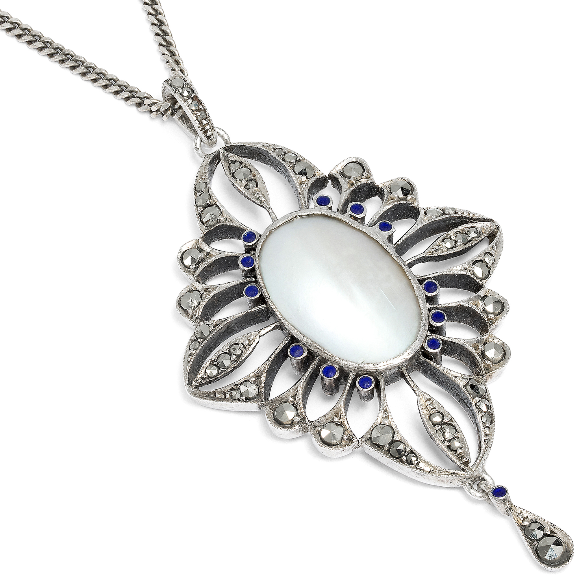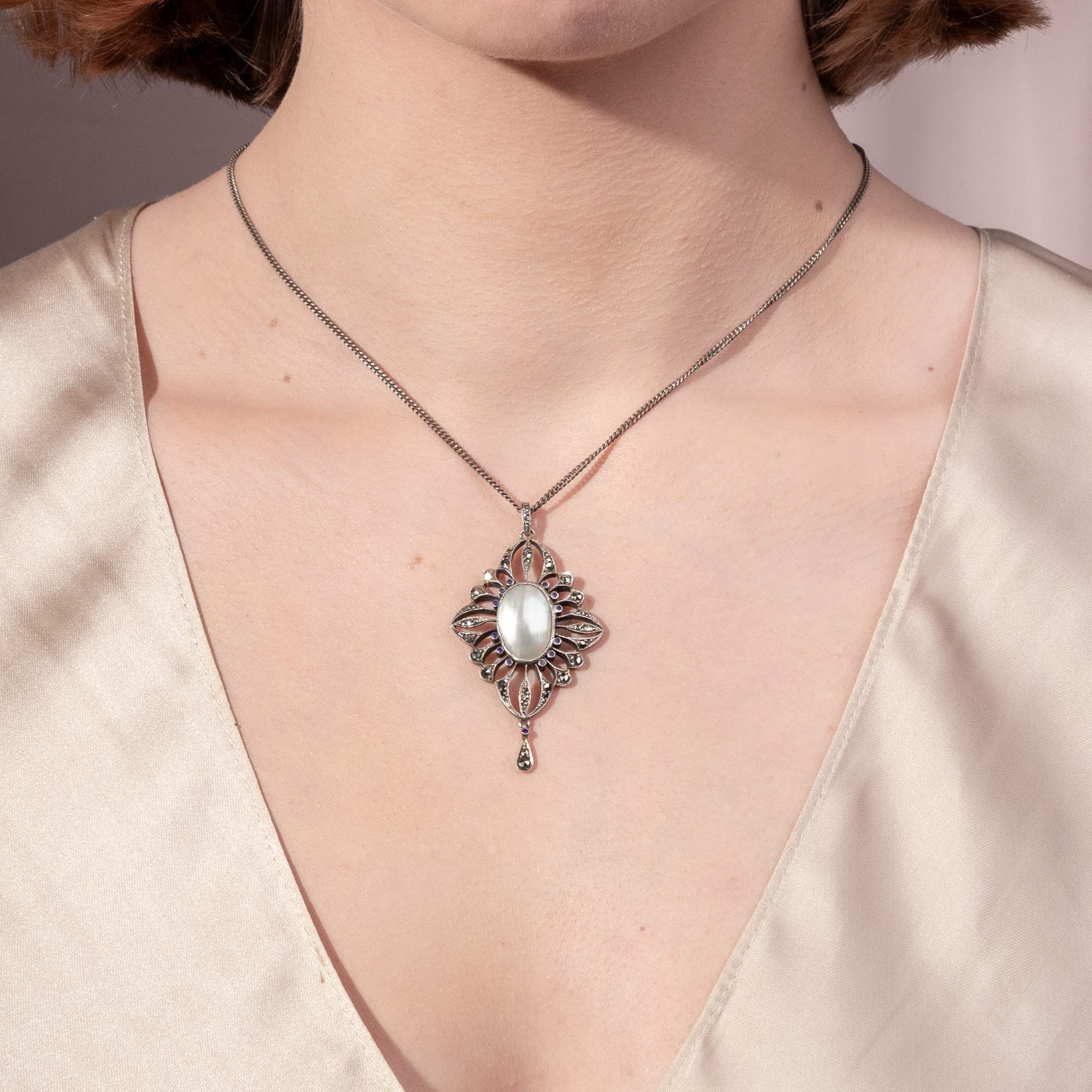 Anhänger mit Perschale & Markasiten in Silber von Levinger & Bissinger, Pforzheim um 1915