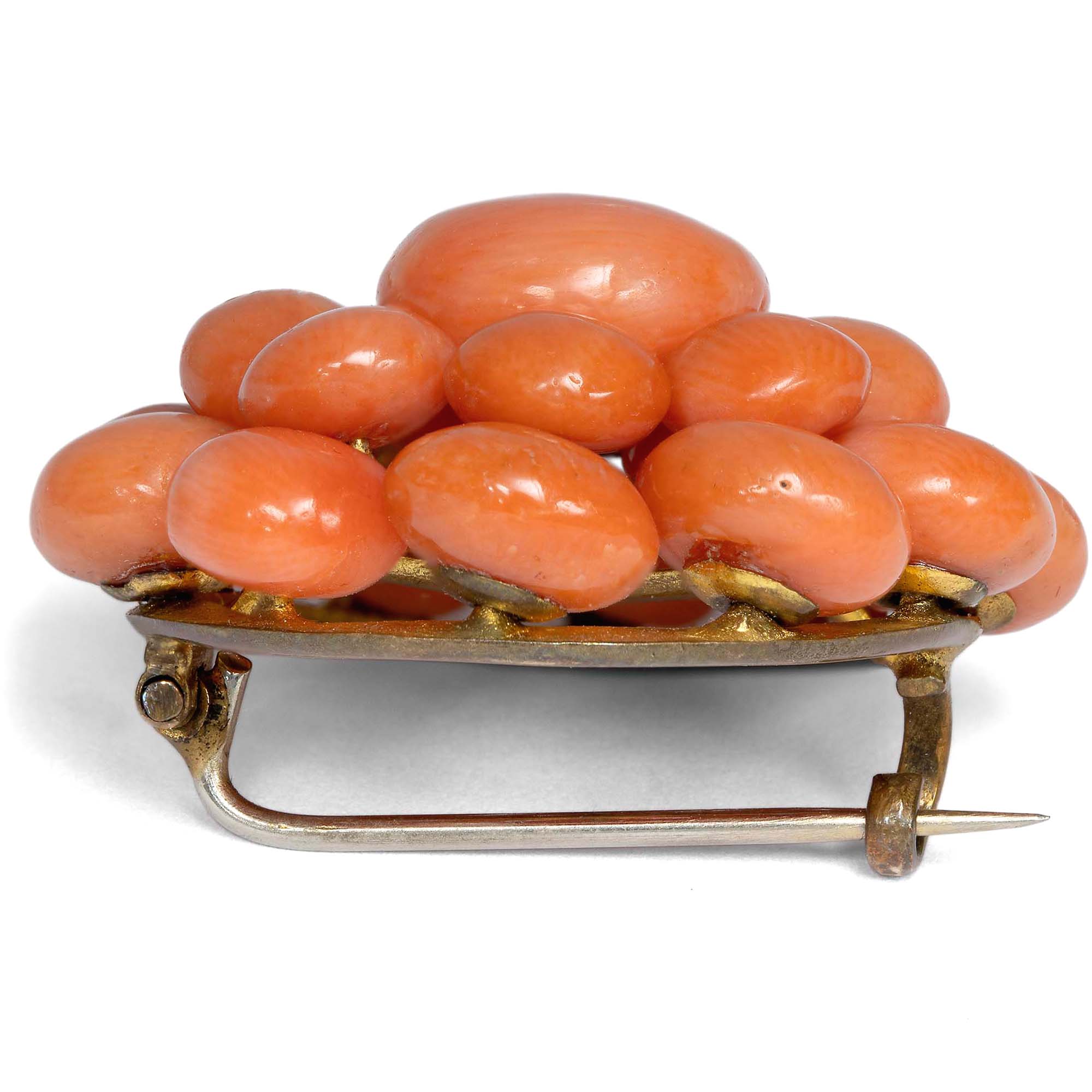 Antike Brosche aus lachsfarbener Koralle, Italien um 1890