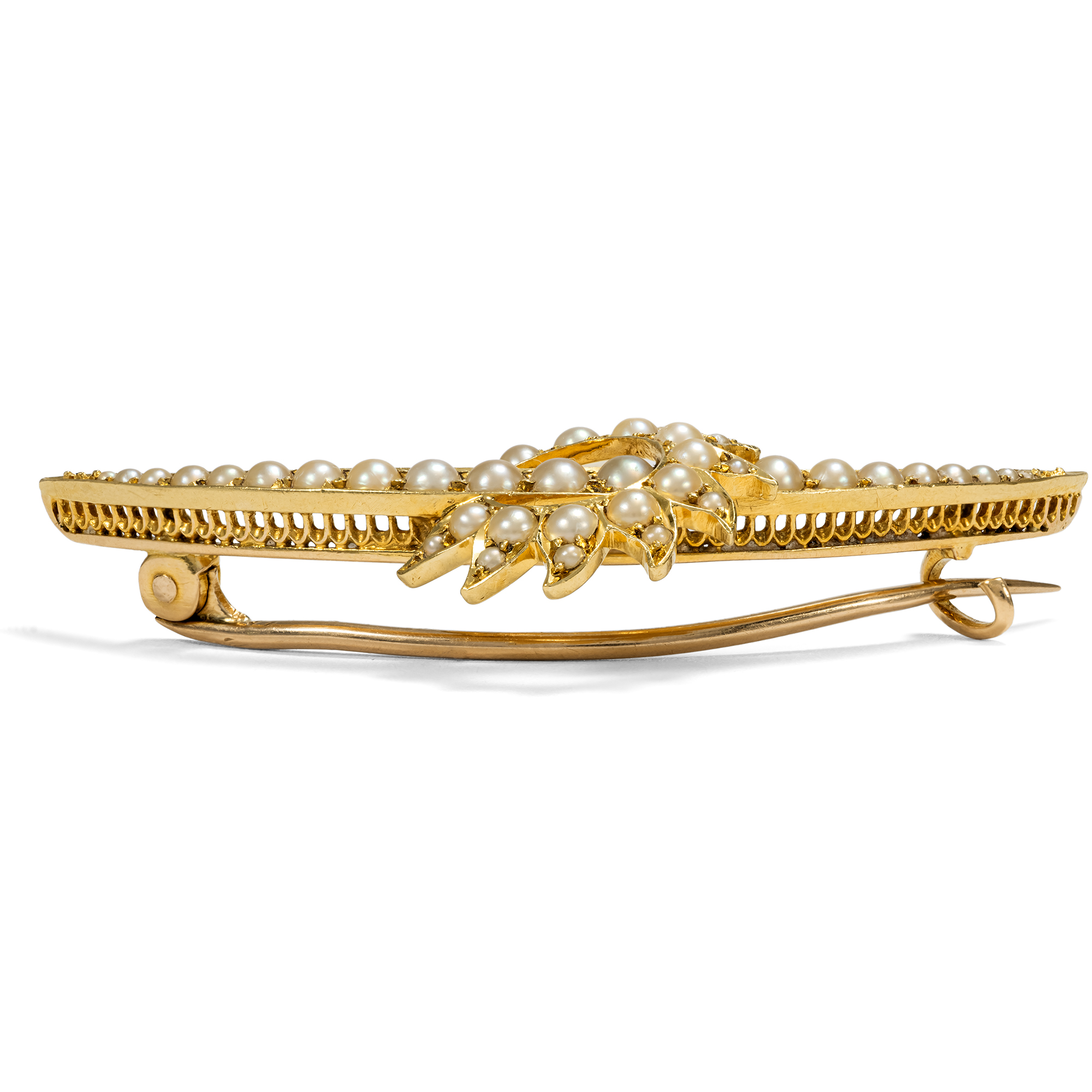 Antike Brosche mit Saatperlen in Gold, Großbritannien um 1900