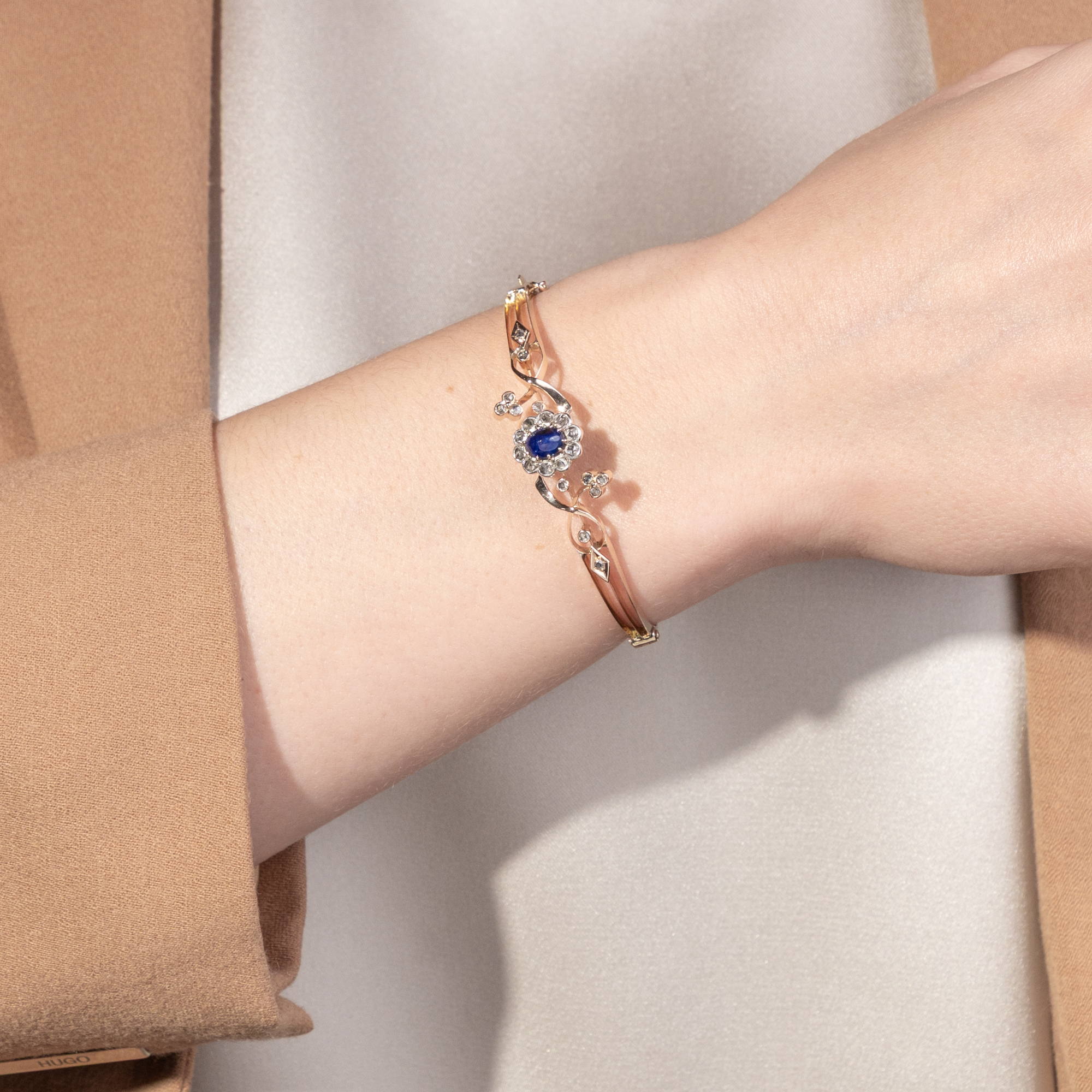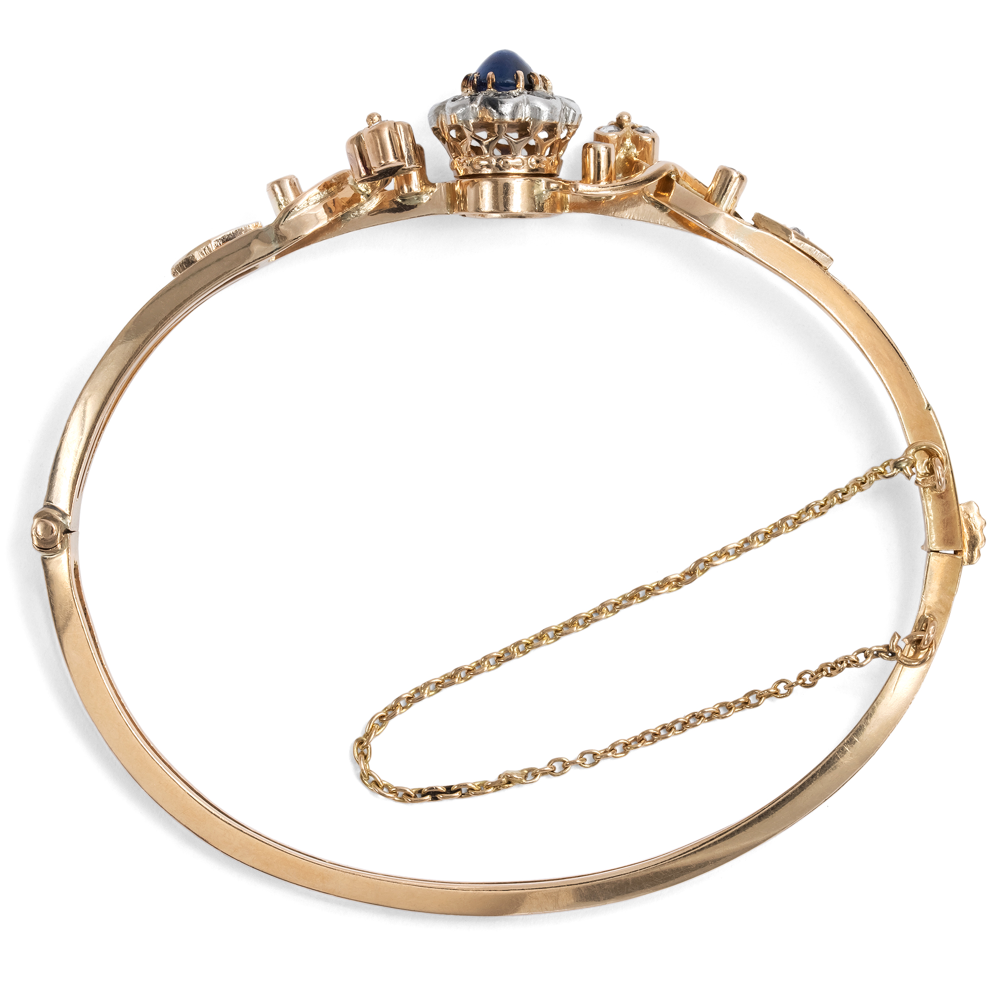 Antiker Armreif aus Gold mit Saphir & Diamanten, um 1890