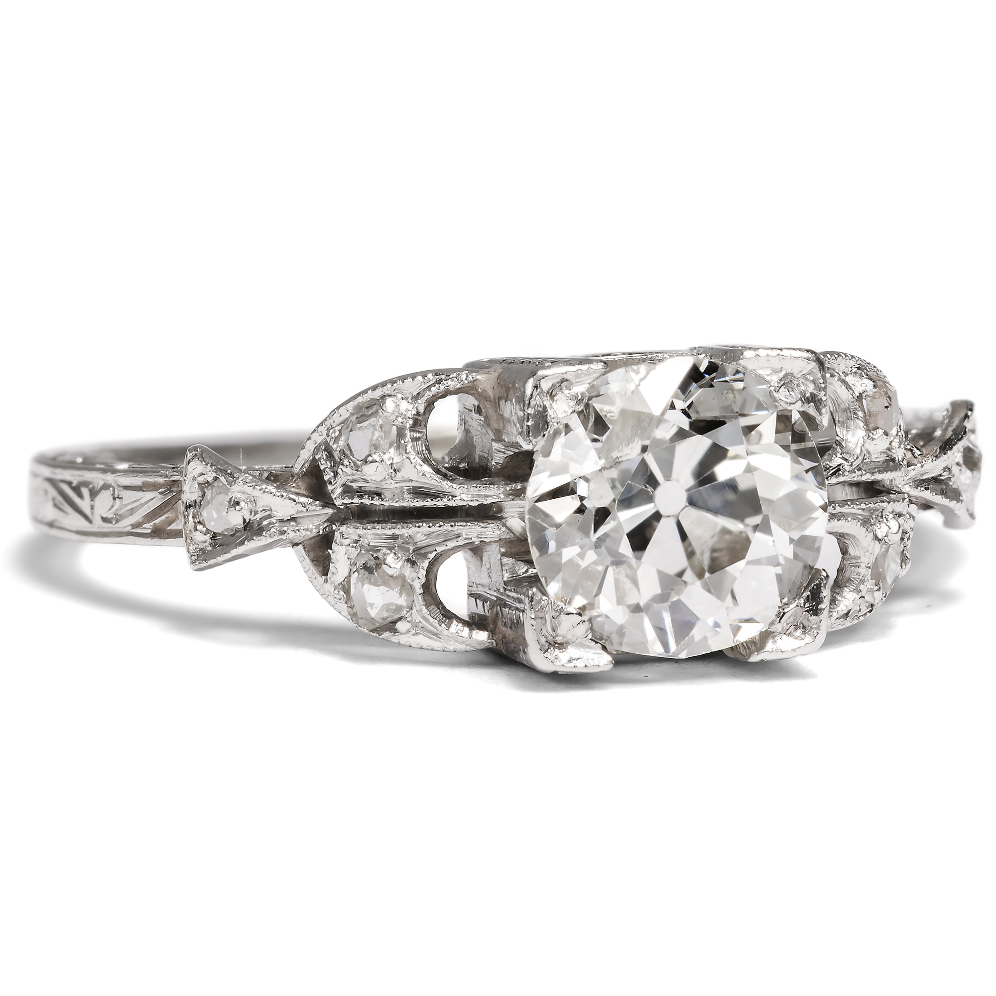 Antiker Ring des Art Déco mit 0,80 ct Diamant im Altschliff in Weißgold, um 1925