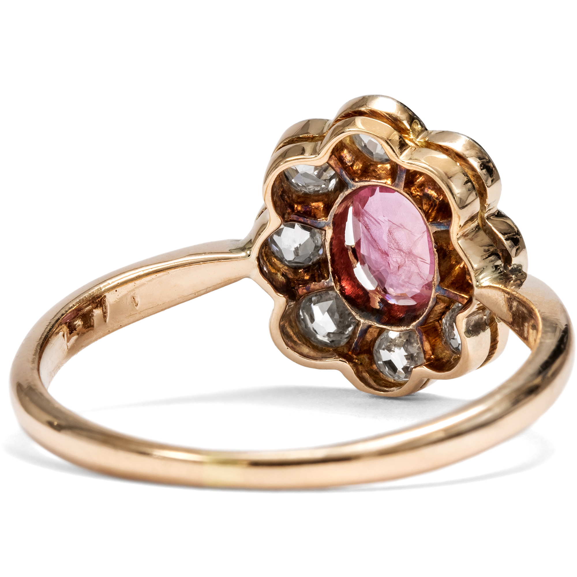 Antiker Ring mit „Padparadscha“-Saphir & Diamanten in Gold, um 1900 & später