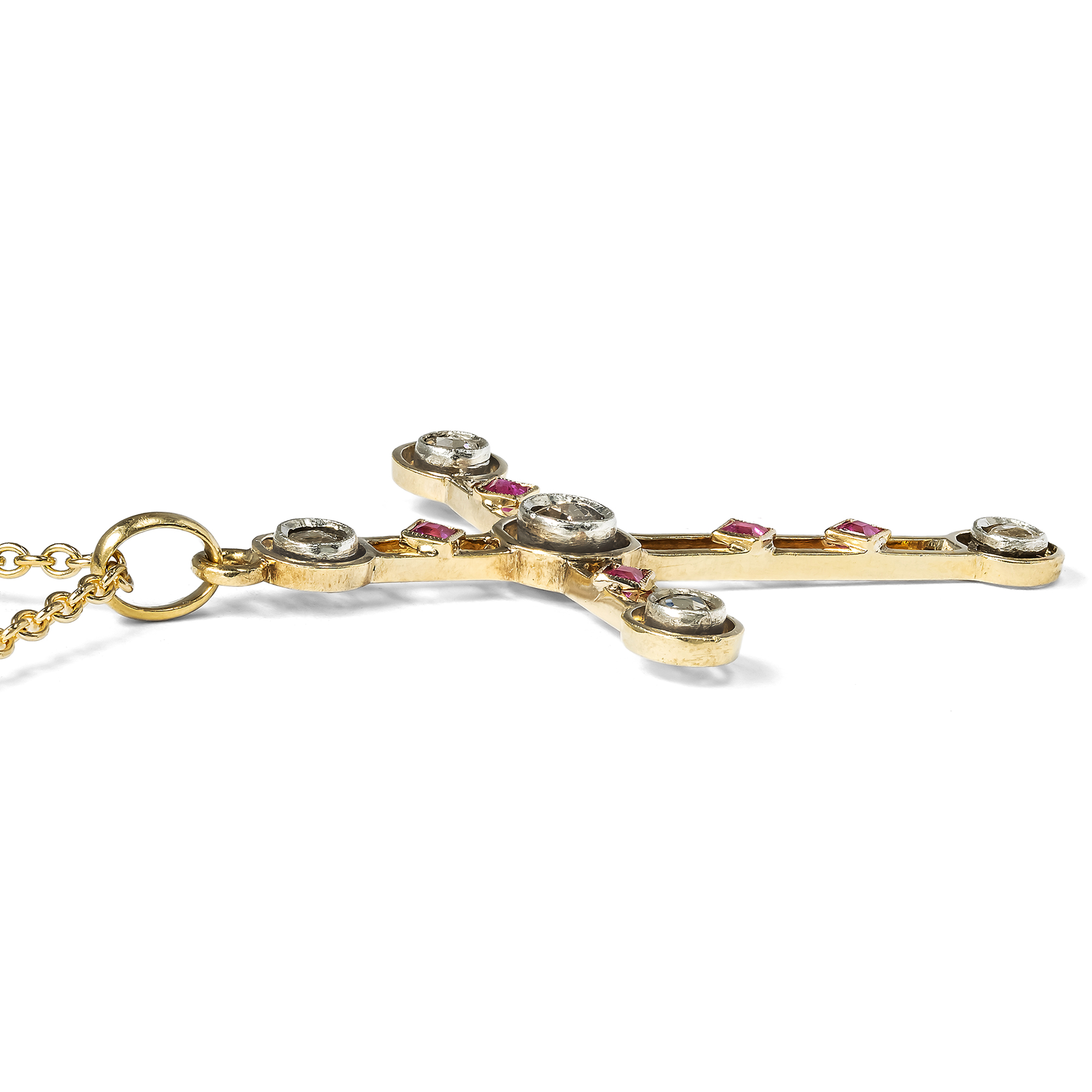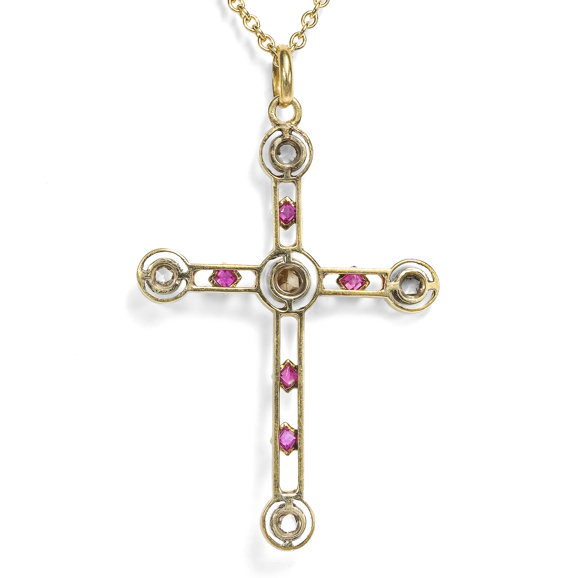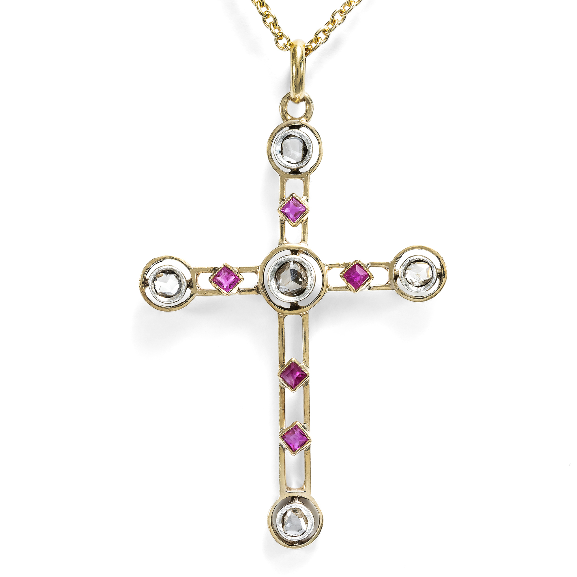 Antiker Kreuz-Anhänger mit Diamanten & Rubinen in Gold, um 1910