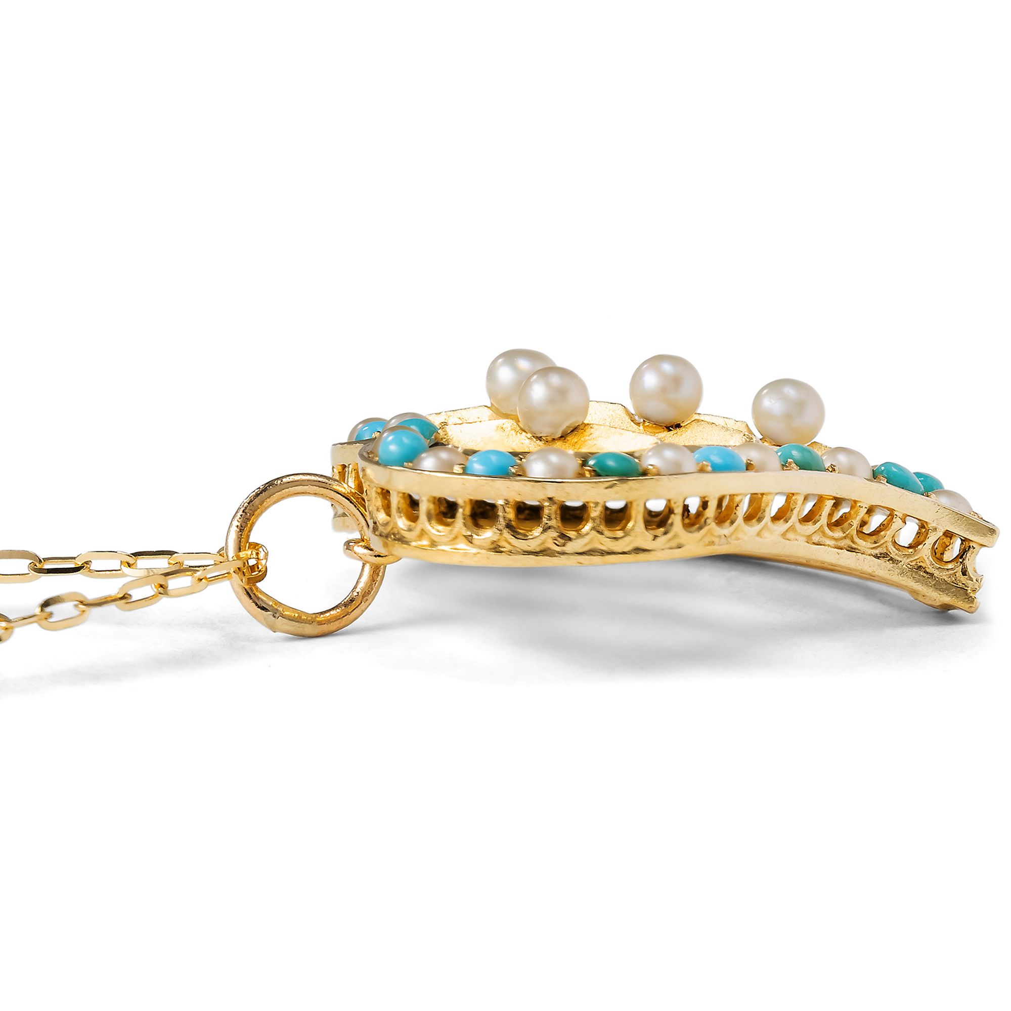 Antiker „Luckenbooth“ Anhänger mit Türkisen & Perlen in Gold, Großbritannien um 1895