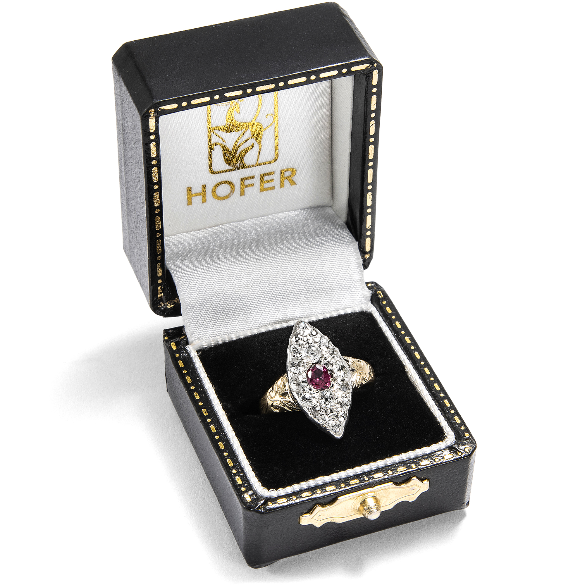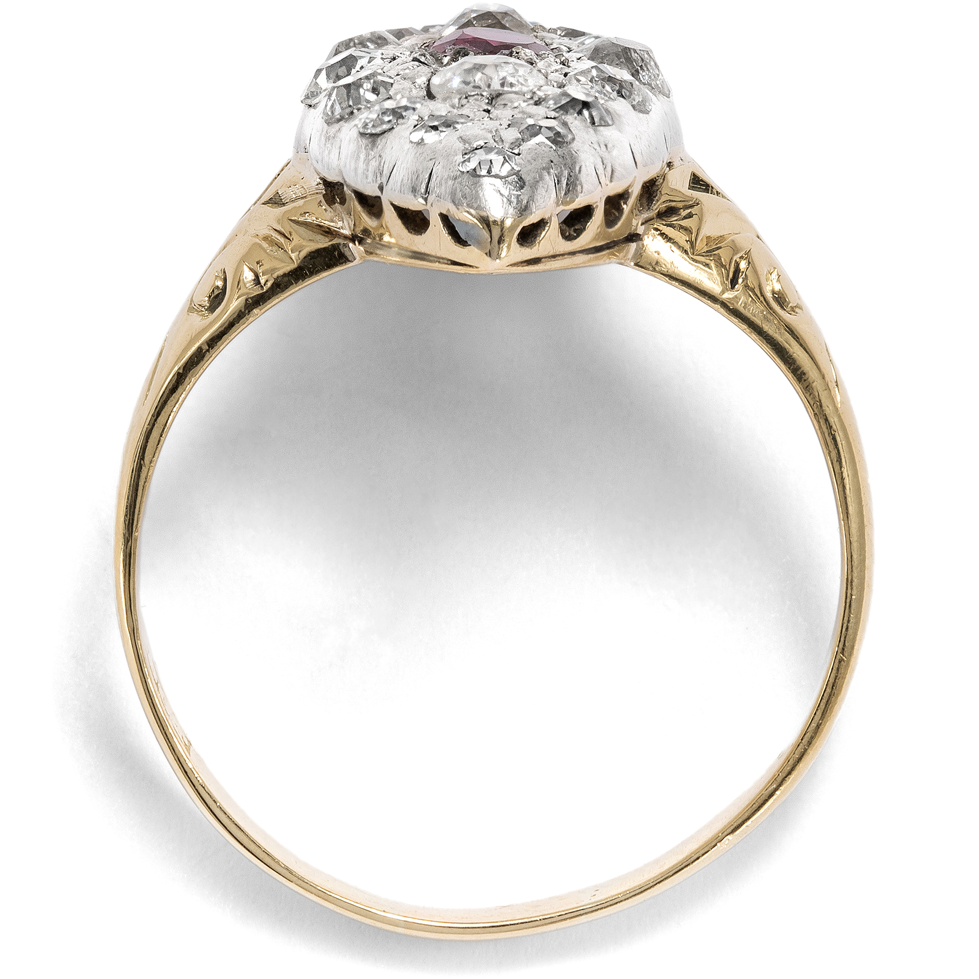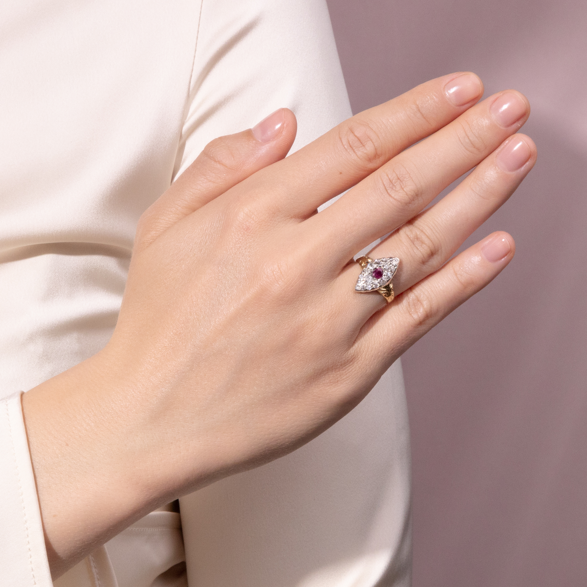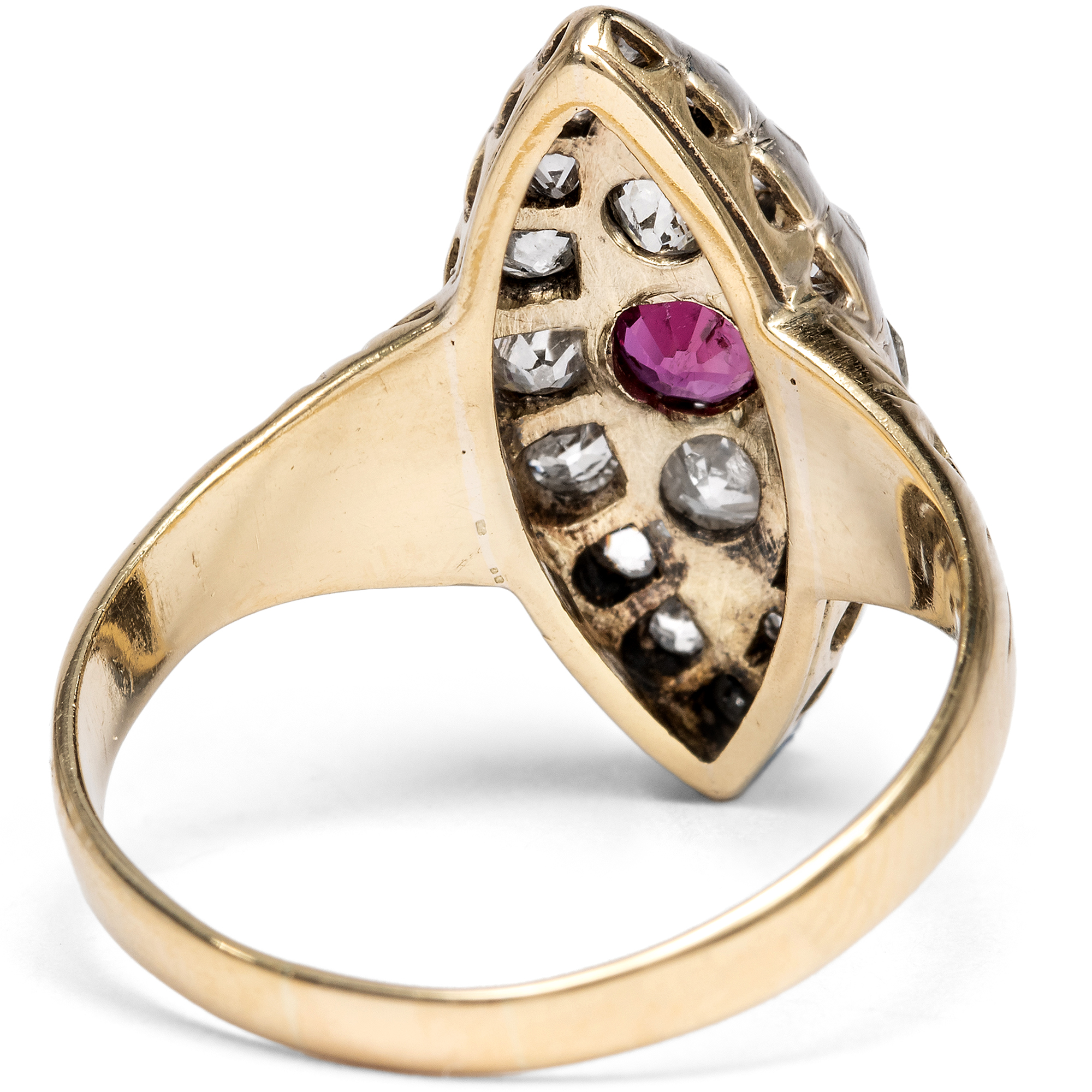 Antiker „Marquise“-Ring mit Rubin & Diamanten in Gold & Silber, Birmingham um 1890