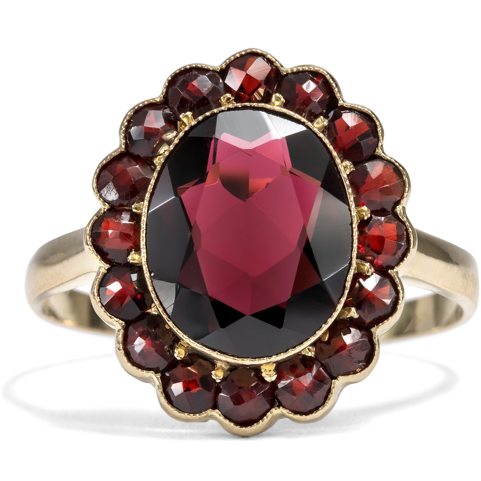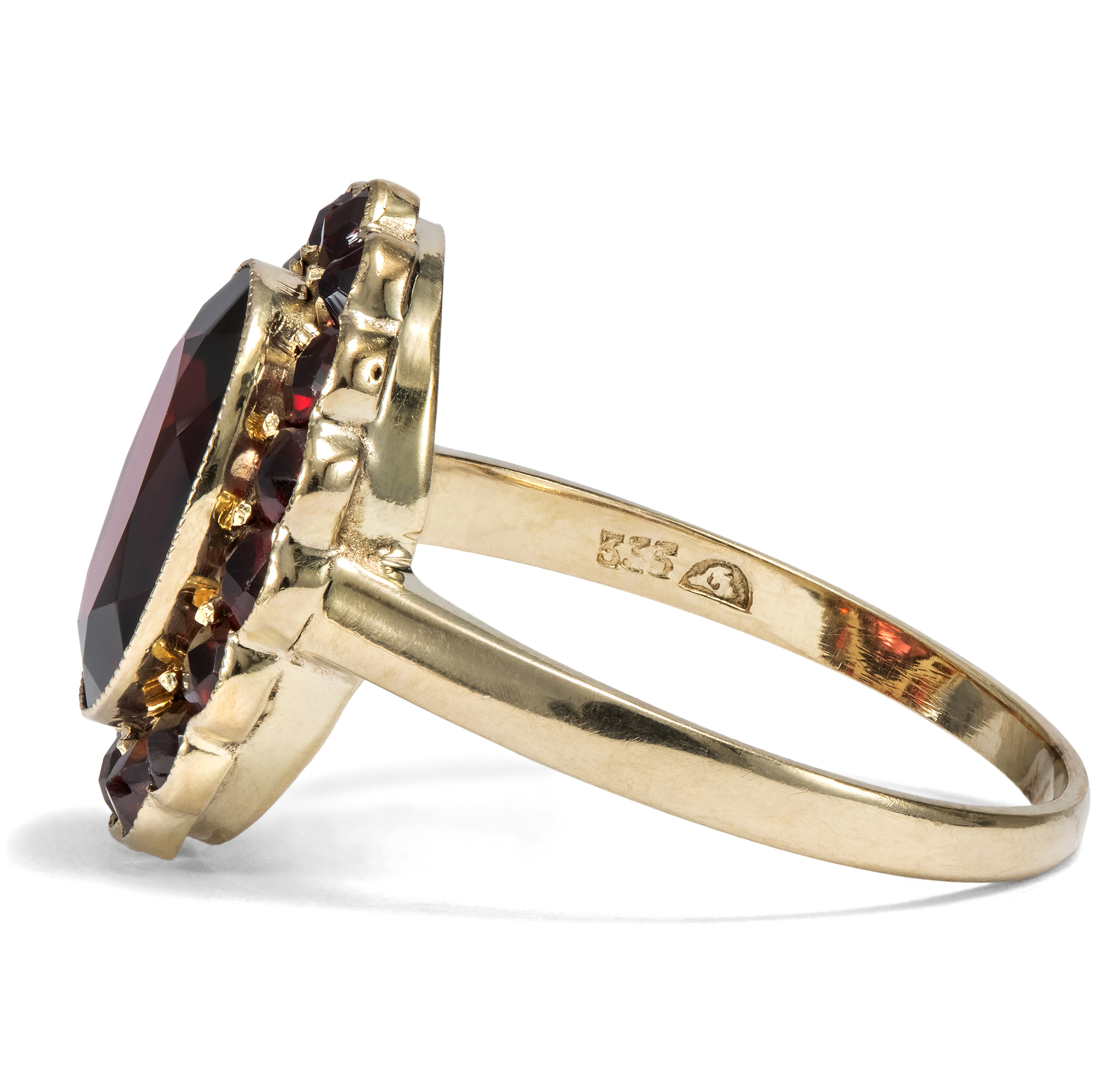 Klassischer Ring mit Granaten in Gold, Deutschland um 1940