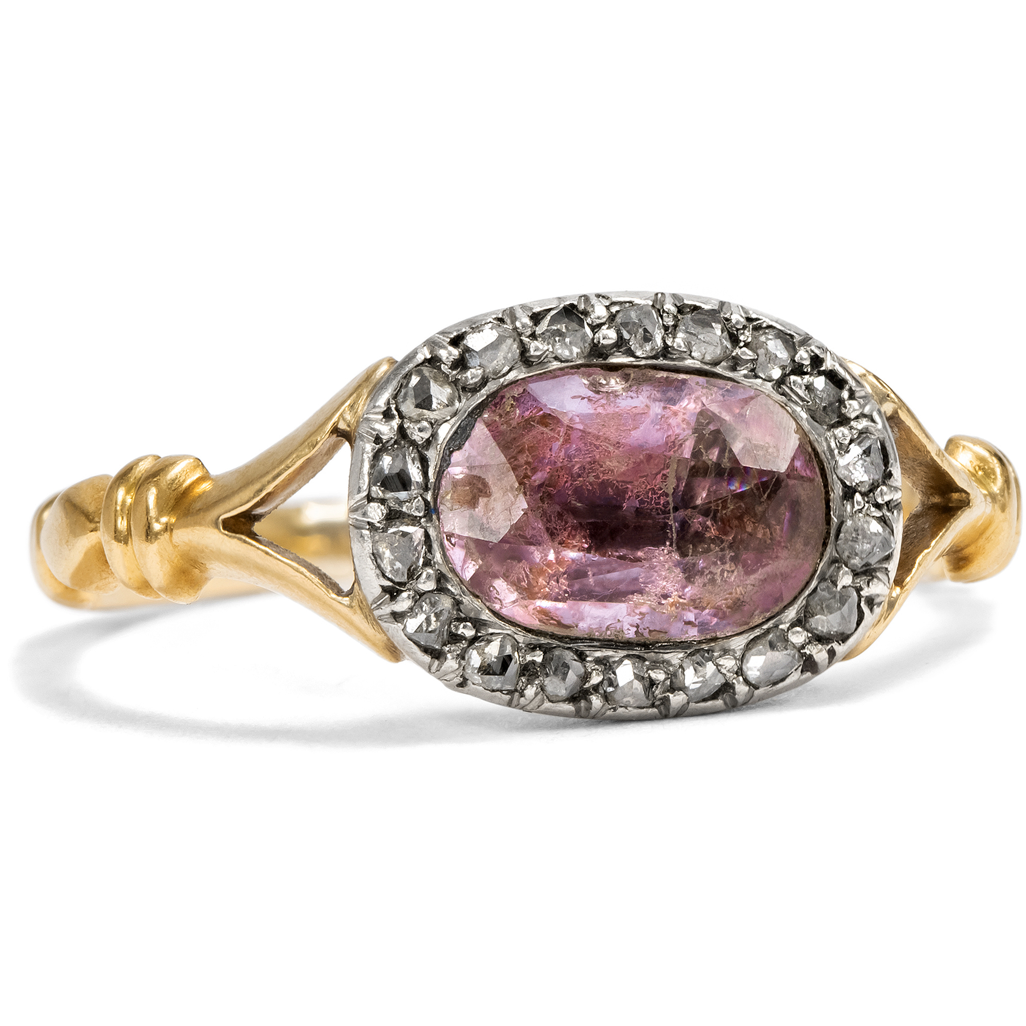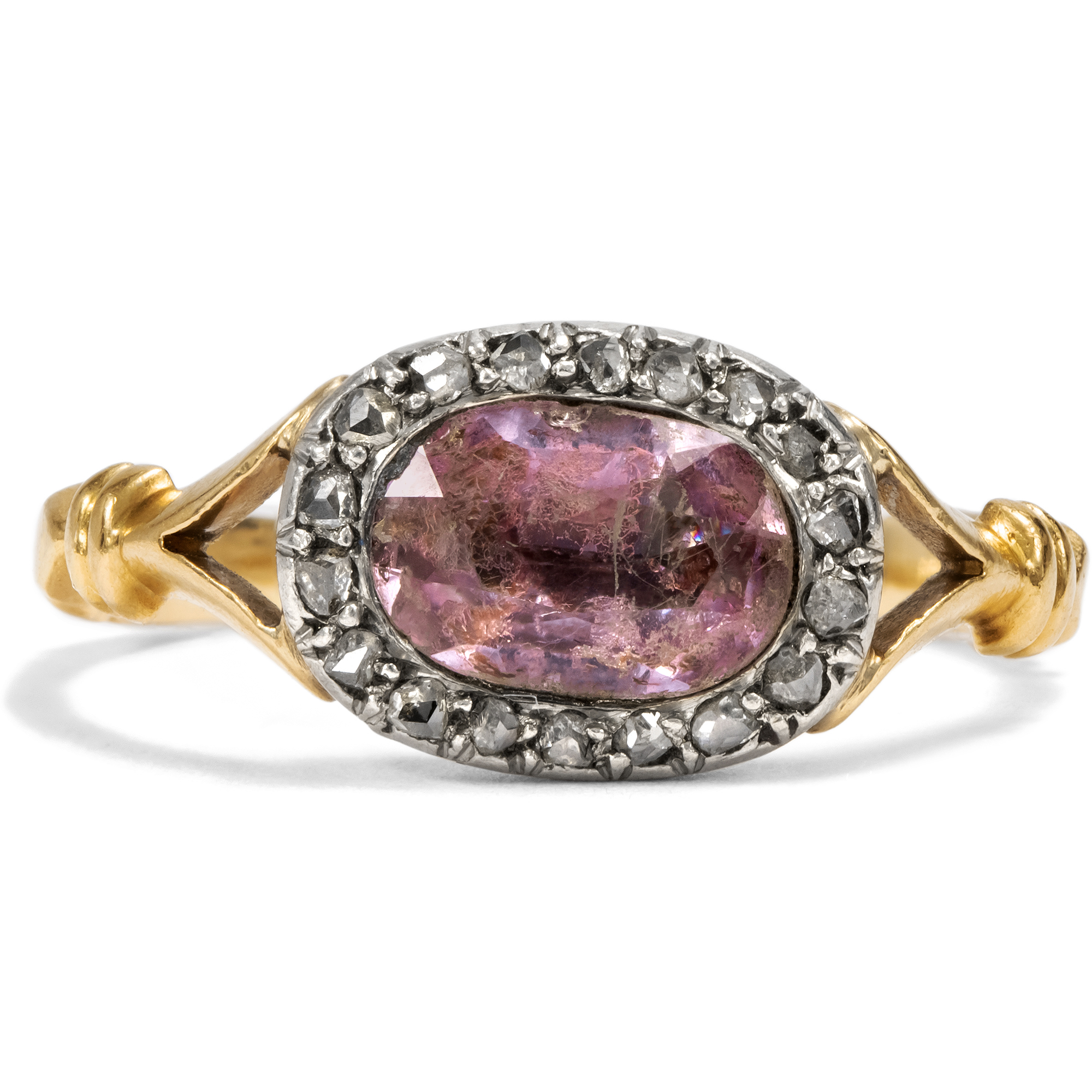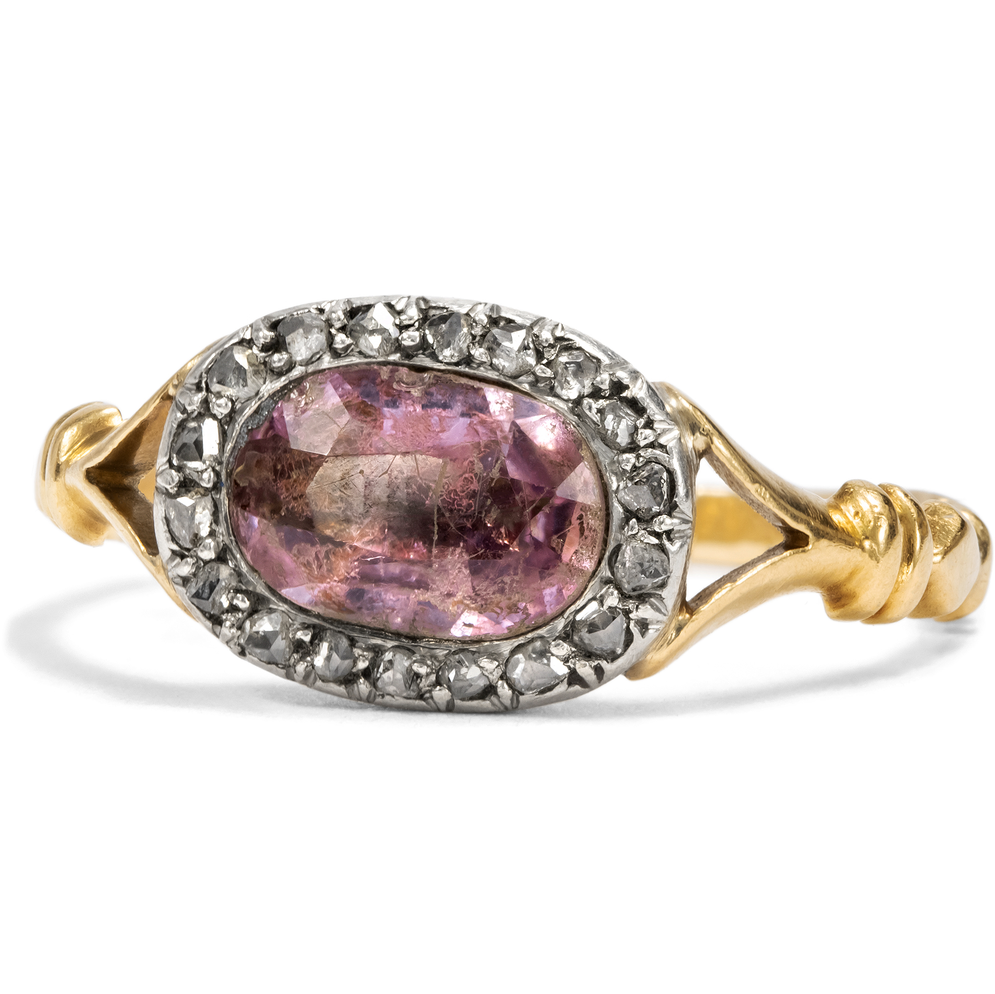 Antiker Ring mit rosa Topas in Gold & Platin, um 1900