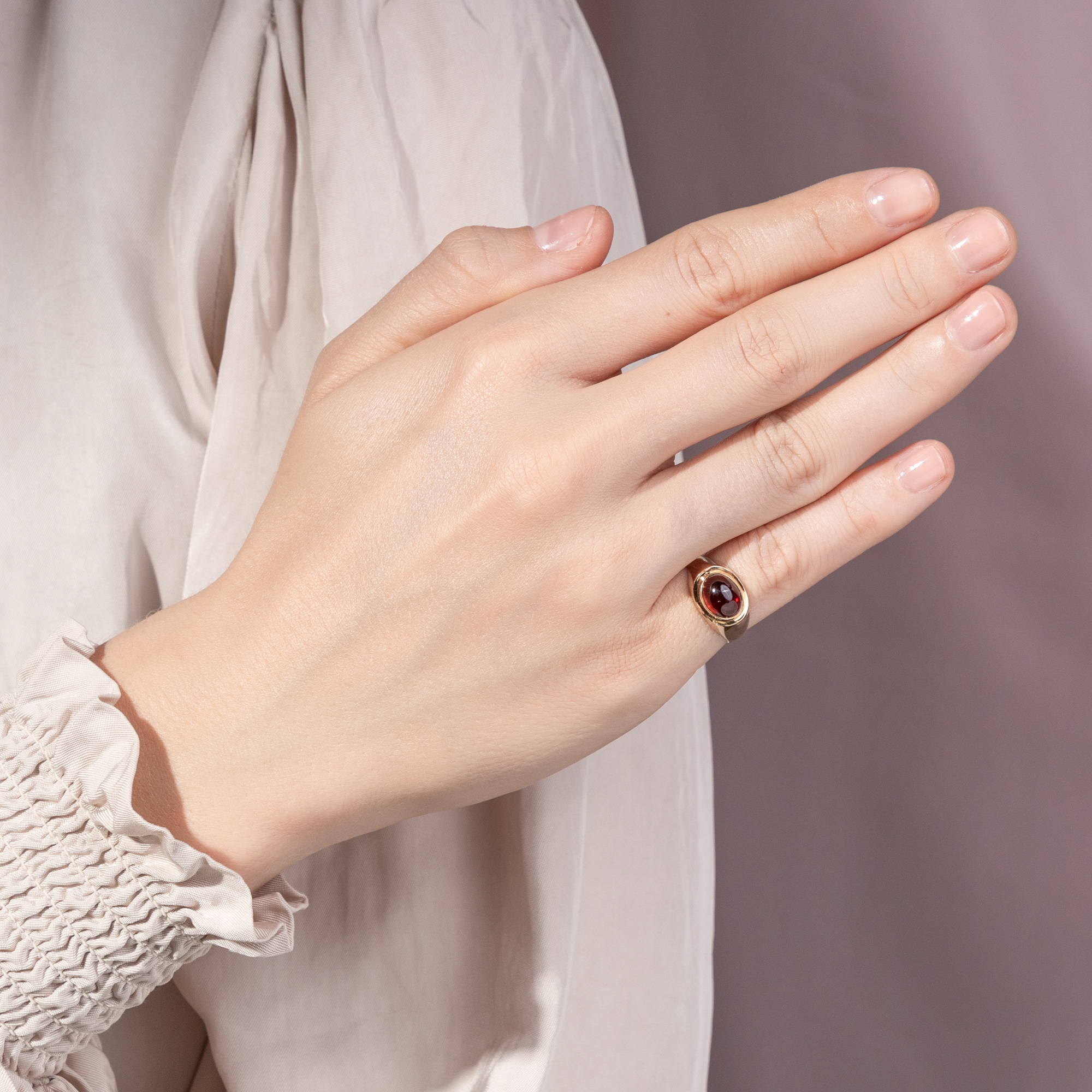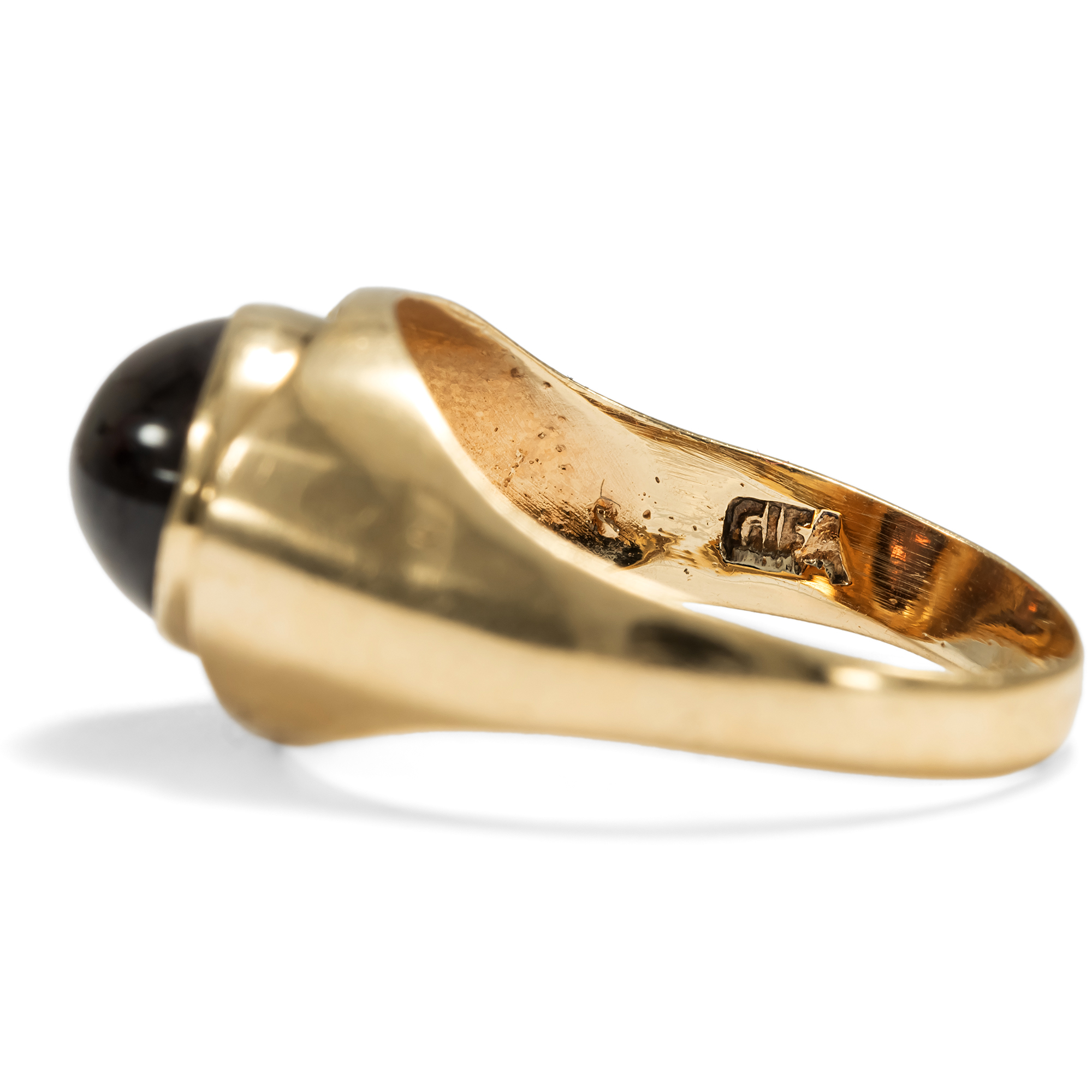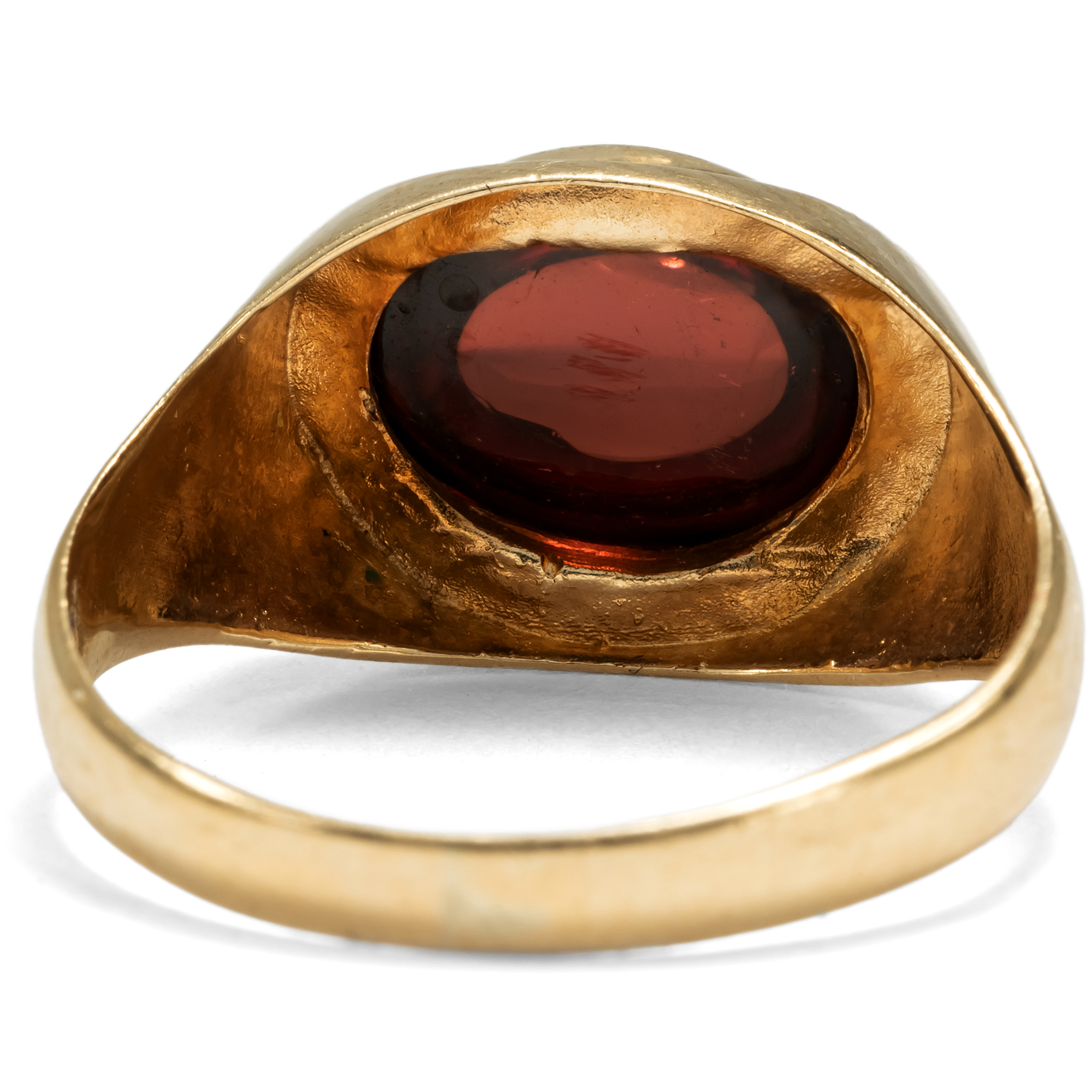 Antiker Unisex-Ring aus rötlichem Gold mit Granat, Deutschland um 1900