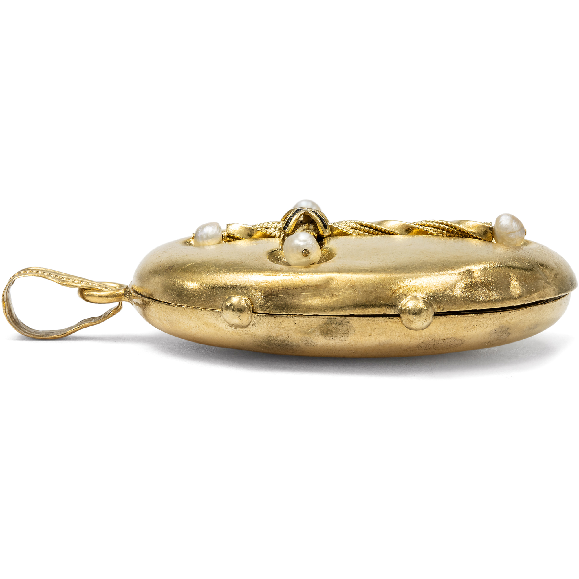 Antikes Medaillon aus Gold & Perlen, um 1870