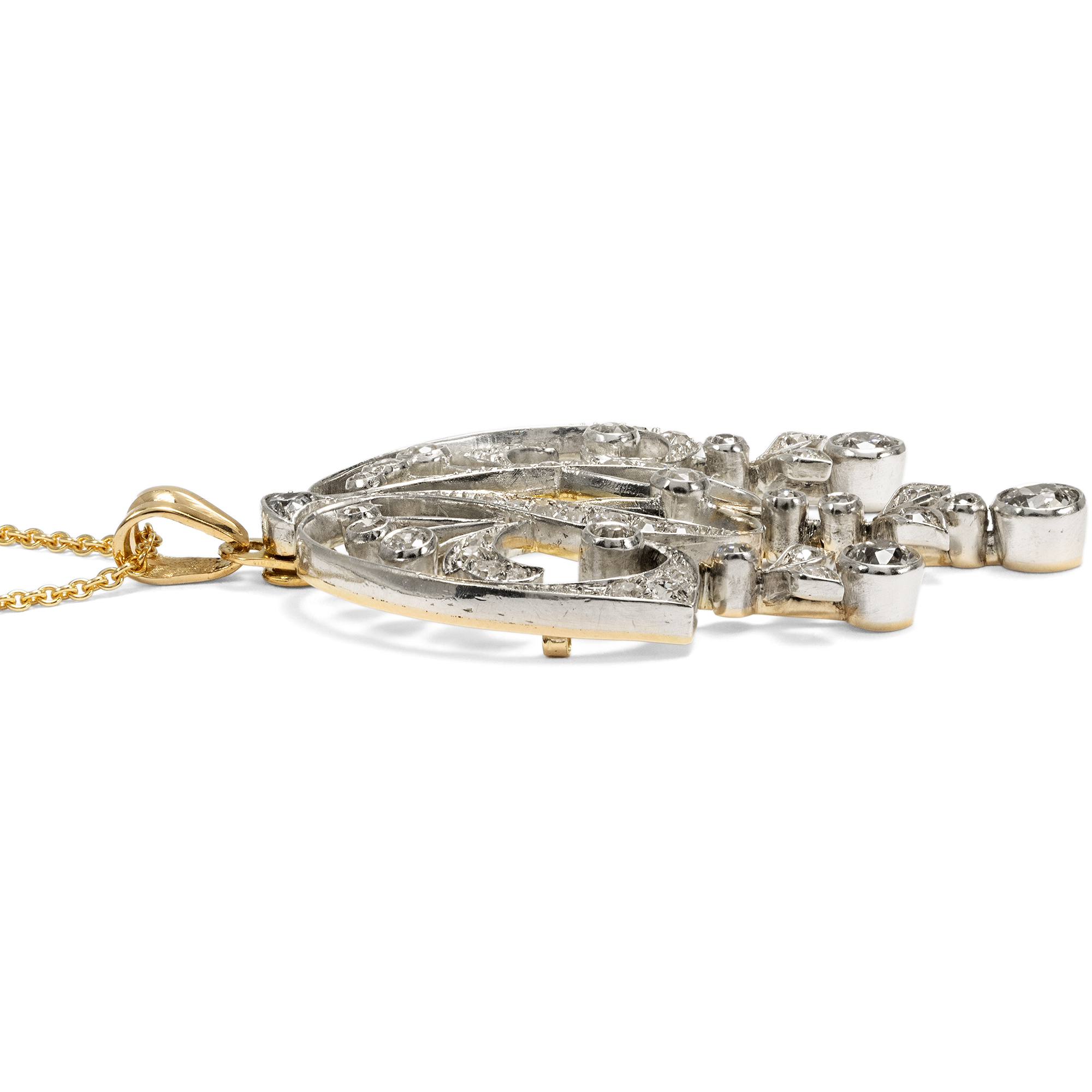 Elegante Anhänger-Brosche mit Diamanten in Silber auf Gold, Wien um 1905
