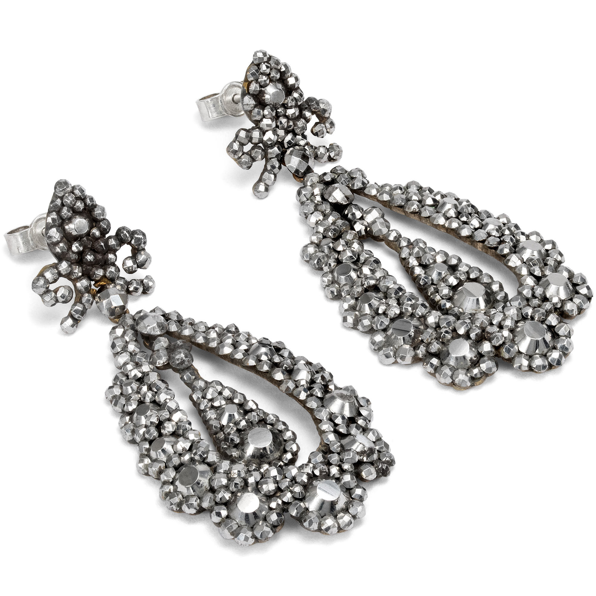 Elegante „Cut Steel“-Ohrringe des Klassizismus, um 1820