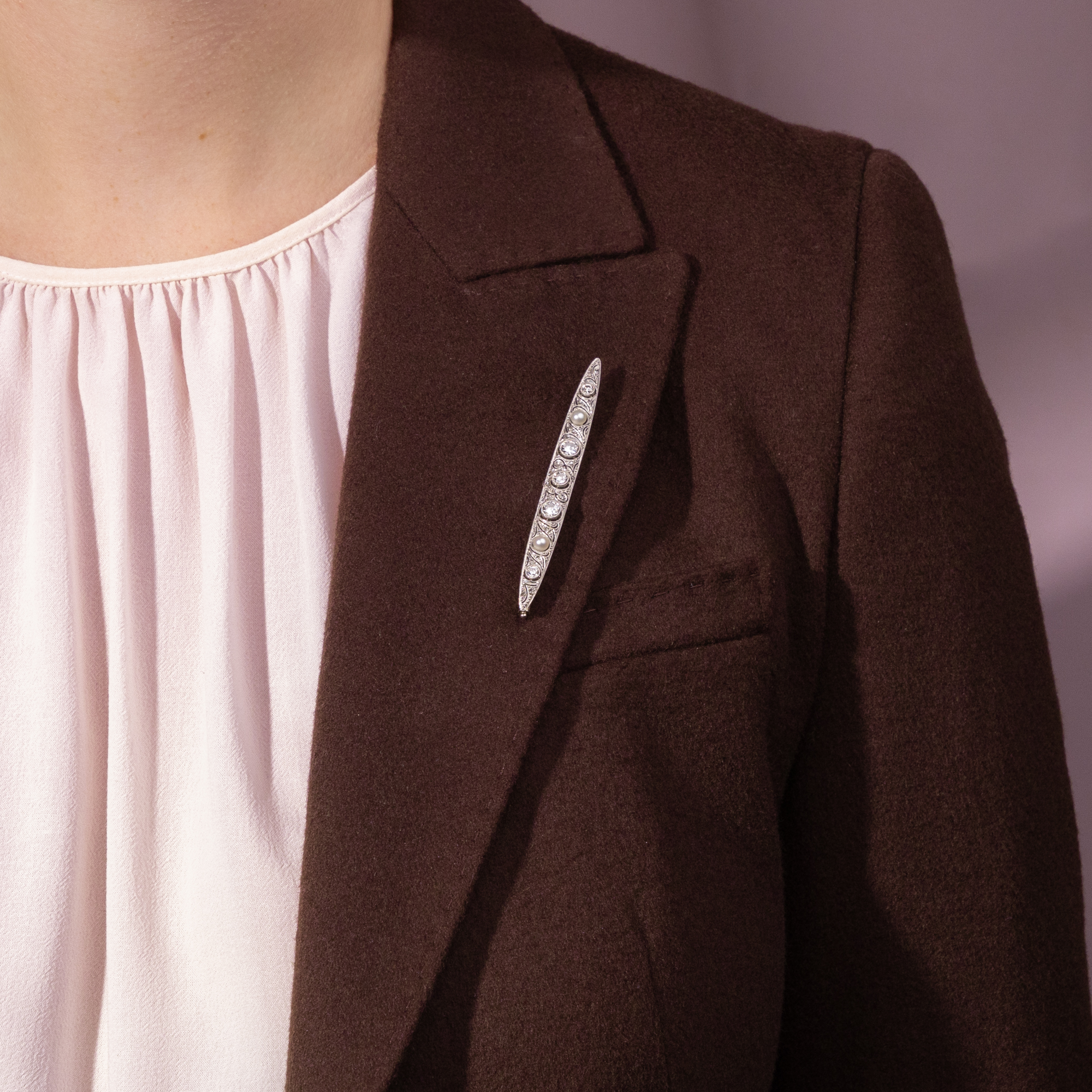 Elegante Stabnadel mit Naturperlen & Diamanten in Weißgold & Platin, um 1925
