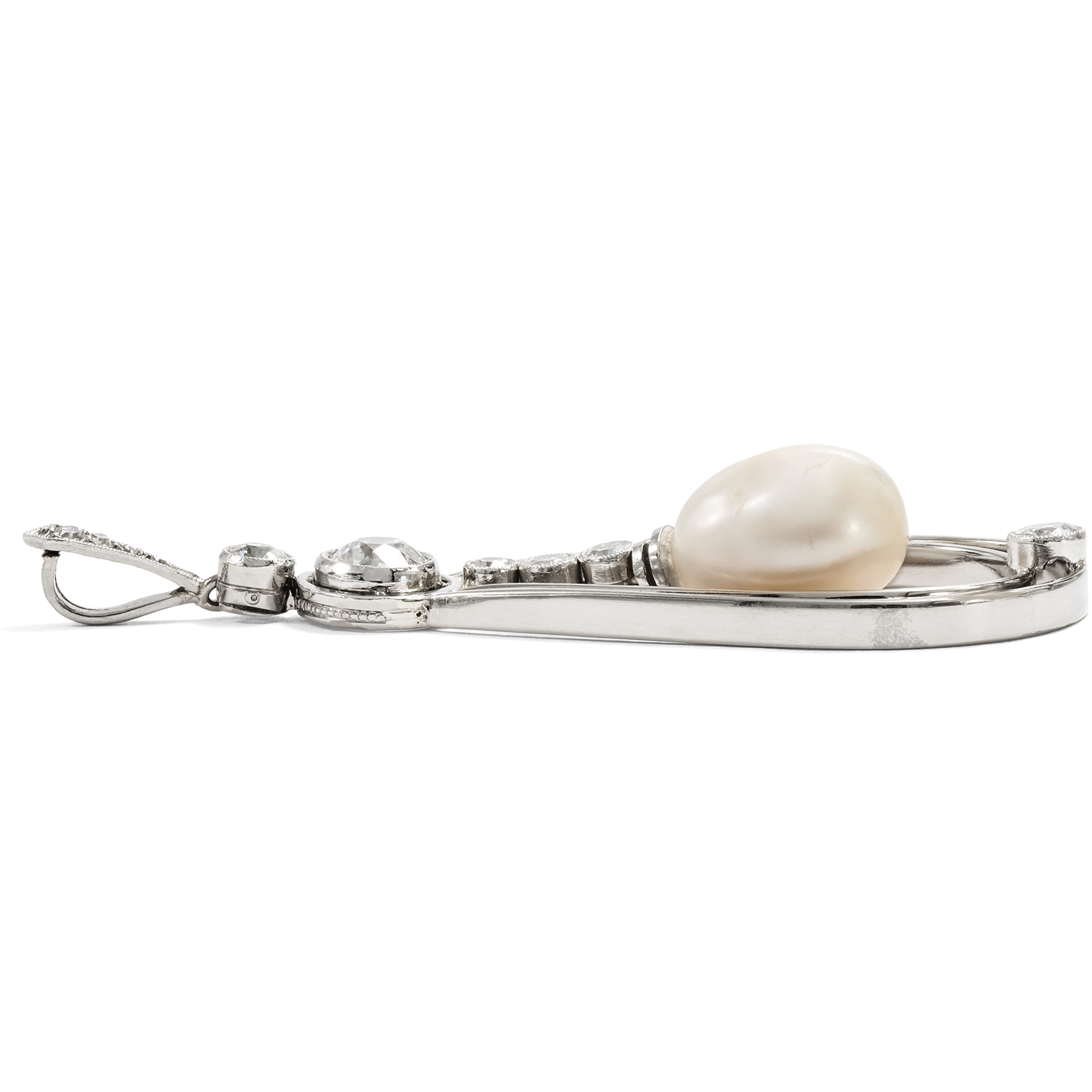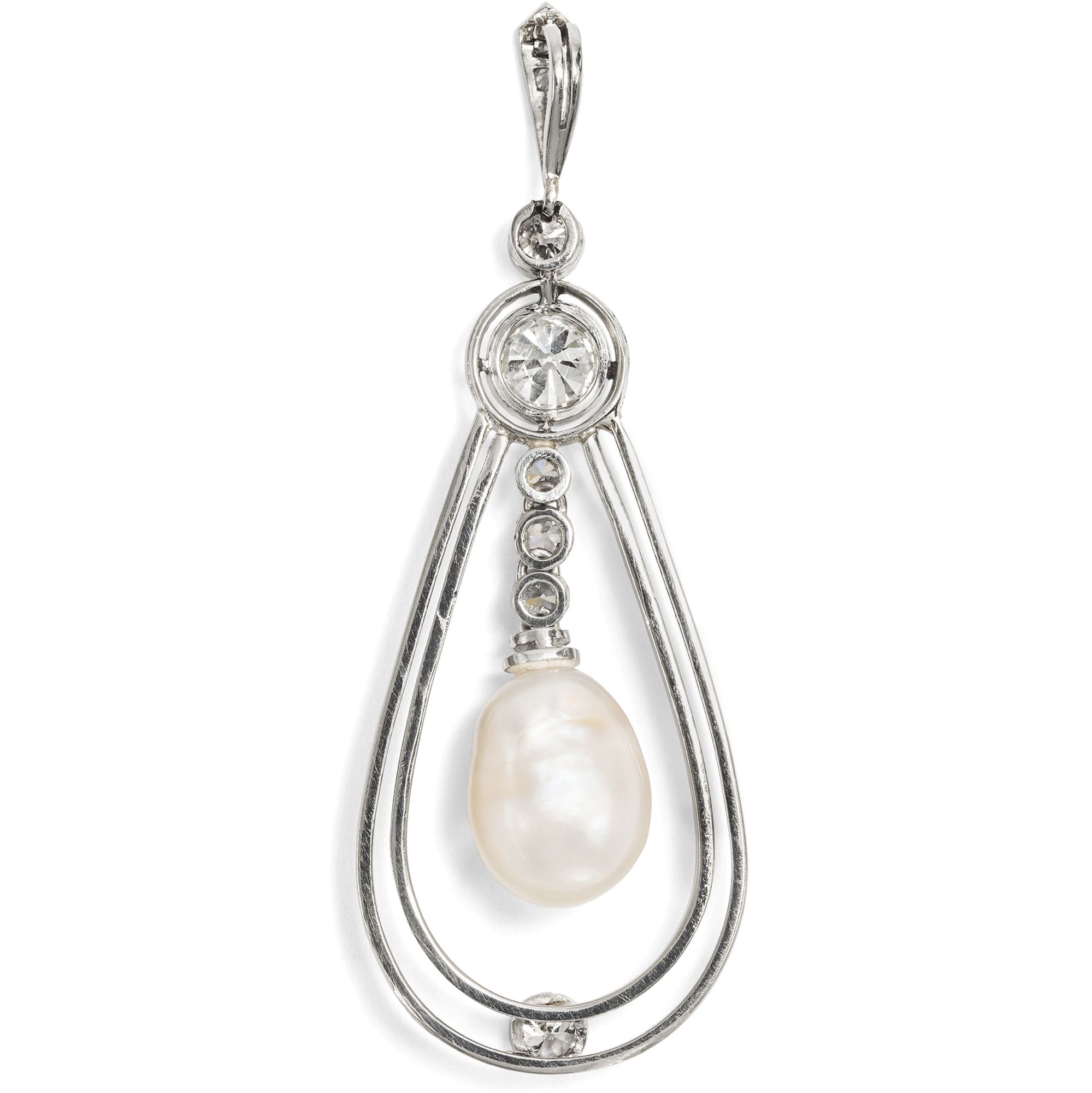 Eleganter Anhänger mit Diamanten & Naturperle in Weißgold, um 1925