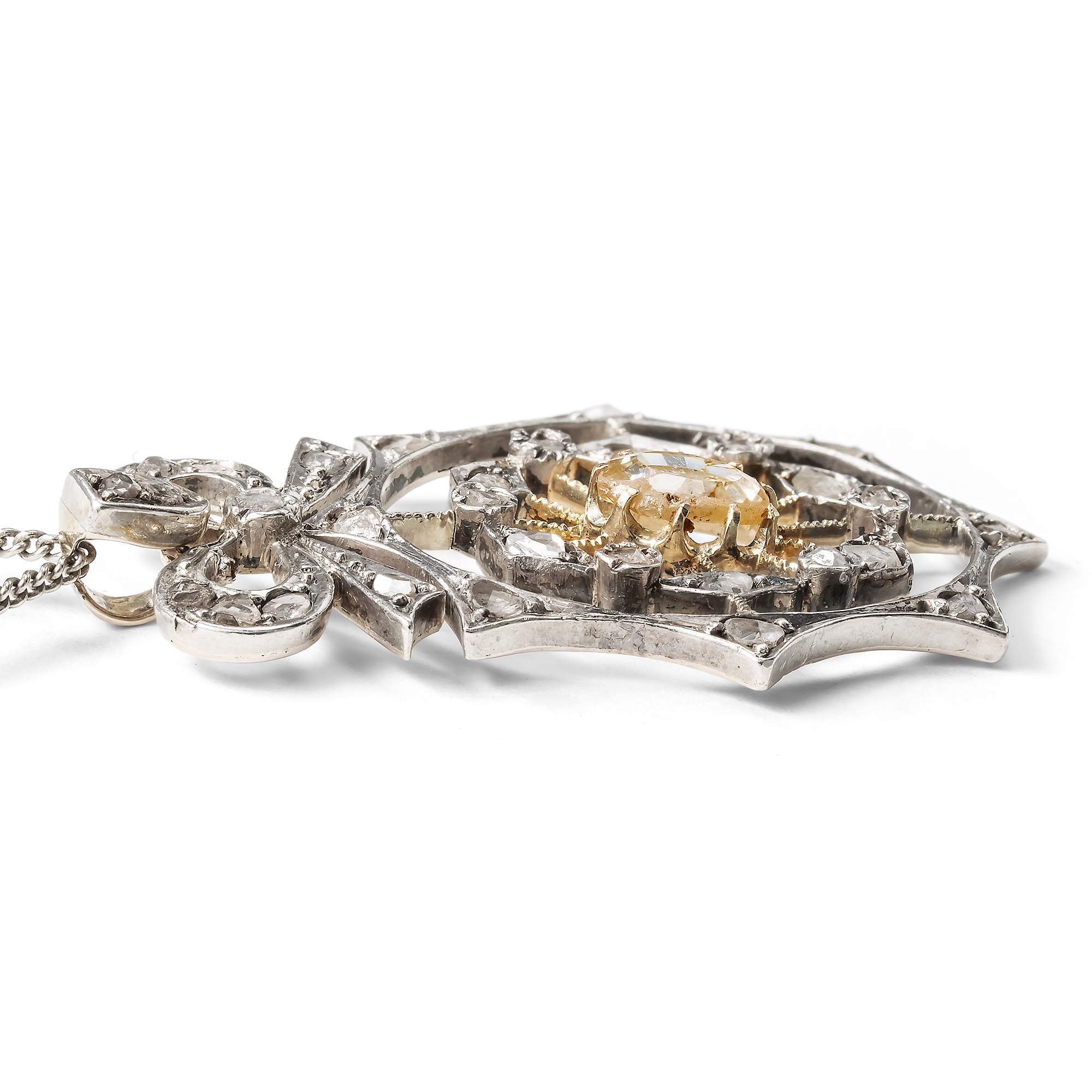 Eleganter Anhänger mit ungewöhnlichen Diamanten in Silber auf Gold, um 1905