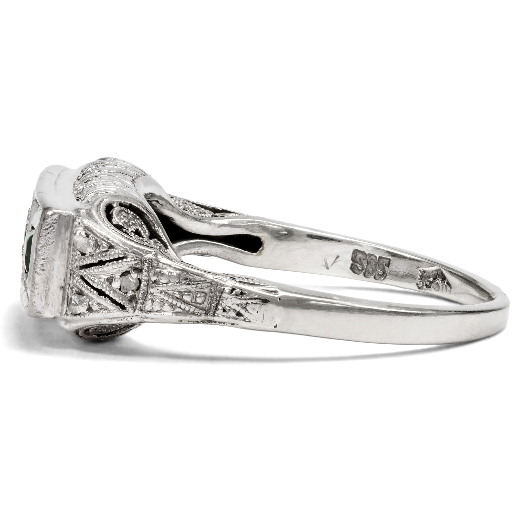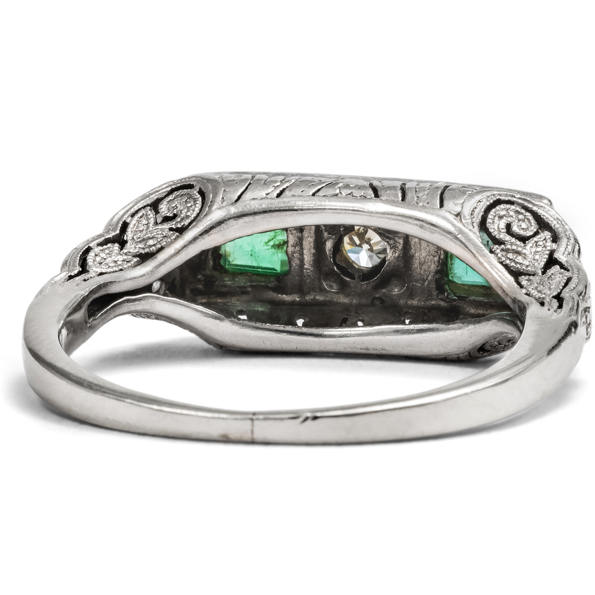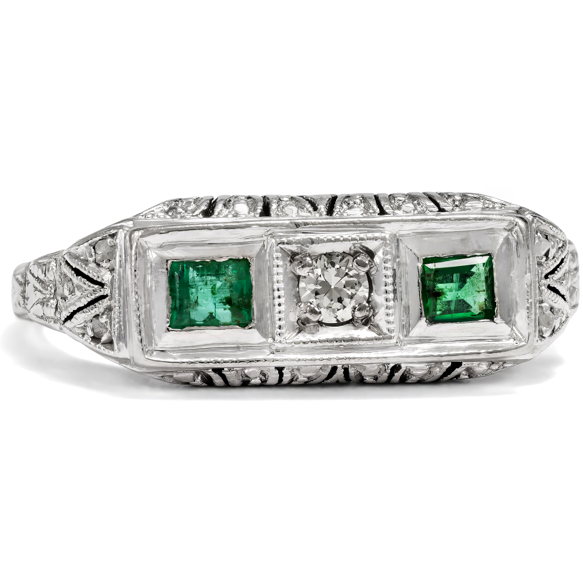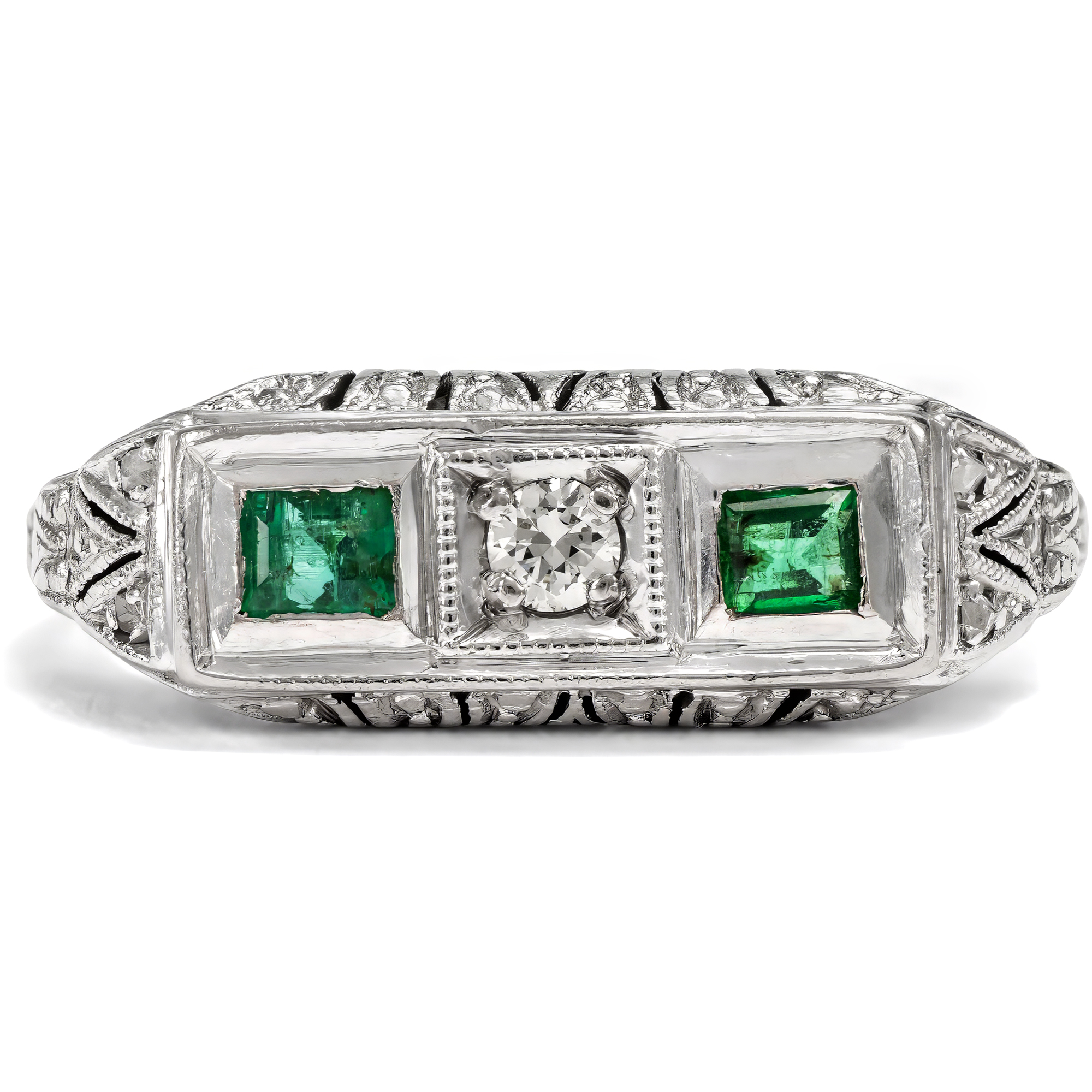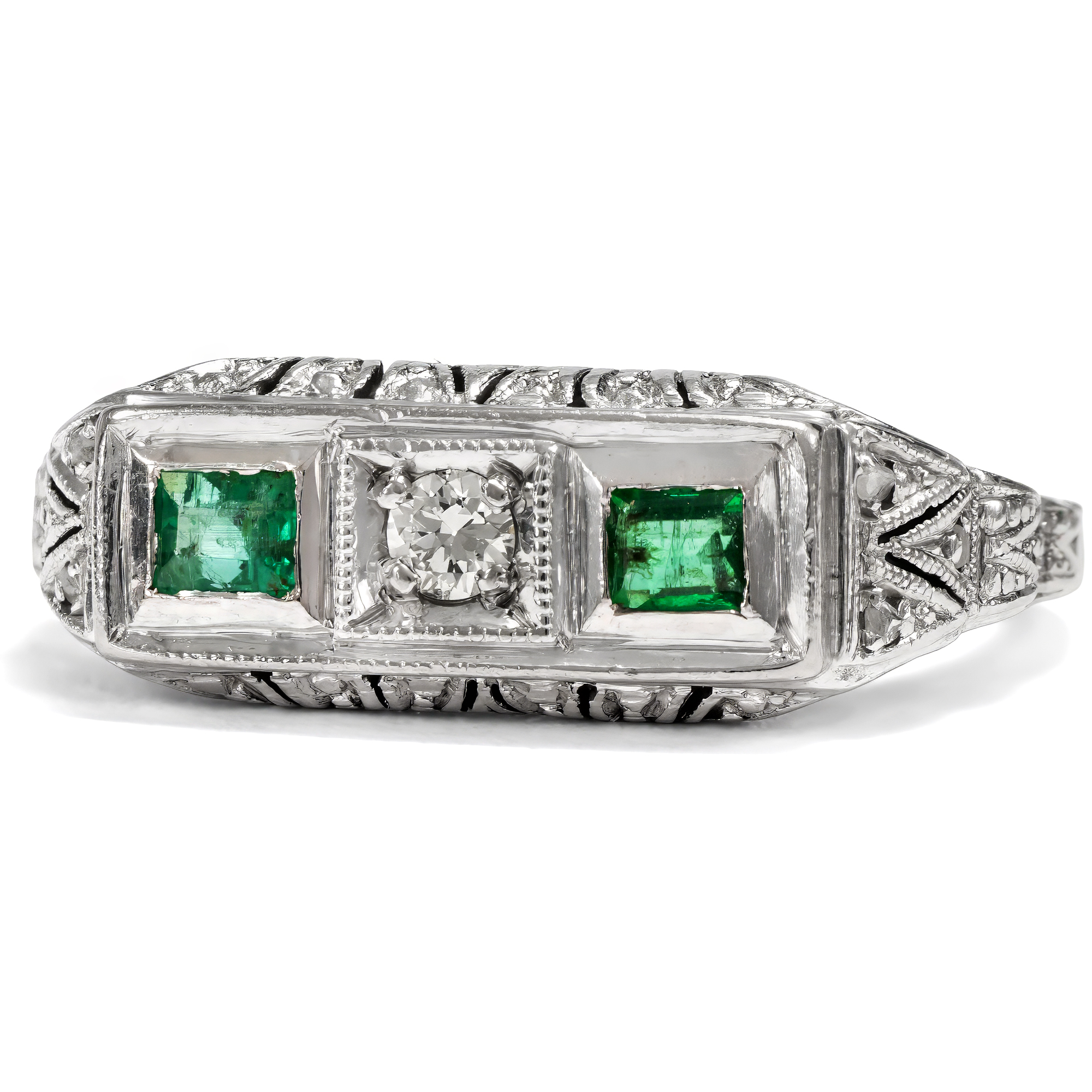Eleganter Art Déco Ring mit Diamant & Smaragden Weißgold, wohl USA um 1930
