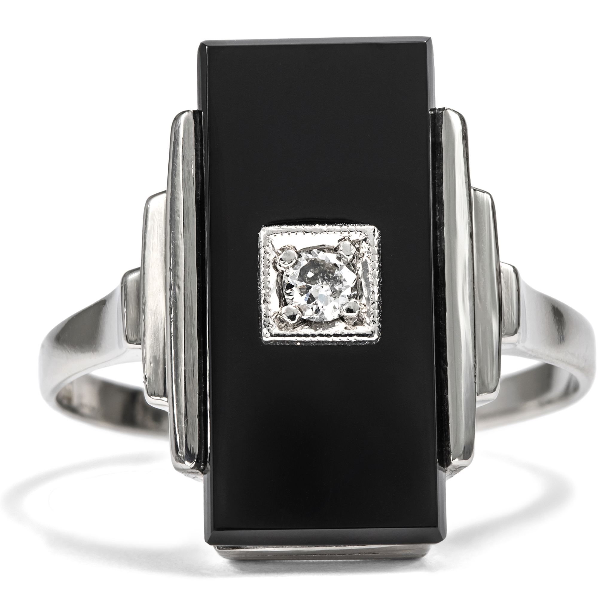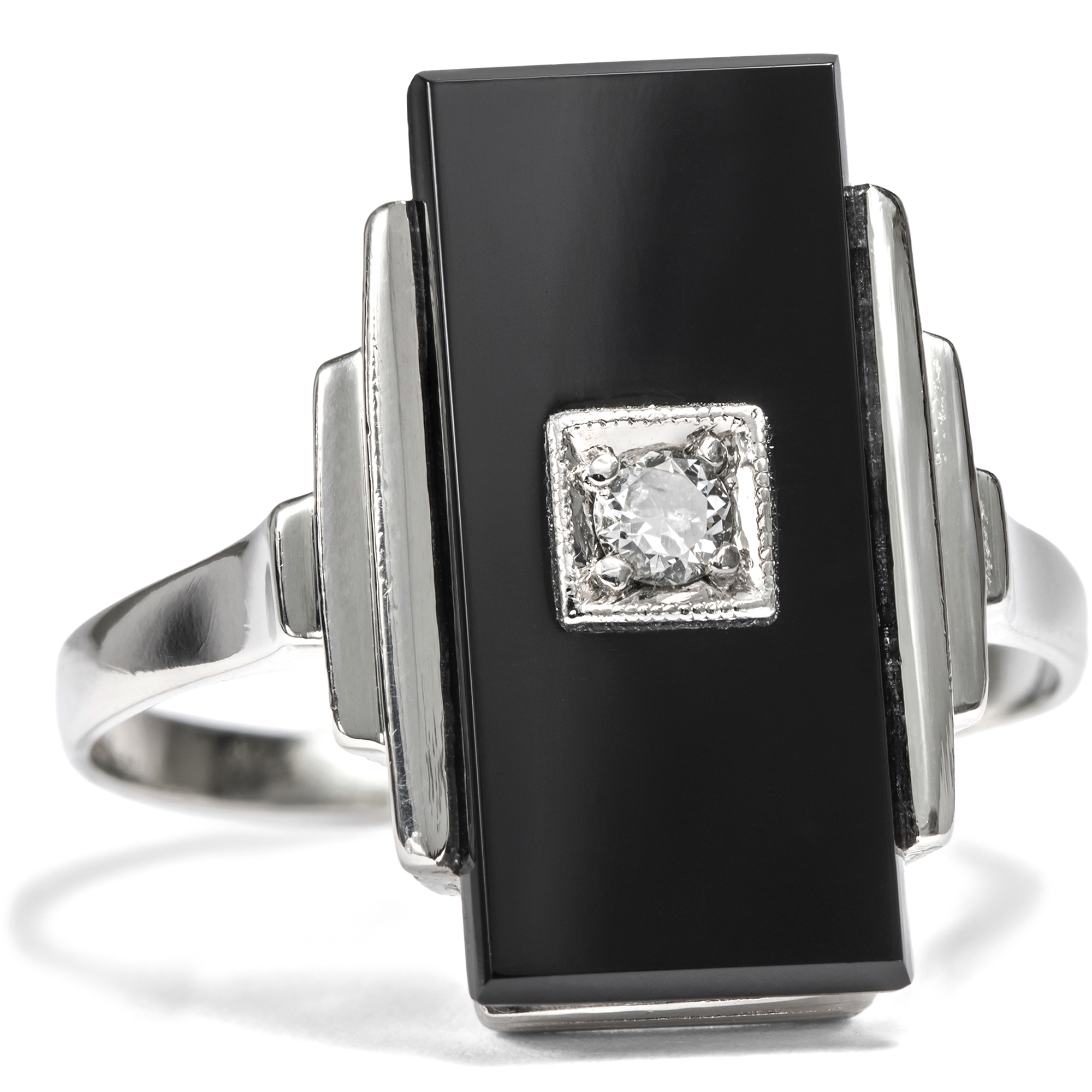Eleganter Art Déco-Ring mit Onyx & Diamant in Weißgold, Deutschland um 1930