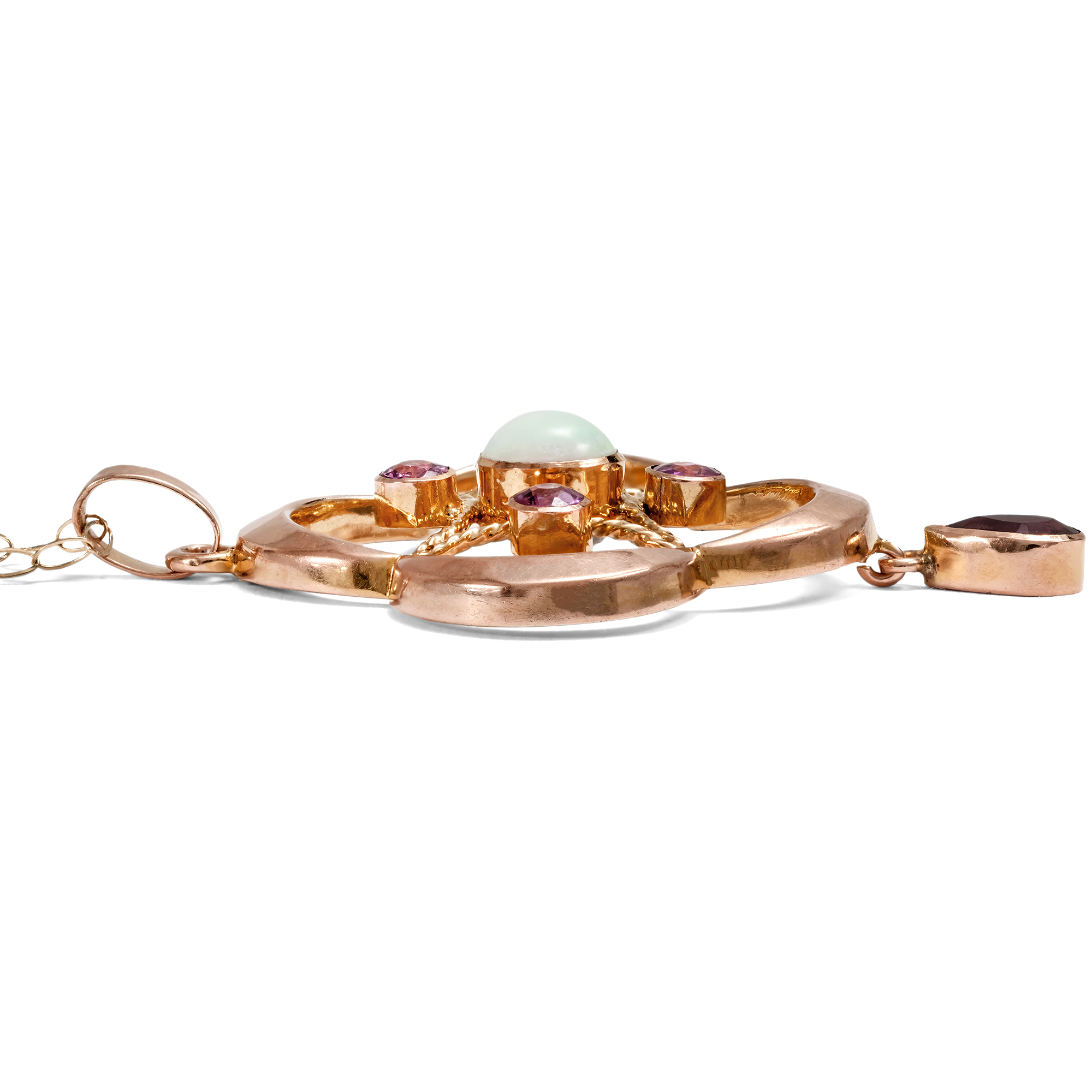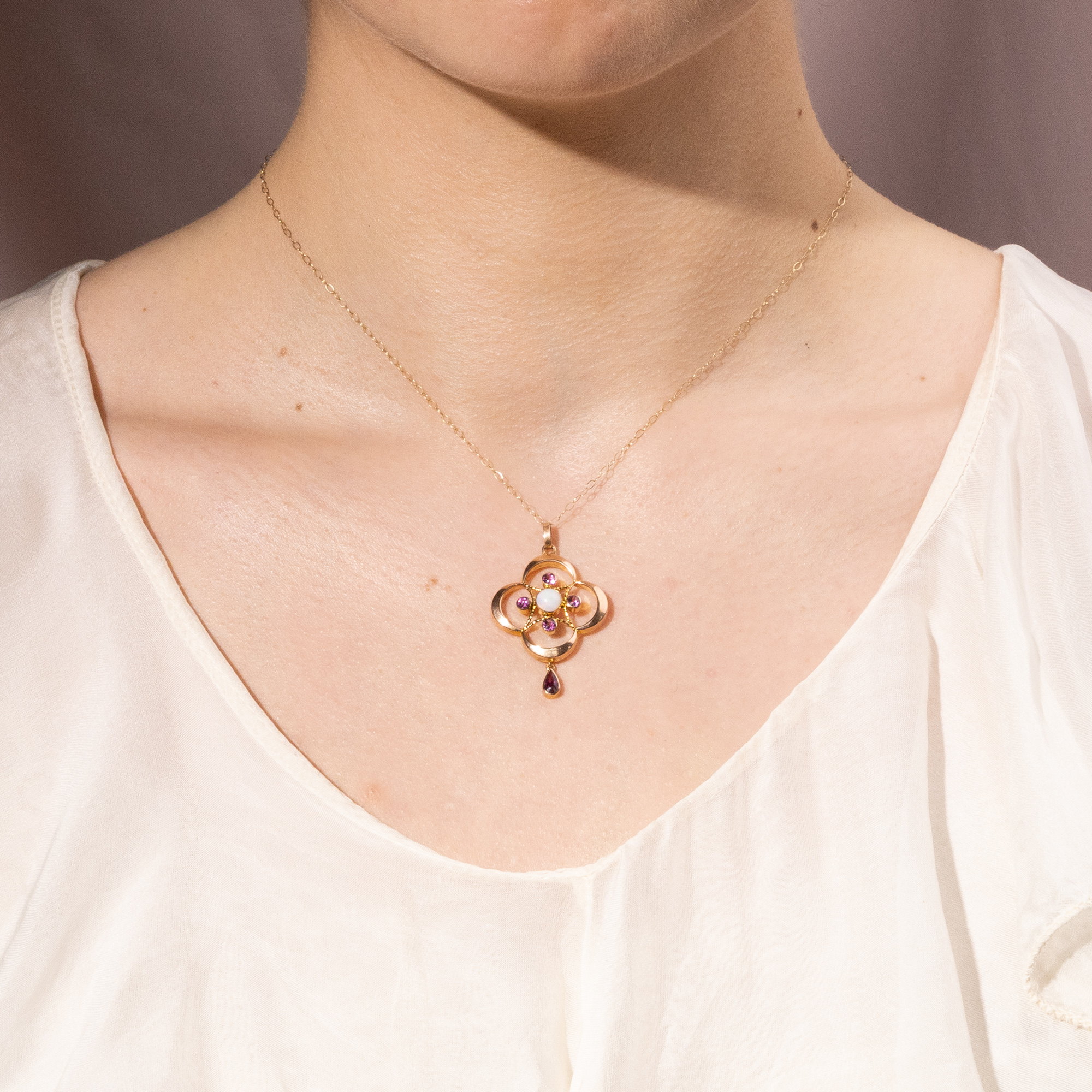 Eleganter Anhänger mit Opal & Granaten in Gold, Großbritannien um 1905