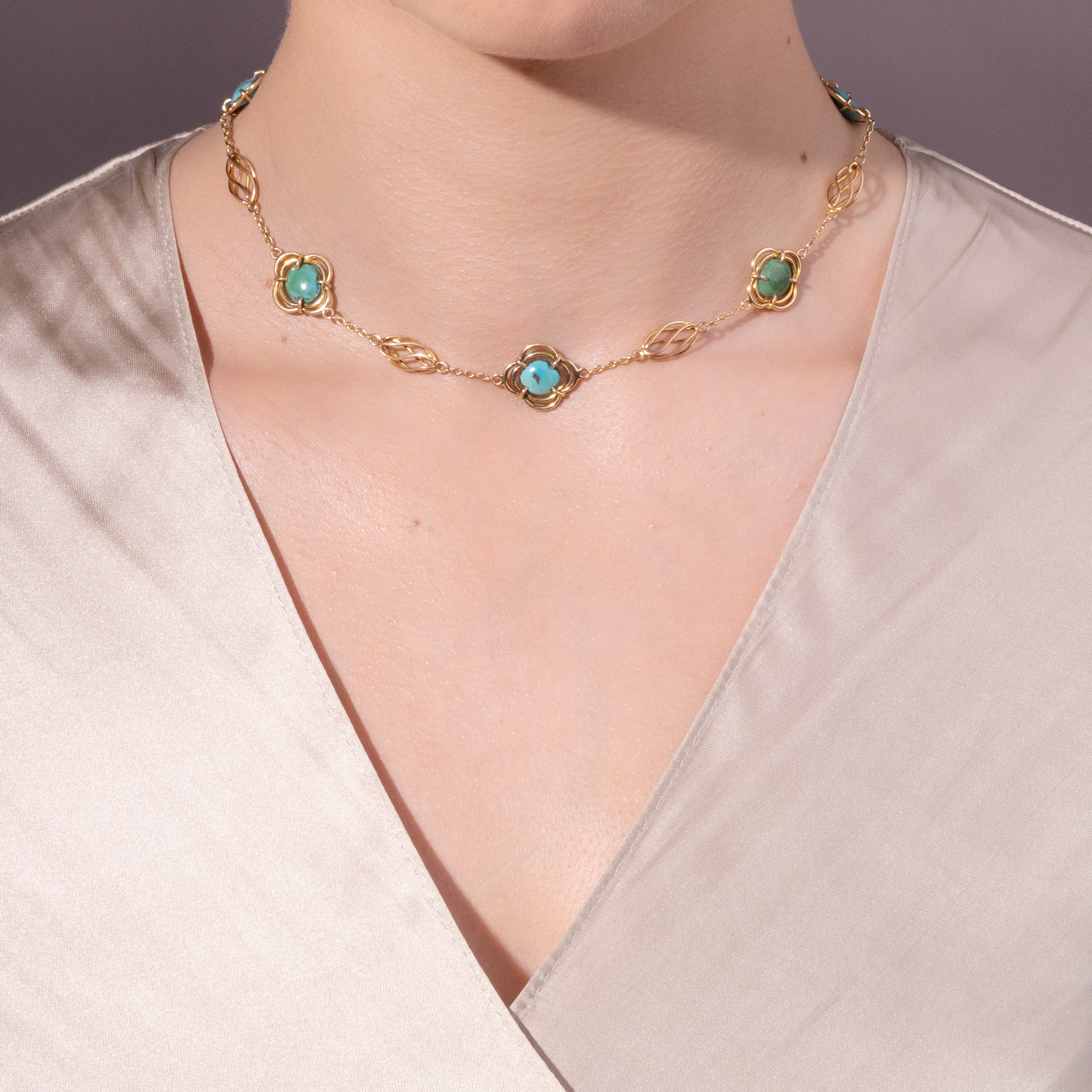 Elegantes Jugendstil-Collier mit Türkisen & Gold, Großbritannien um 1905