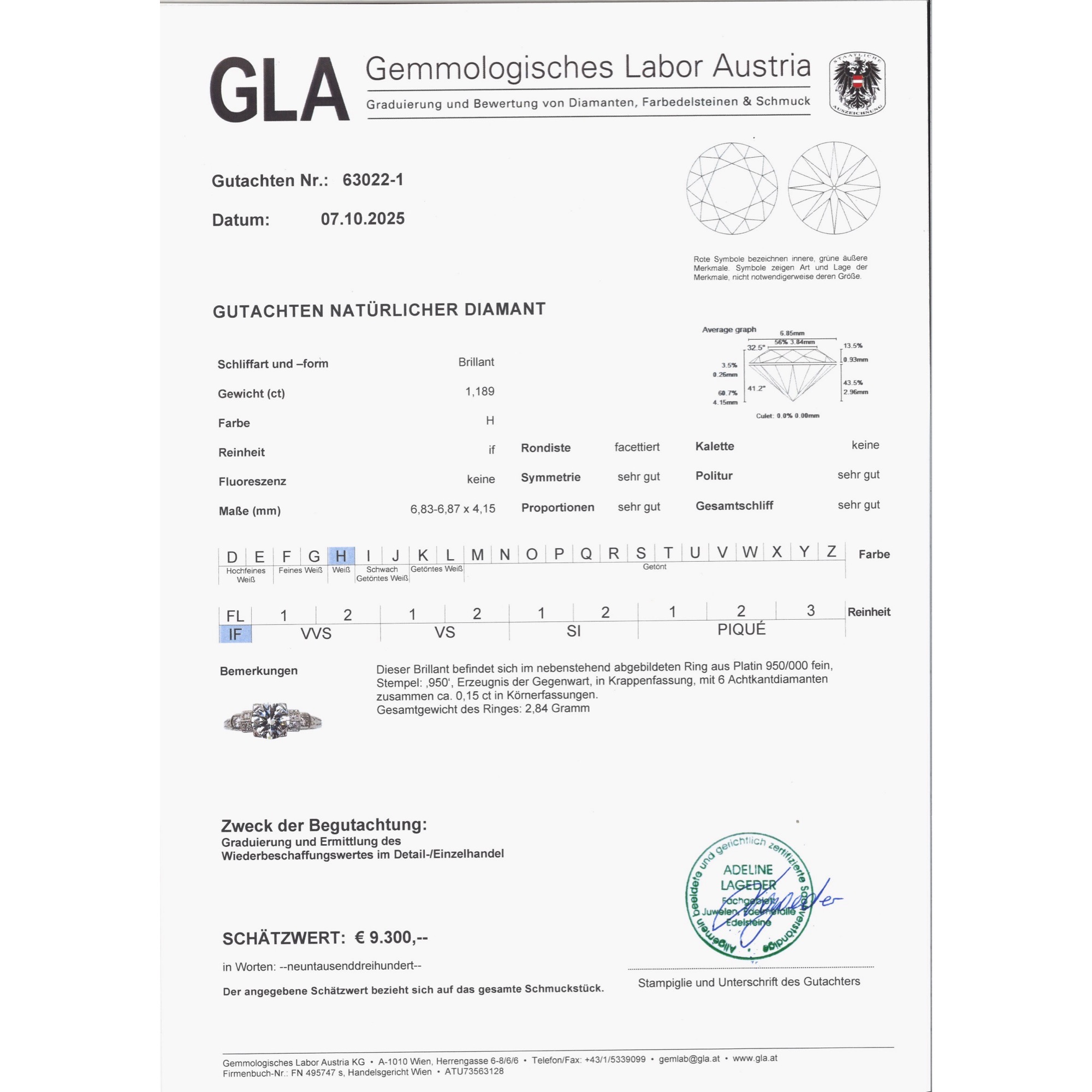 Eleganter Platinring mit lupenreinem 1,18 ct Brillanten aus unserer Werkstatt