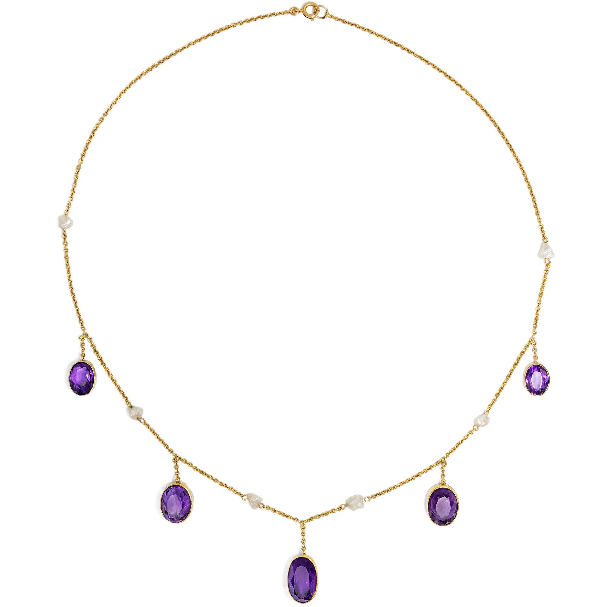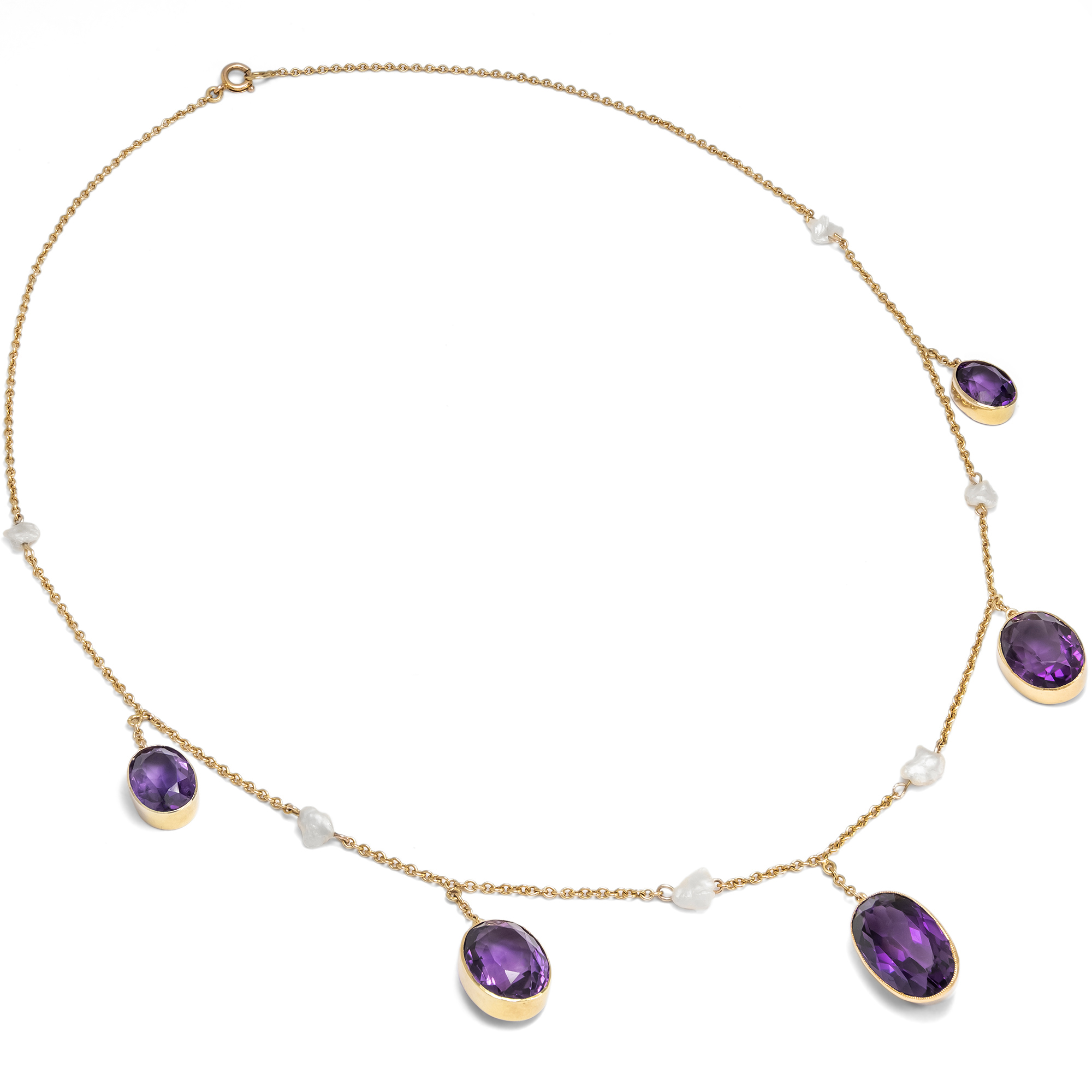 Elegantes antikes Collier mit Amethysten & Flussperlen in Gold, Großbritannien um 1905