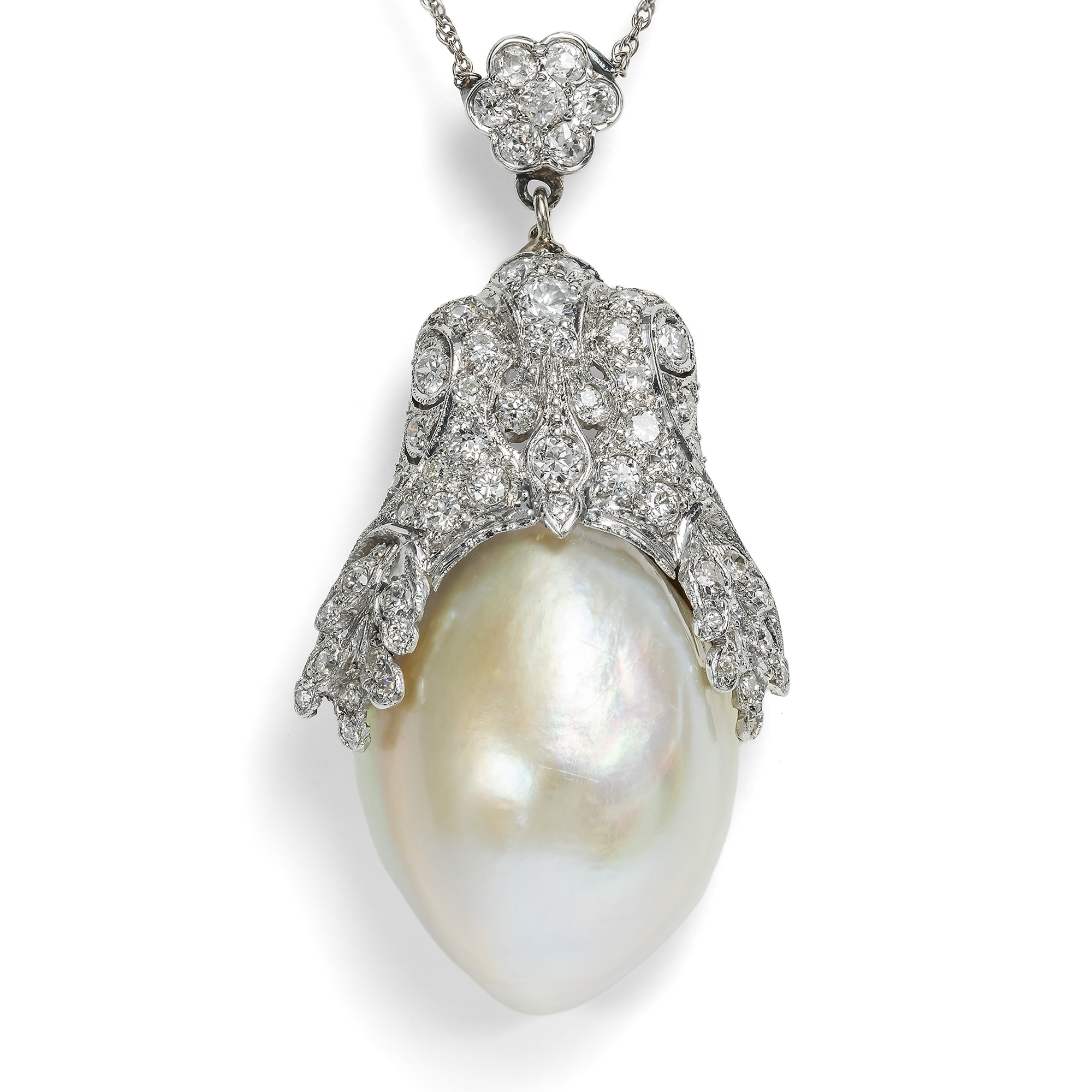 Elegantes Collier mit Mabé-Perle & Diamanten, um 1930 & später