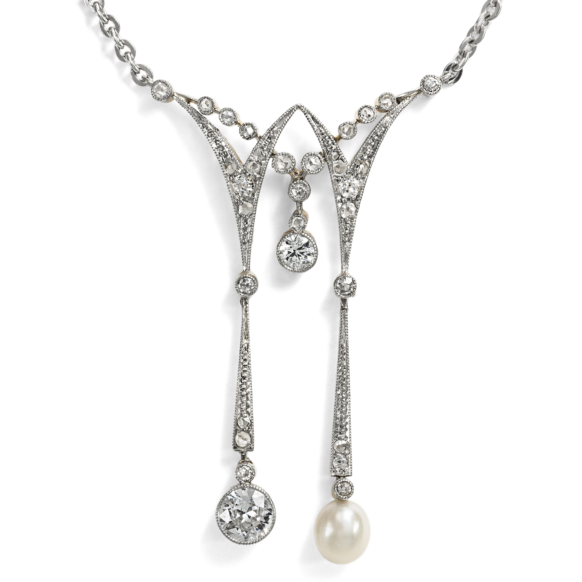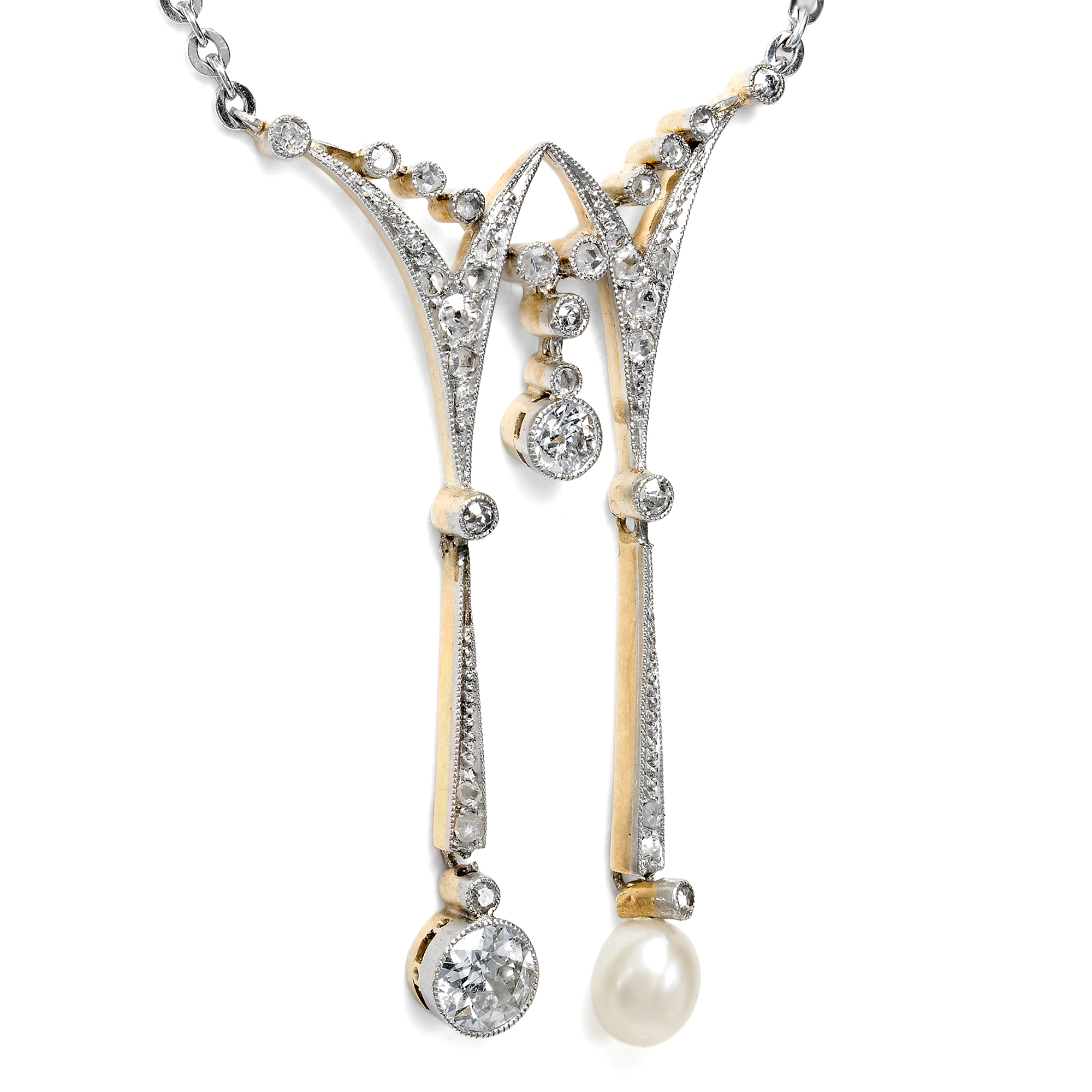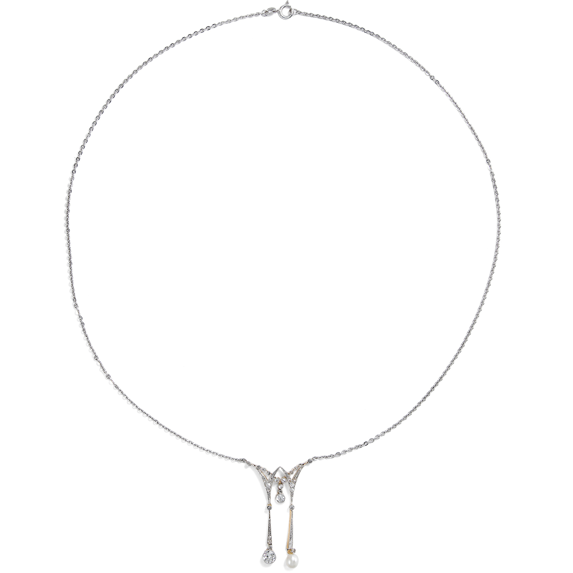 Elegantes Negligé-Collier mit Naturperle & Diamanten, um 1910