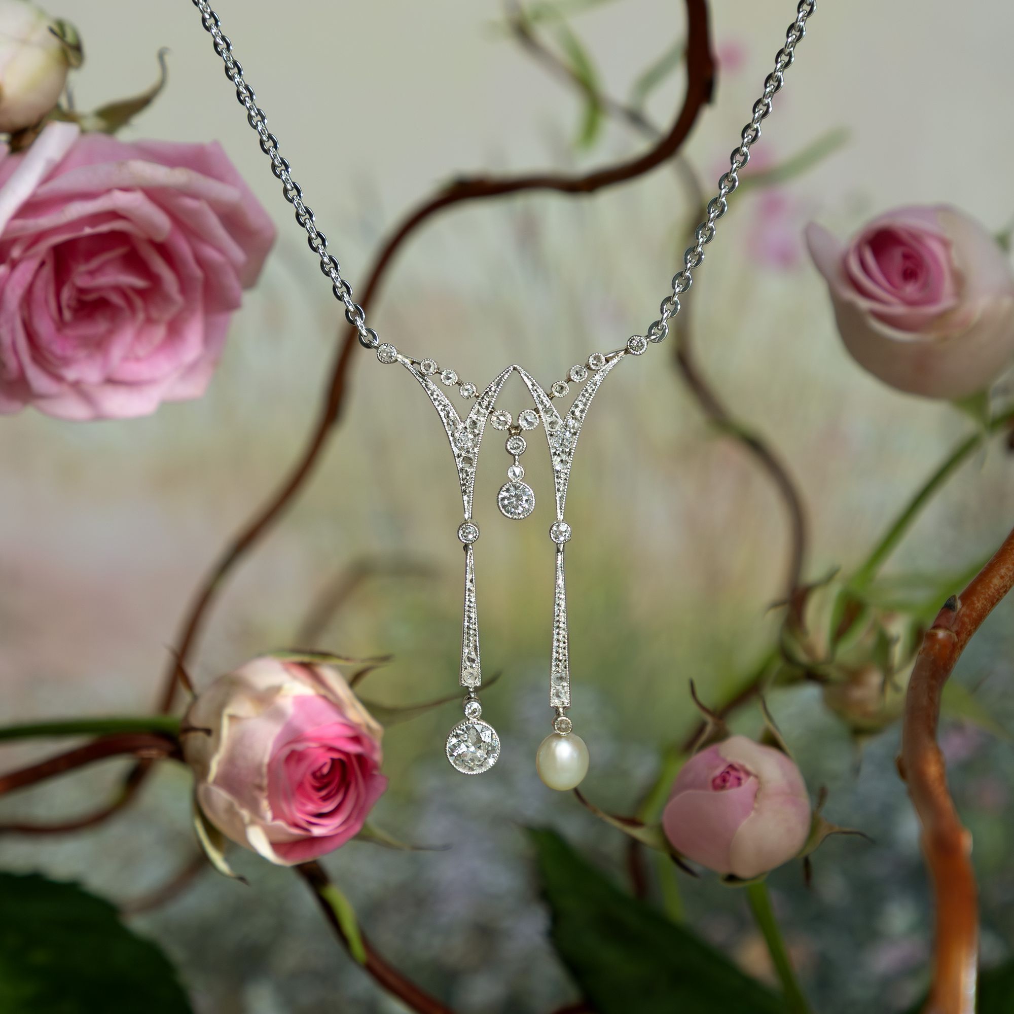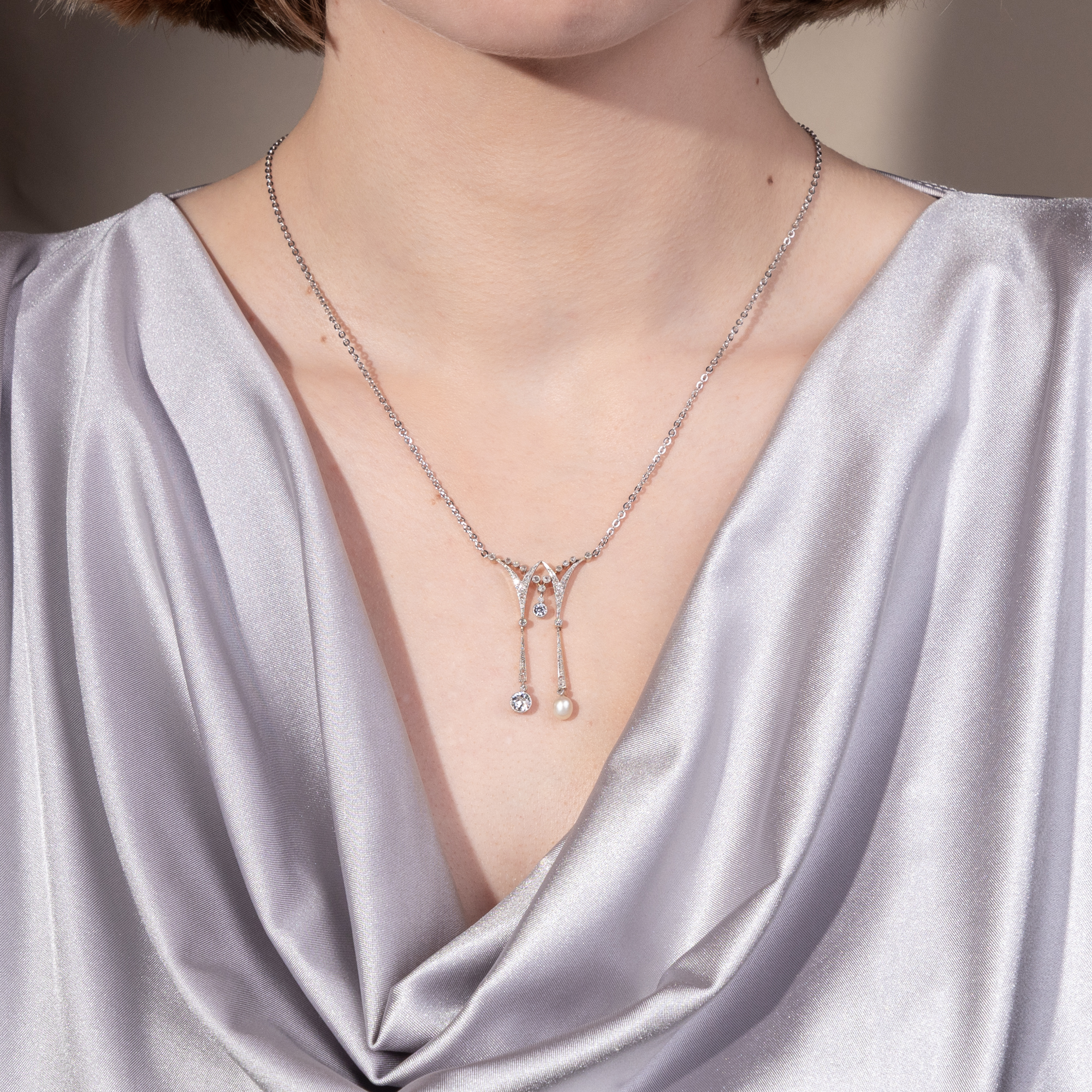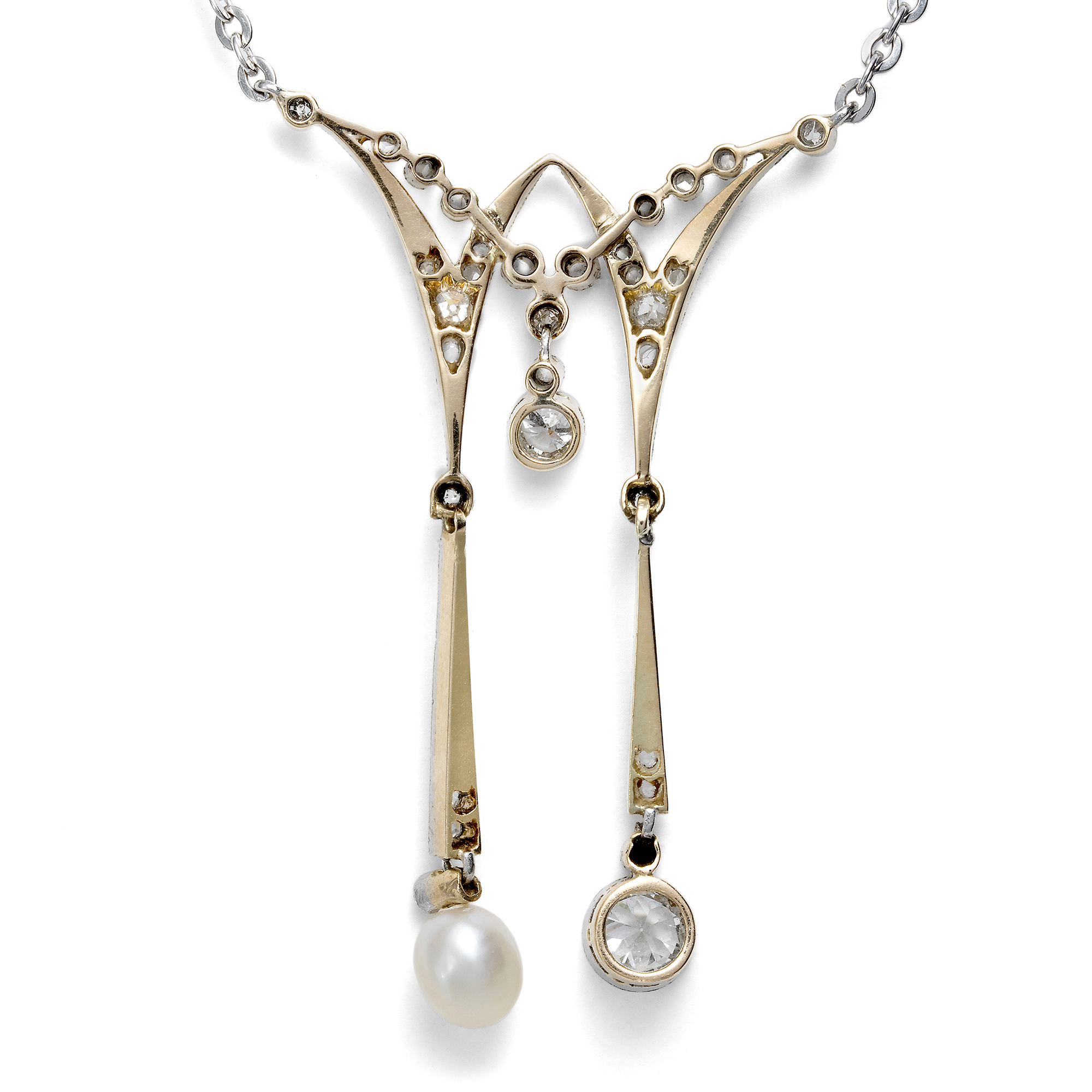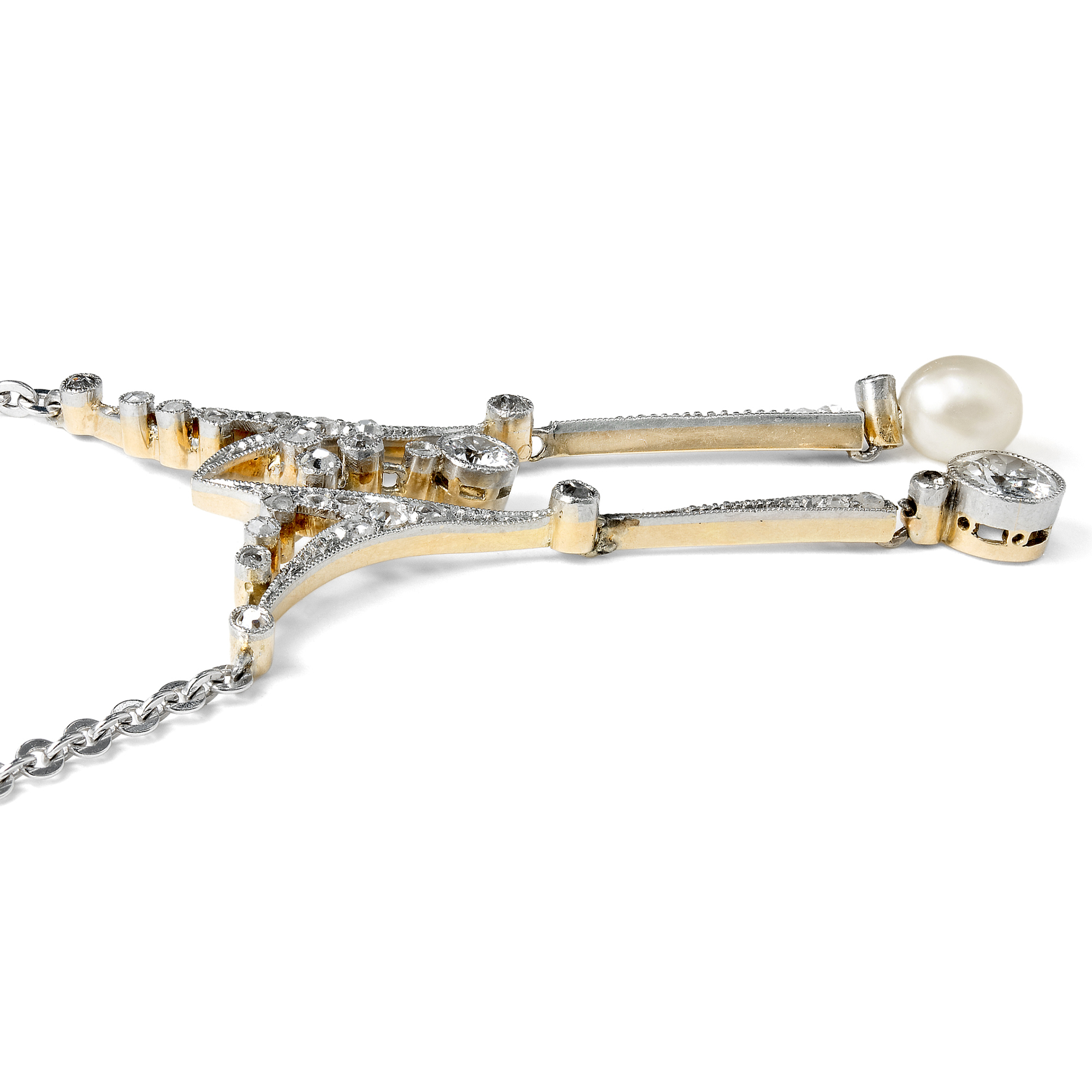 Elegantes Negligé-Collier mit Naturperle & Diamanten, um 1910