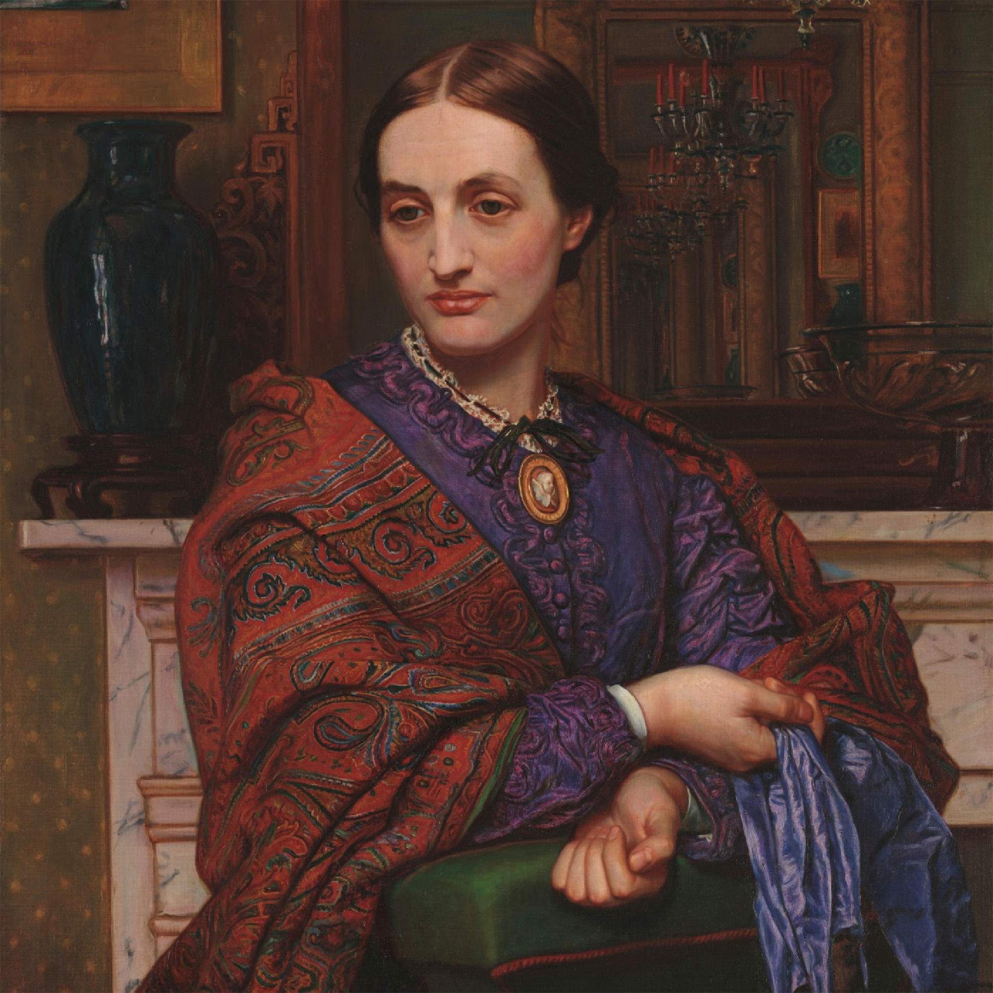 Die hier vorliegende, qualitätvolle Brosche präsentiert in einem Rahmen aus hochkarätigem Gold eine besonders plastisch geschnittene Muschelgemme. Der breite Rahmen trägt reiche Ornamente, die nach antiken Vorbildern gestaltet sind: Wir sehen eine Folge von Kettchen und gedrehten Kordeln, die dem Rahmen sein schönes Spiel von Licht und Schatten verleihen. Die Gemme zeigt einen Engel, einen Putto mit Flügelchen. Die Schnitzarbeit verlässt die Ebene des Reliefs und wirkt vielmehr wie eine plastische Skulptur. Das Weiß der Darstellung wölbt sich über den braunen Grund, und der Kopf des Engels ist beinahe freiplastisch gearbeitet. Von links und rechts bietet er unterschiedliche, detailreiche Ansichten und ist doch zart und schön in seinen kindlichen Formen. Diese einzigartige Verbindung von Antike und Christentum ist typisch für Schmuck im Archäologischen Stil aus Rom. Hier, in der Stadt der Kaiser und der Päpste, konnte das eine kaum ohne das andere bestehen. Offensichtlich war diese Verbindung auch im 19. Jahrhundert noch so lebendig, dass die Besucher der Stadt gerade diese Verbindung als typisch für Rom empfanden und daher Schmuck mit diesen Motiven gern erwarben. Wie Broschen wie diese zu ihrer Entstehungszeit getragen wurden, zeigt das Portrait der Fanny Waugh Hunt, der Ehefrau des Malers William Holman Hunt, entstanden zwischen 1866 und 1868, heute im Toledo Museum of Art in den USA, vgl. hier. Das Gemälde hilft zudem, auch diese Brosche zu datieren.