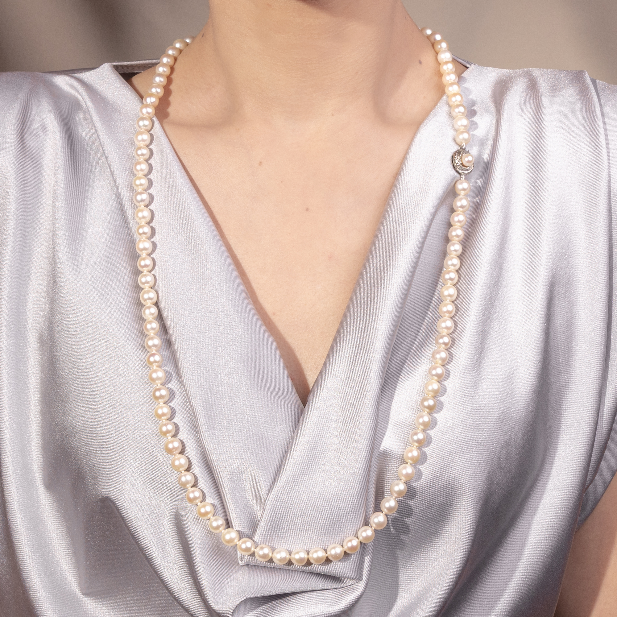 Feine Akoya-Perlenkette in Opera-Länge mit Weißgoldschließe, um 1975