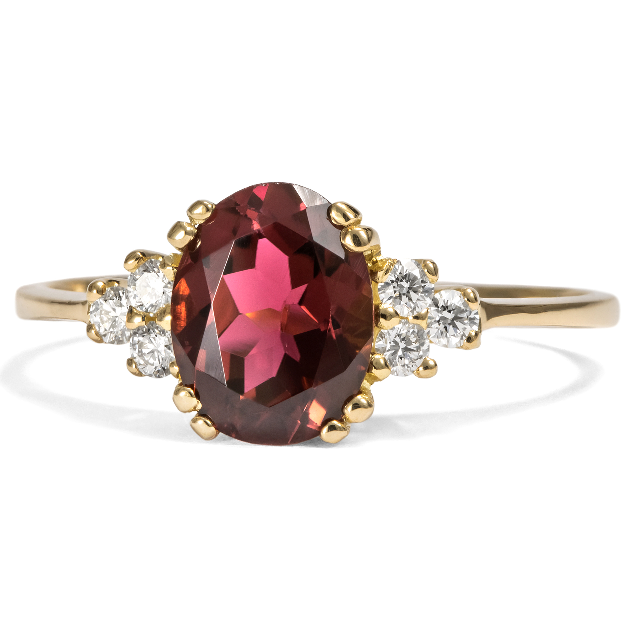 Feiner Ring mit rotem Turmalin & Diamanten in Gold aus unserer Werkstatt
