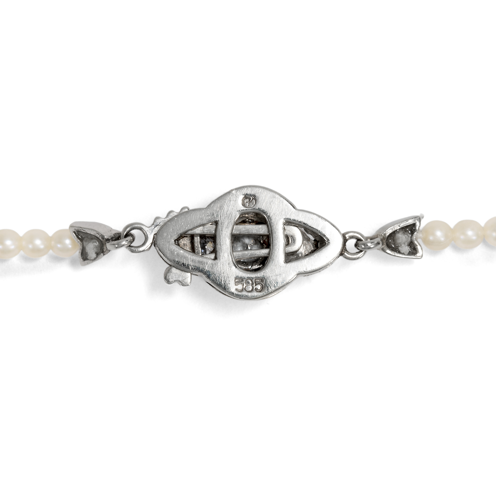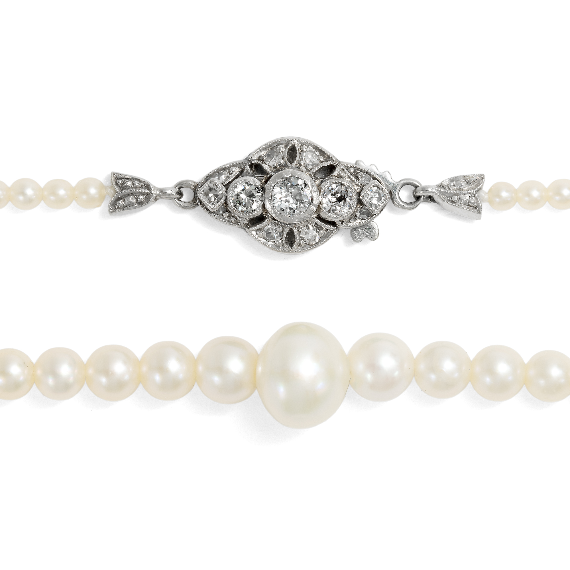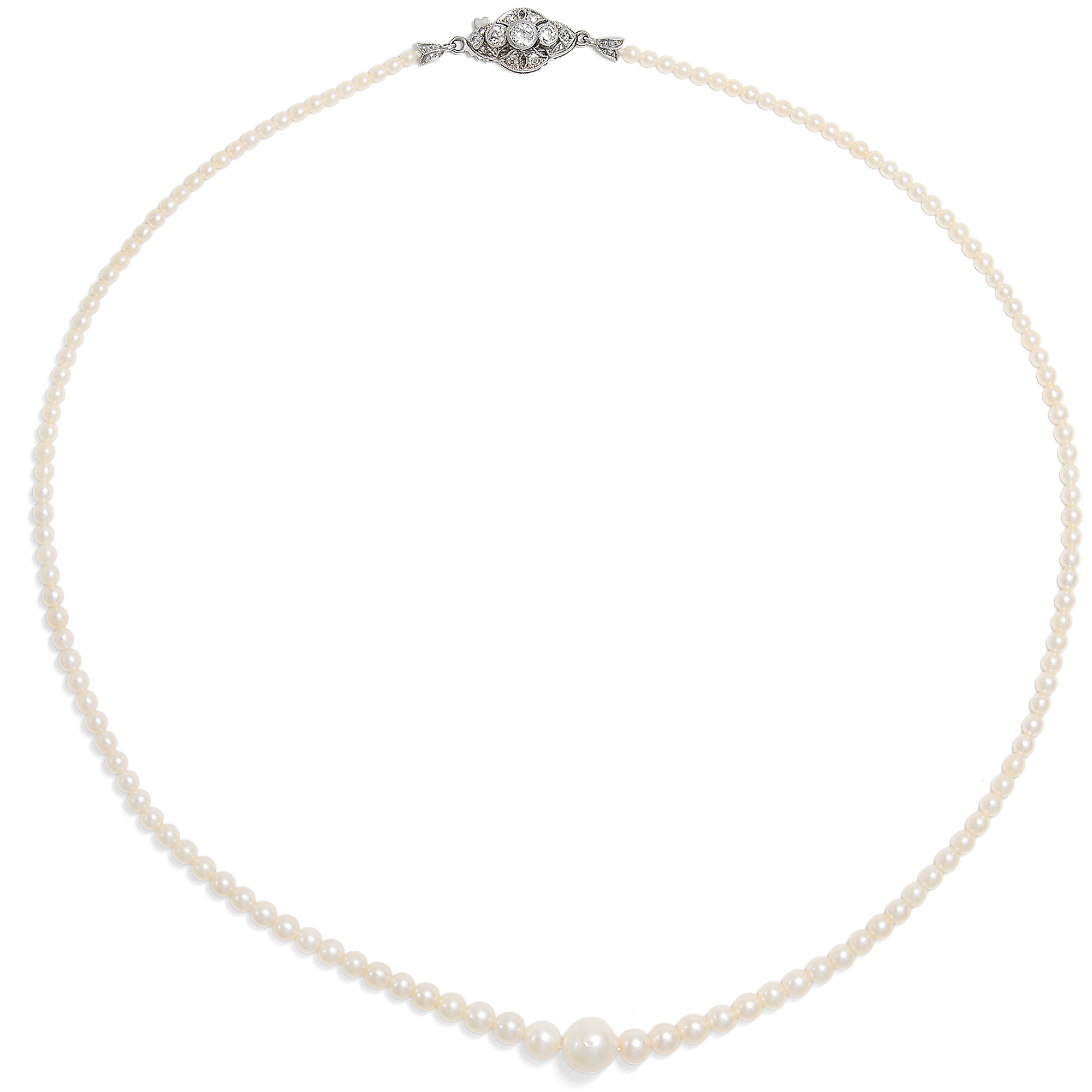 Feines Collier aus Naturperlen mit Schließe aus Diamanten in Weißgold, um 1925