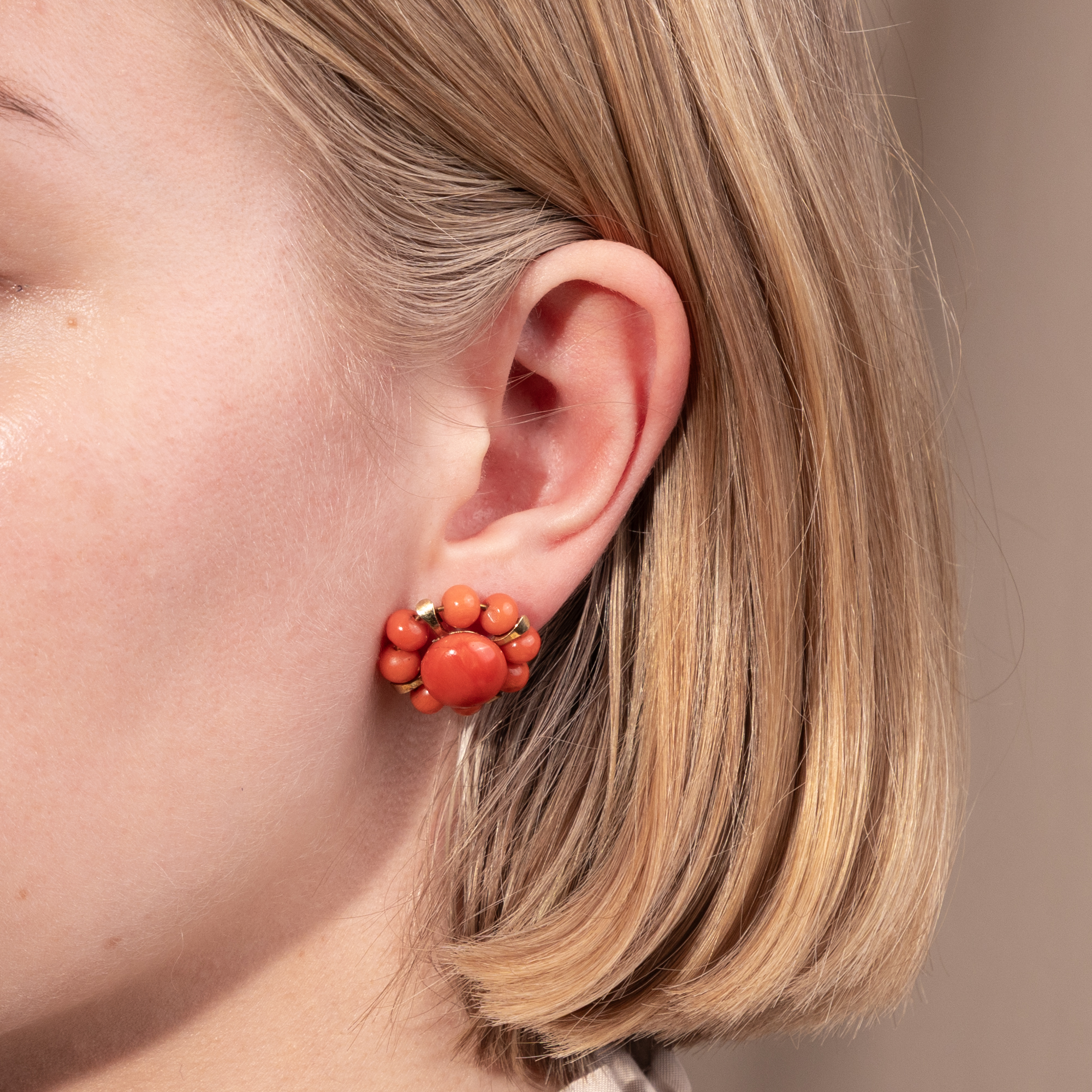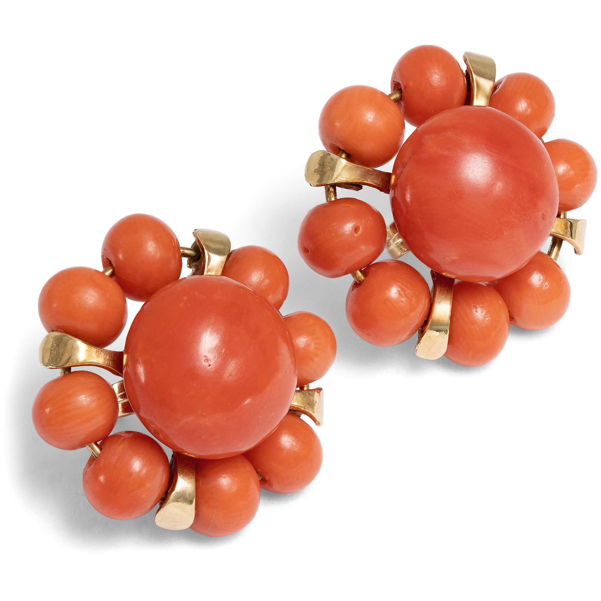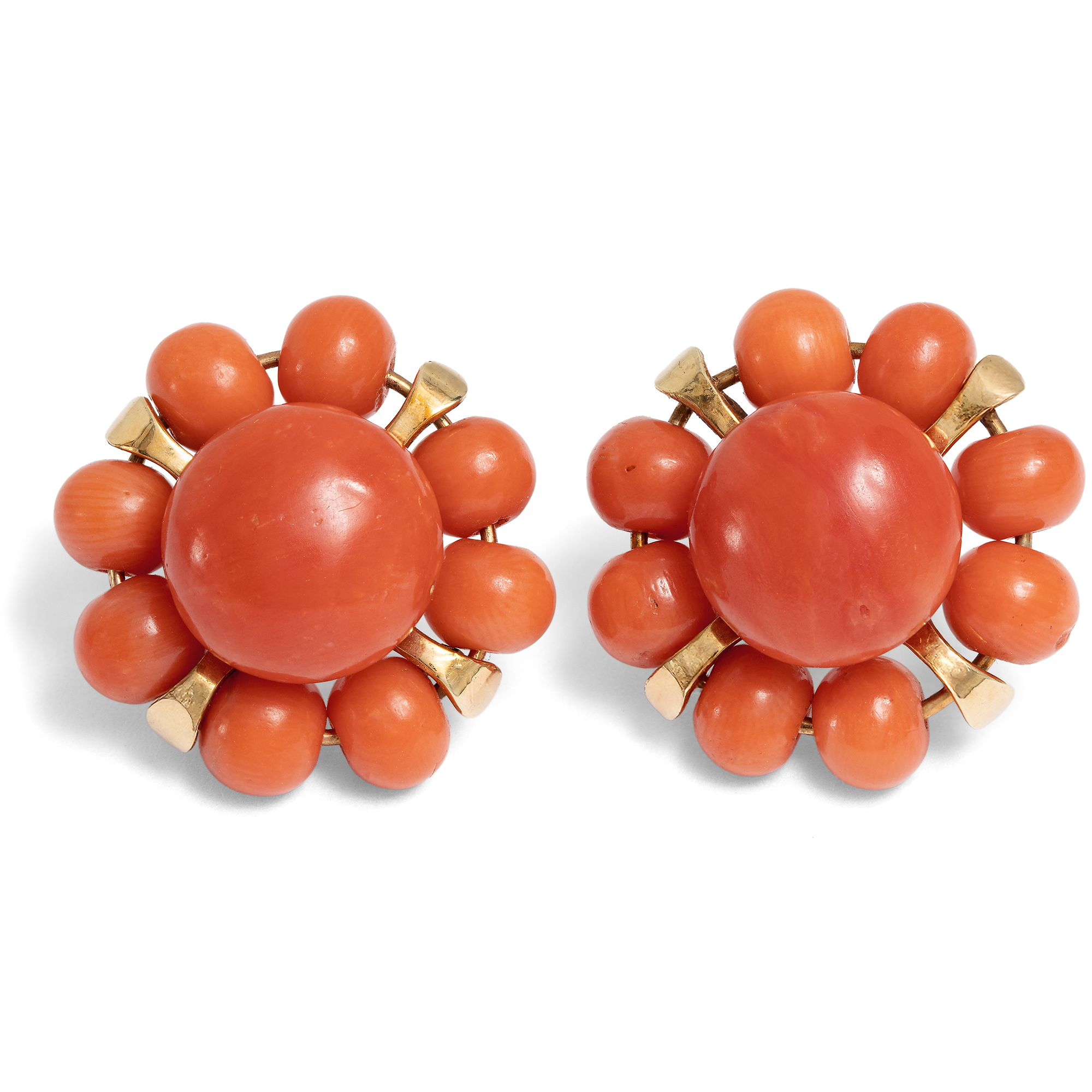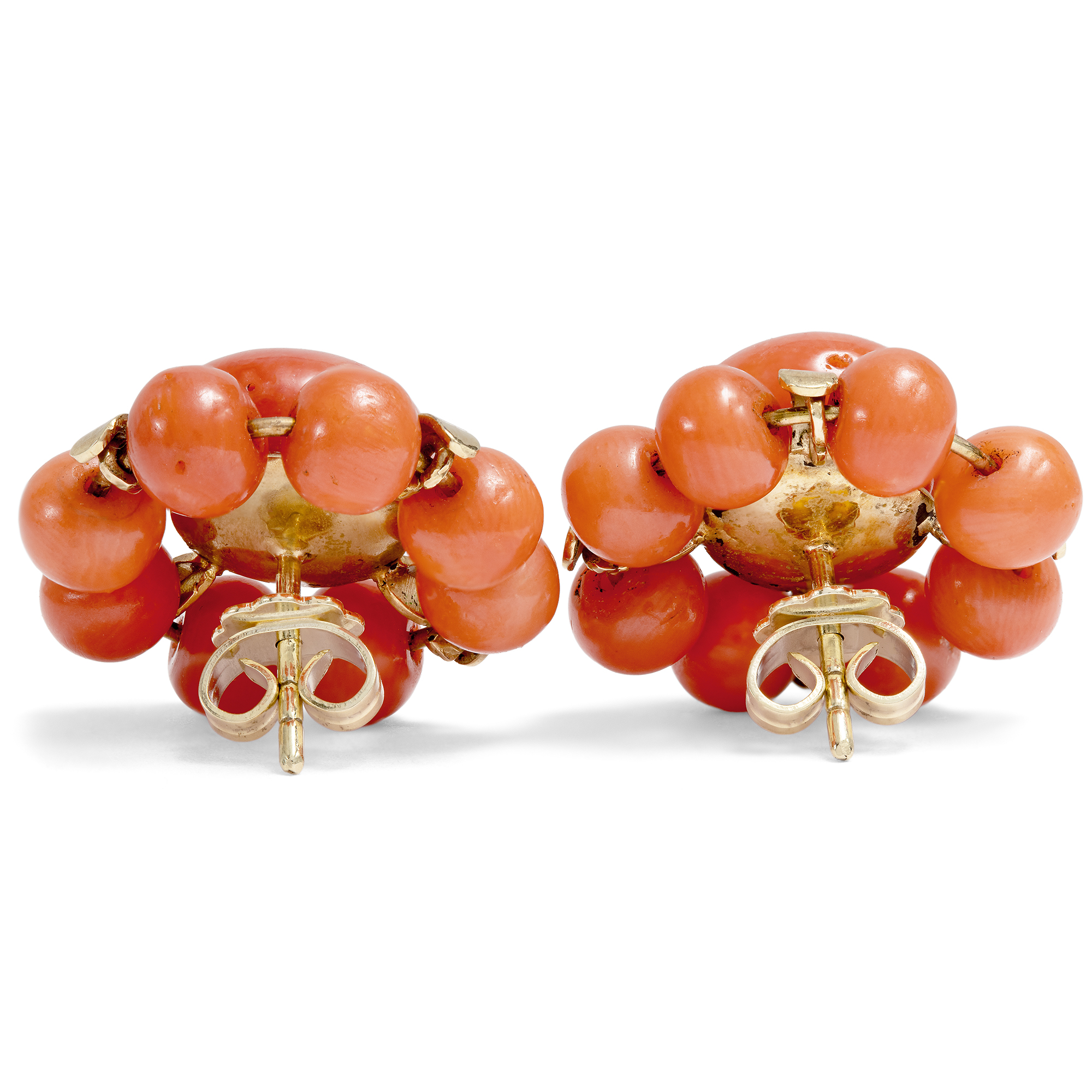 Fröhliche Ohrstecker mit Koralle aus dem Mittelmeer in Gold, um 1955