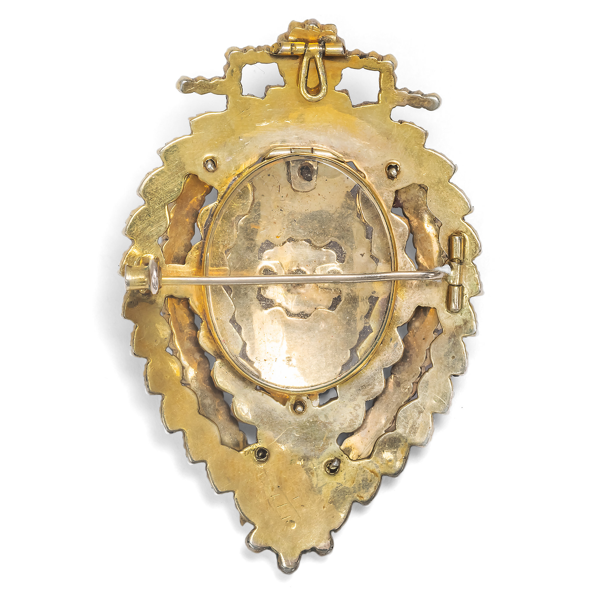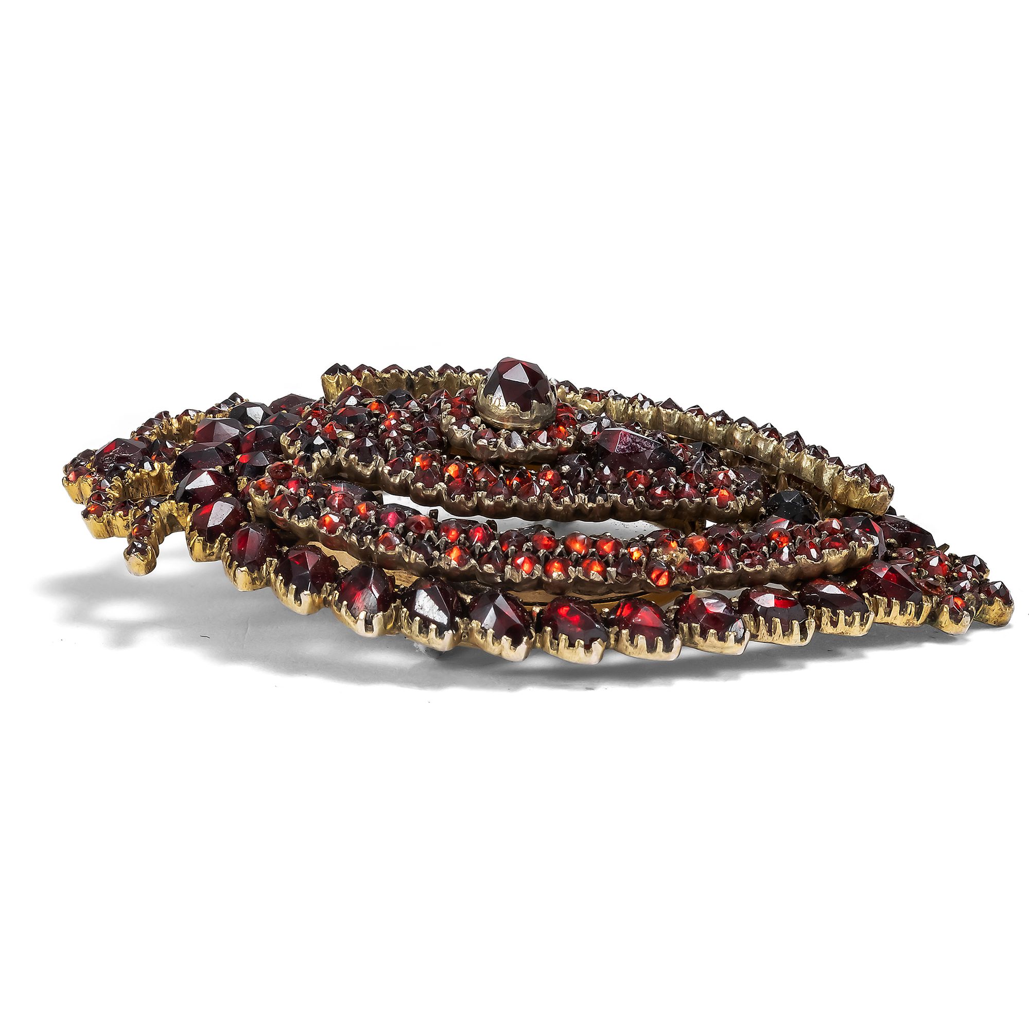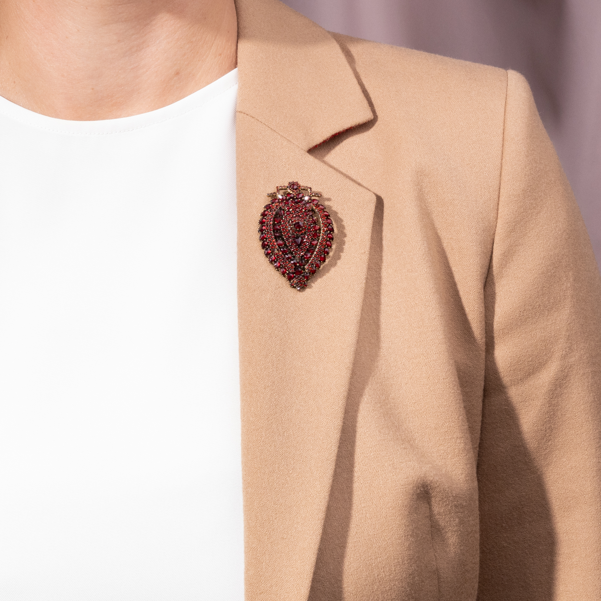Geheimnisvolles Medaillon als Brosche mit böhmischen Granaten, um 1870