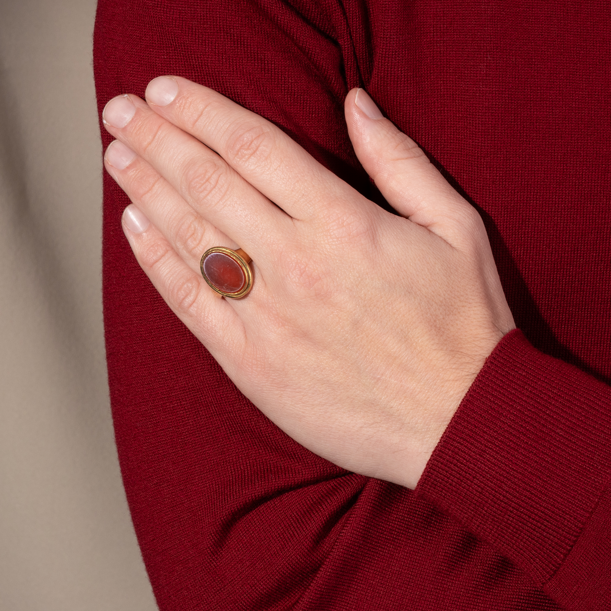 Großer Goldring mit Karneol, Deutschland 1950er Jahre