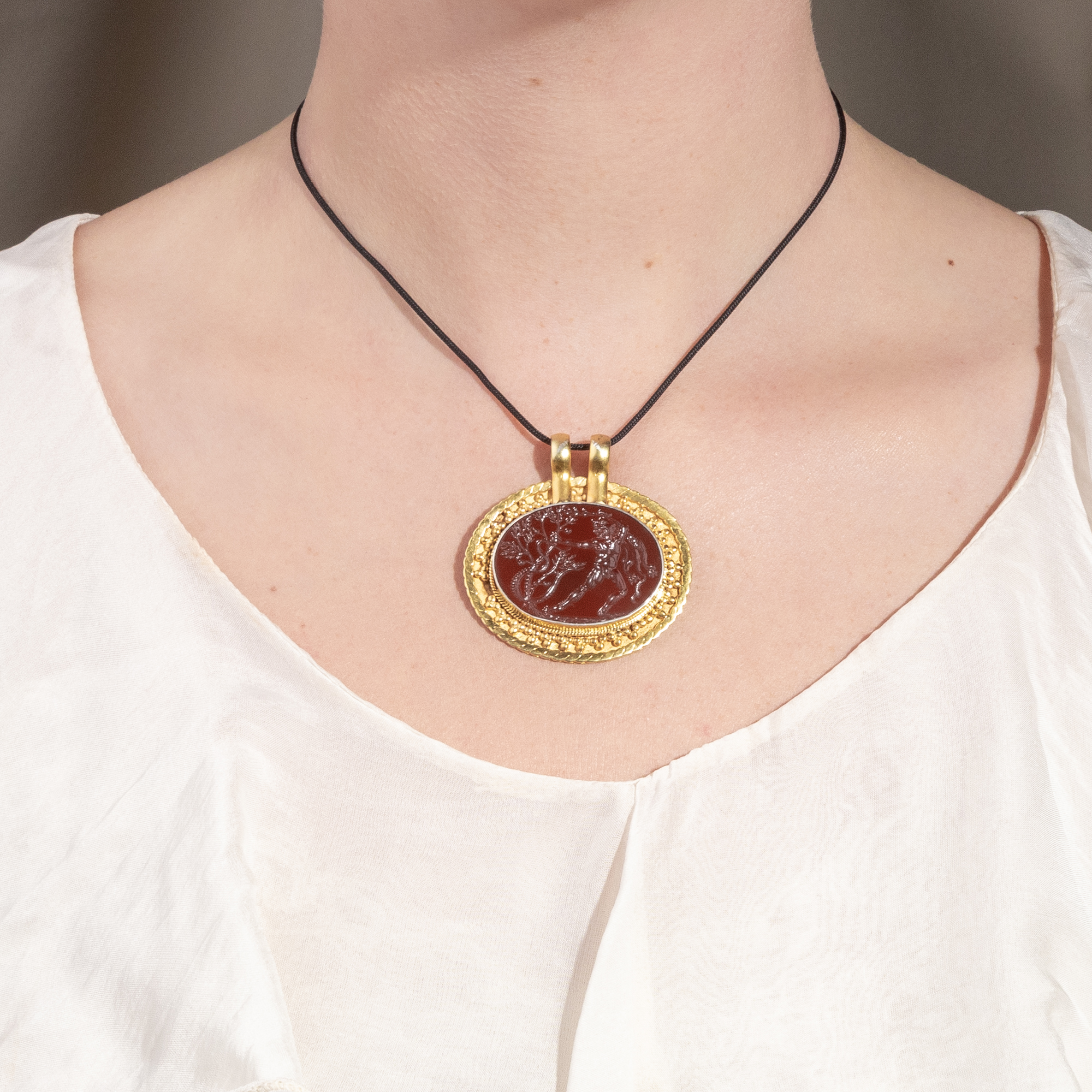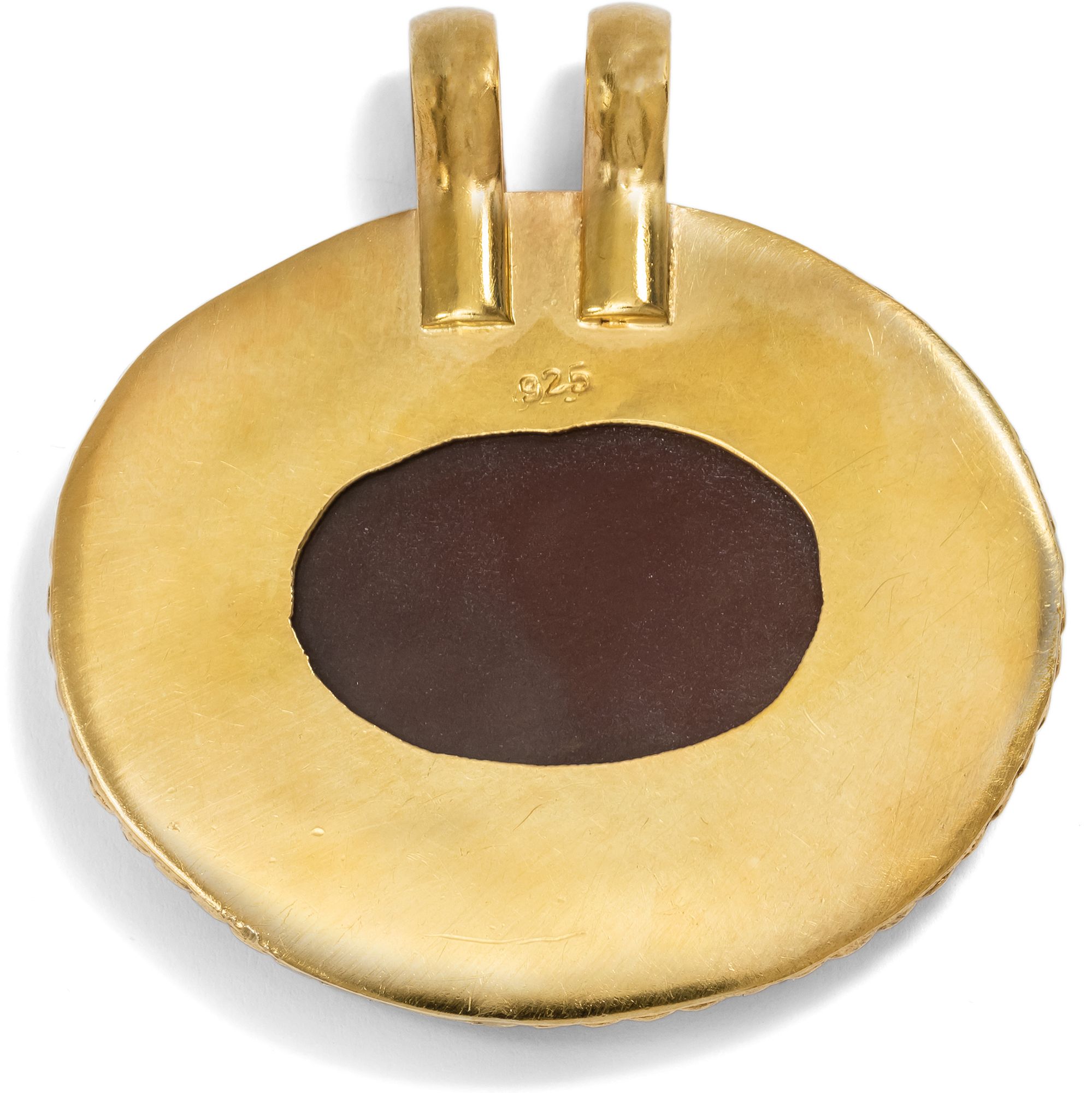Großer vintage Anhänger mit Intaglio des 19. Jahrhunderts in Karneol und vergoldetem Silber, um 1990